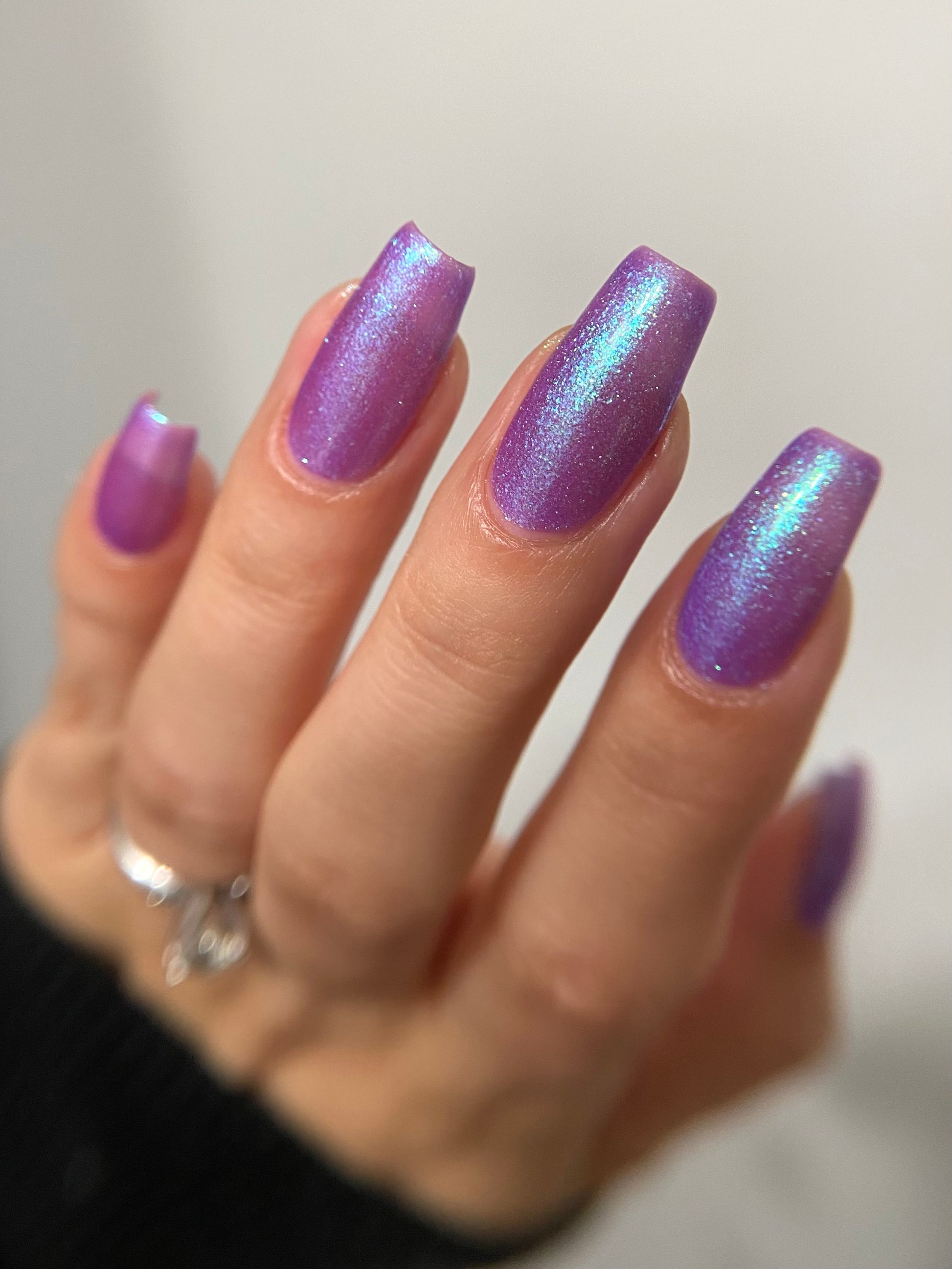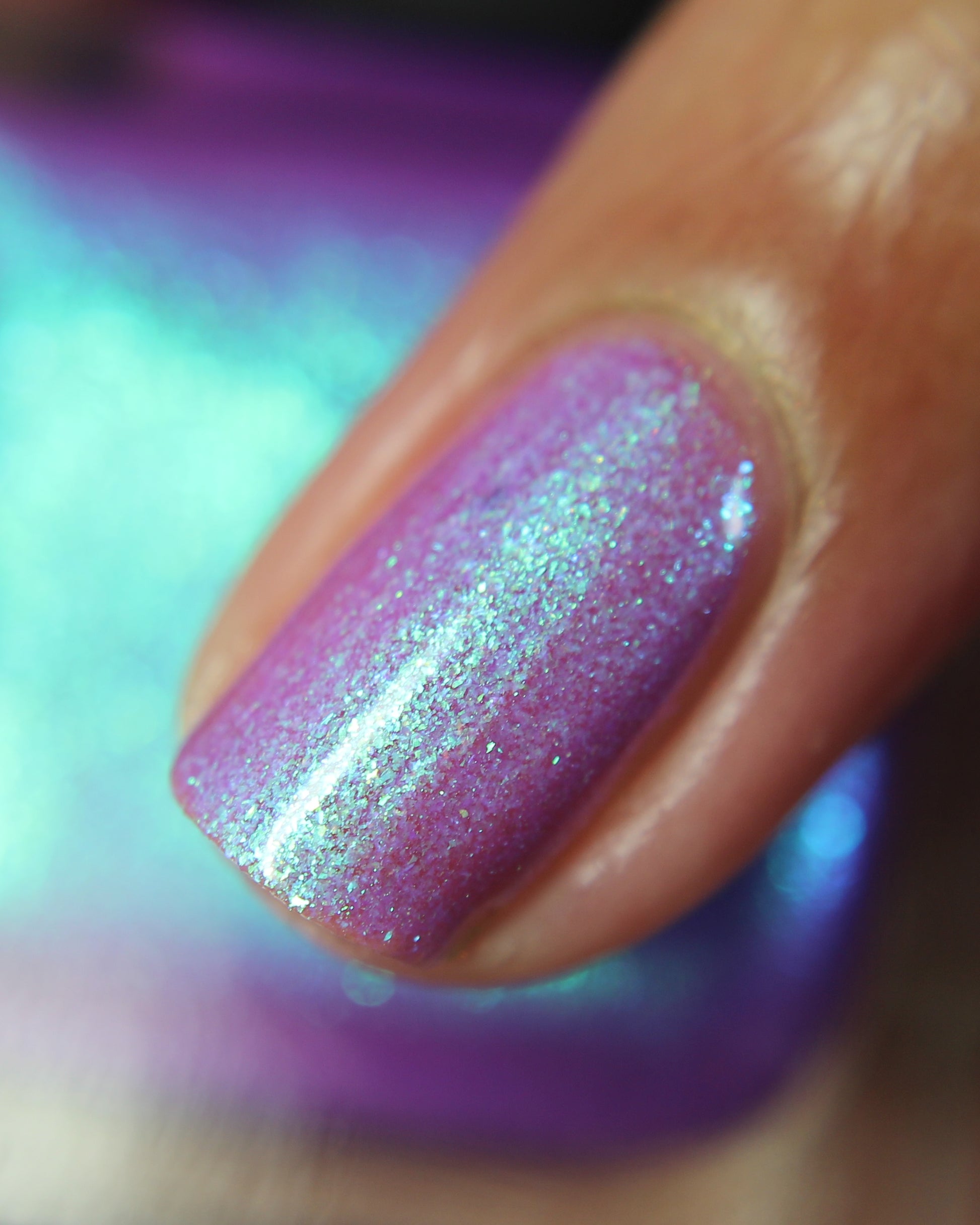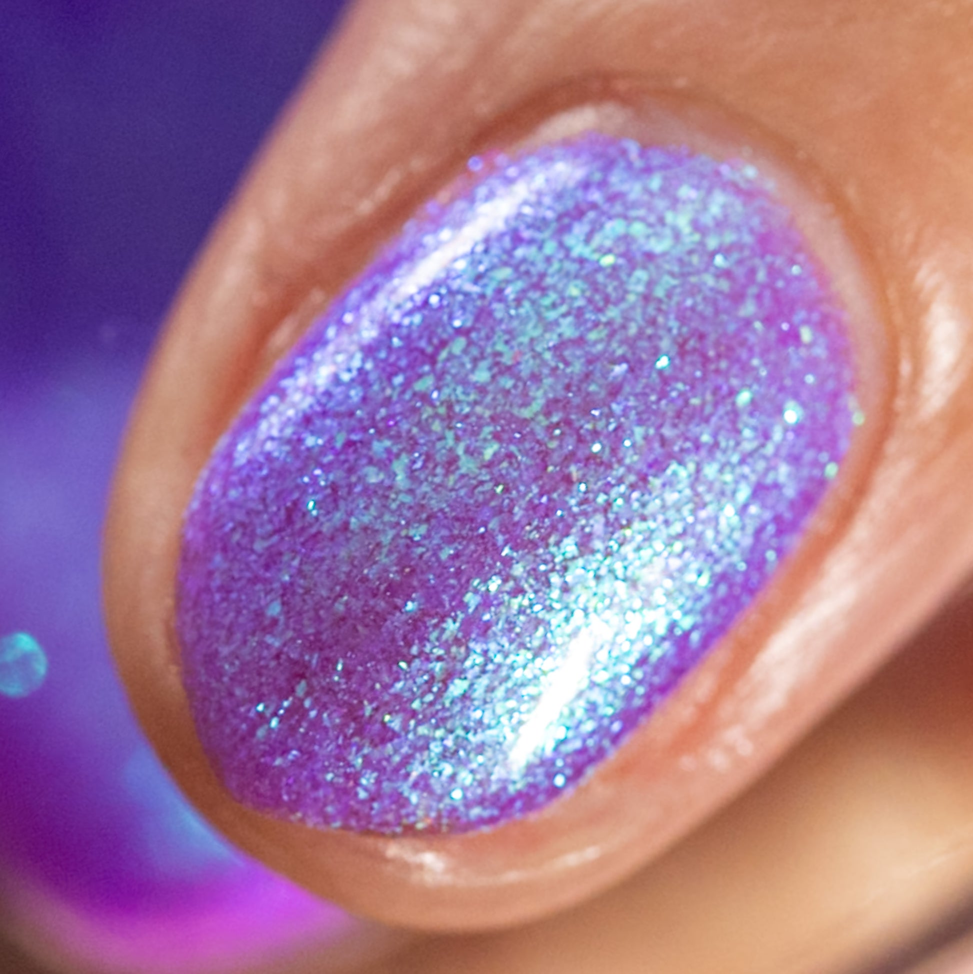 A neon purple base packed with teal to blue large particle aurora shimmer