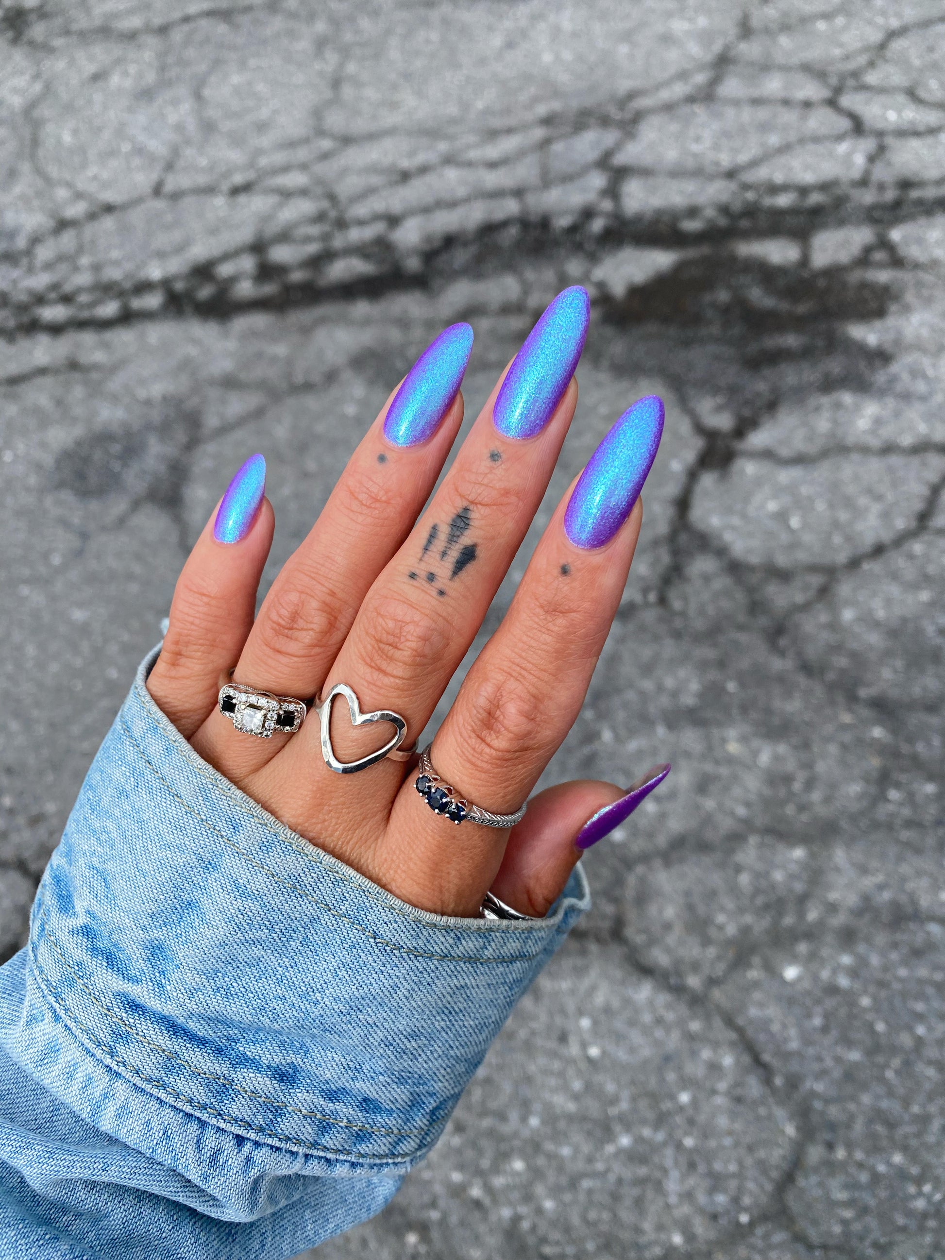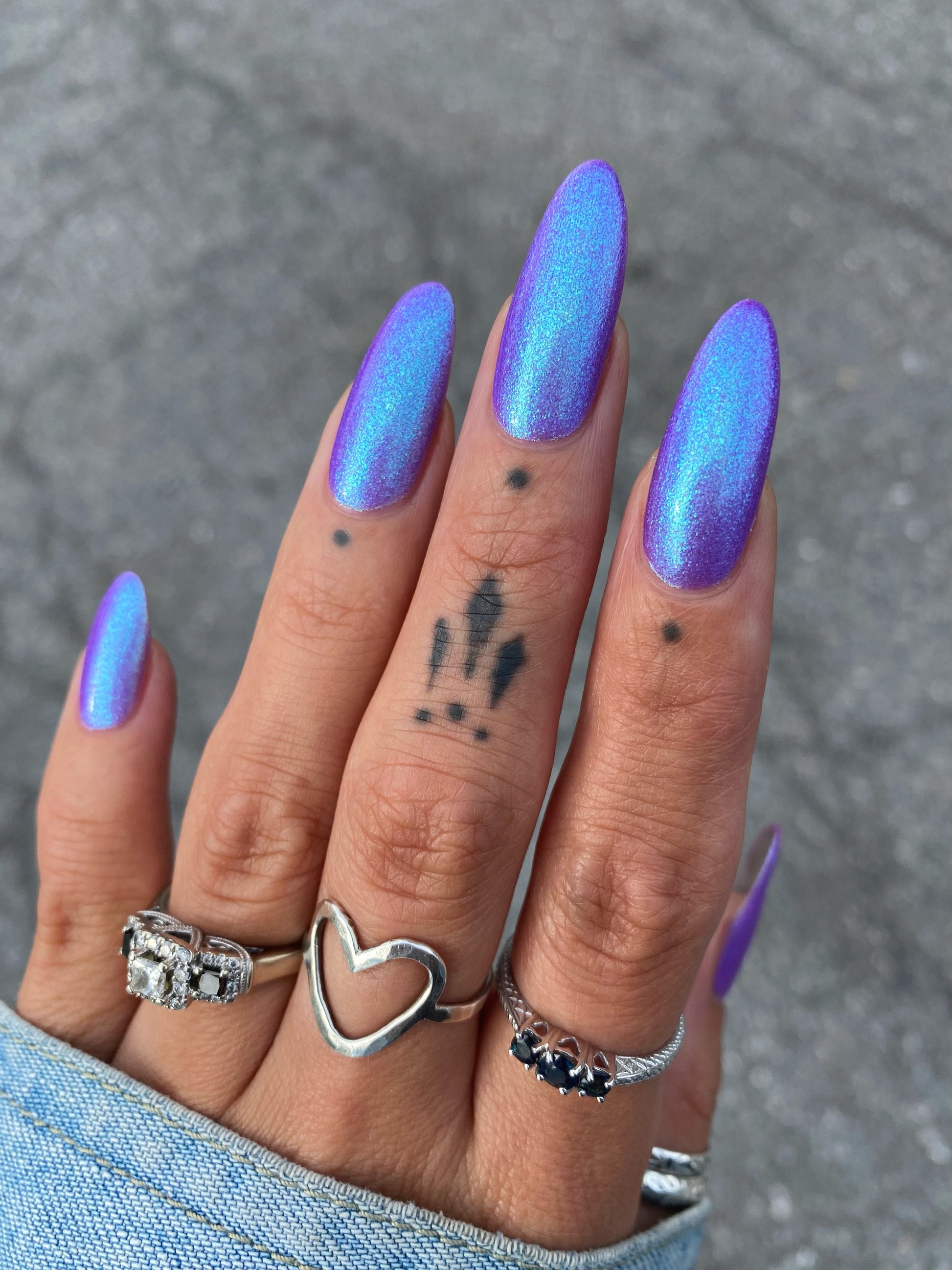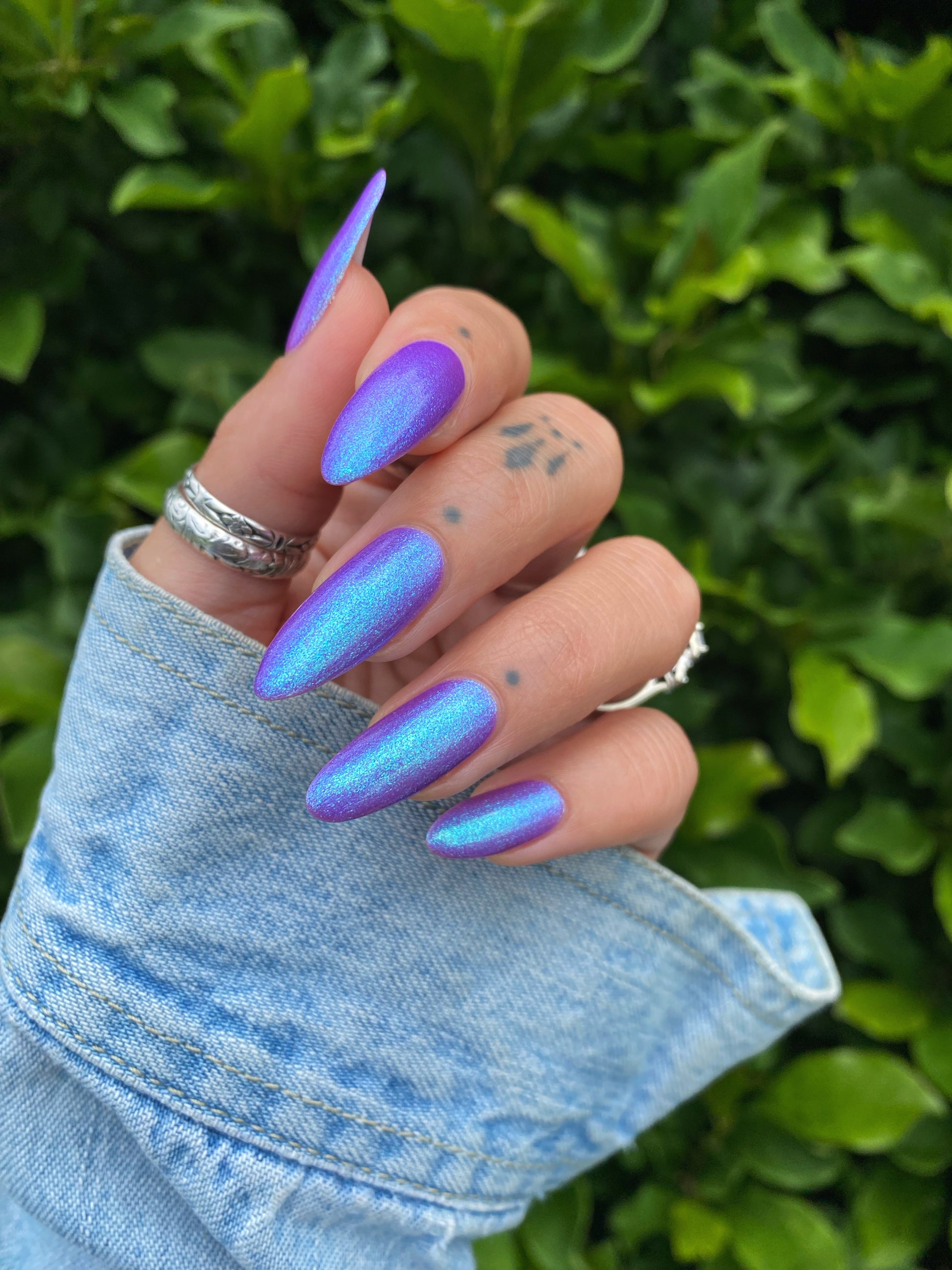 A neon purple base packed with teal to blue large particle aurora shimmer
