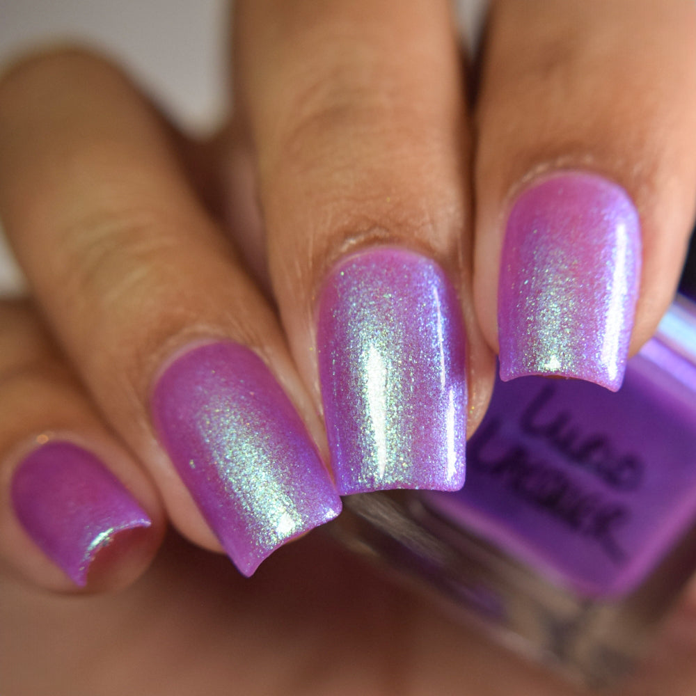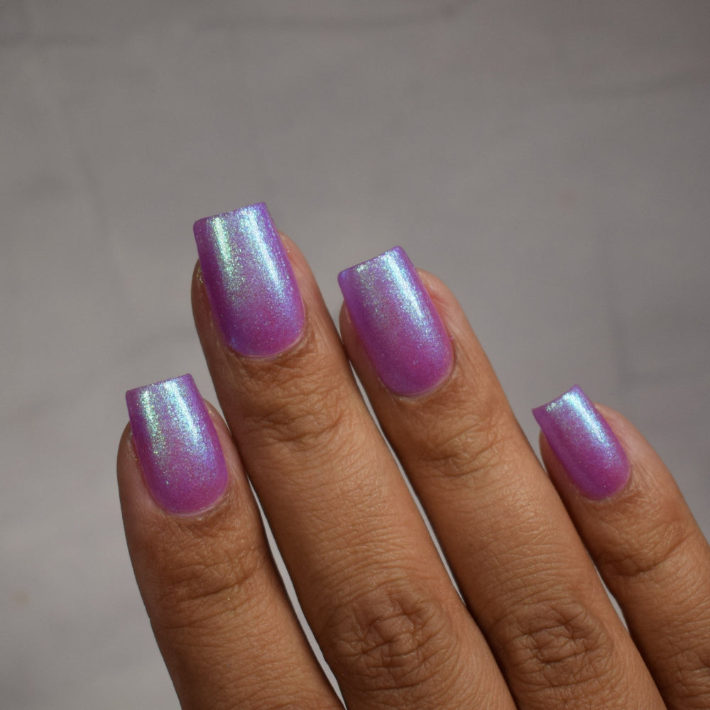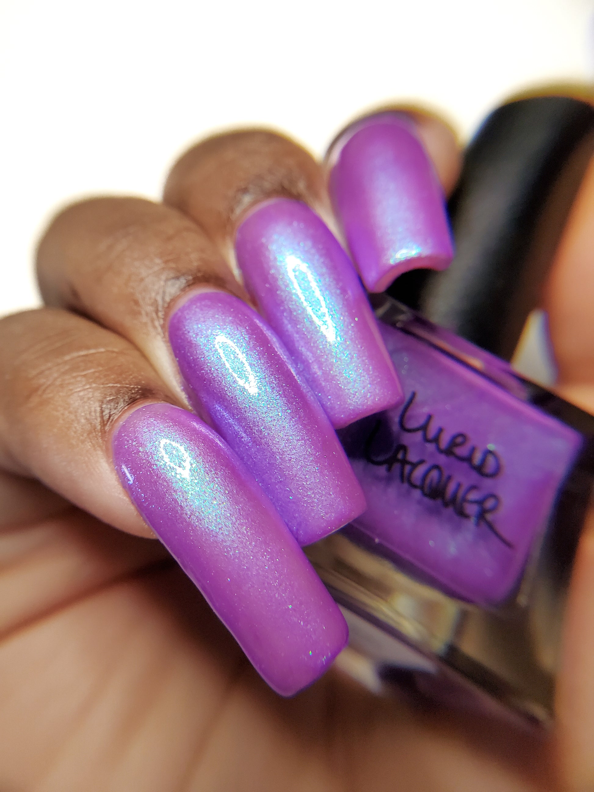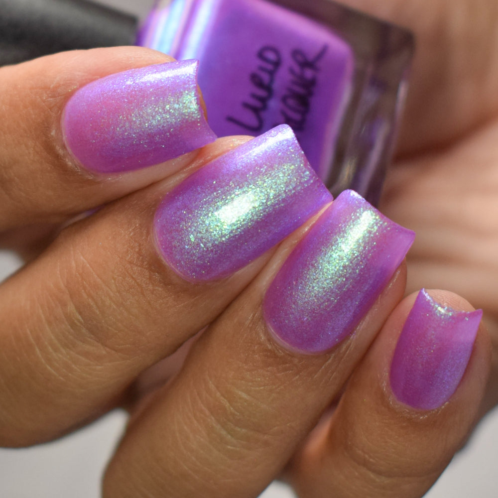 Our swatch photos are intended to give a general impression of the product. Lurid Lacquer polishes are semi-sheer and vary in appearance based on the skin tone and undertone of the person wearing them. We do our best to provide swatches that are both accurate and represent a variety of skin tones and undertones, but screens and monitors vary in how they display images. Our polishes are also handmade in small batches. There may be slight differences across batches. Due to differences in screens/monitors, skin tone/undertone, and batches, the product you receive may not look on you exactly like it does in your favorite swatcher's picture on your screen.