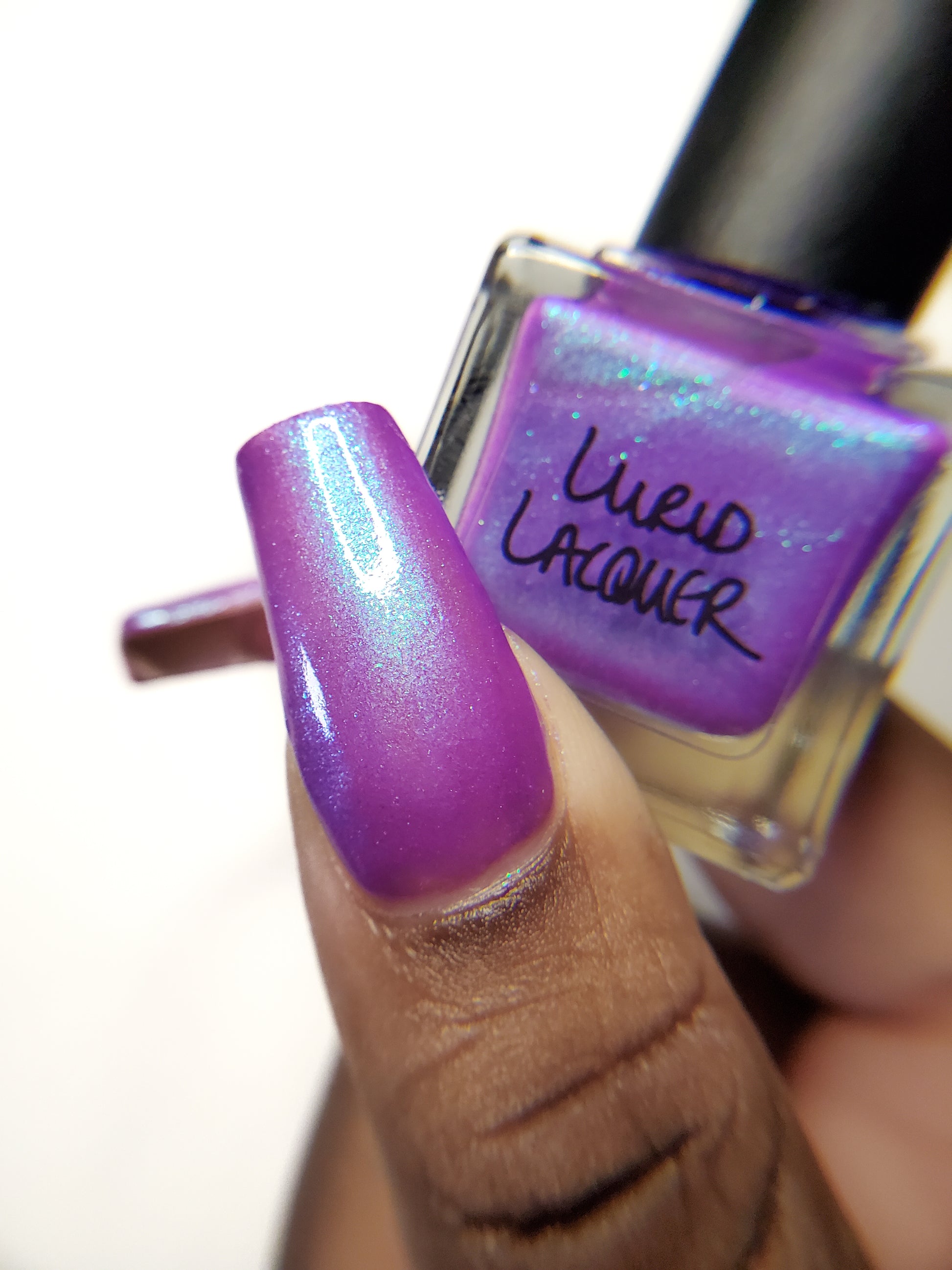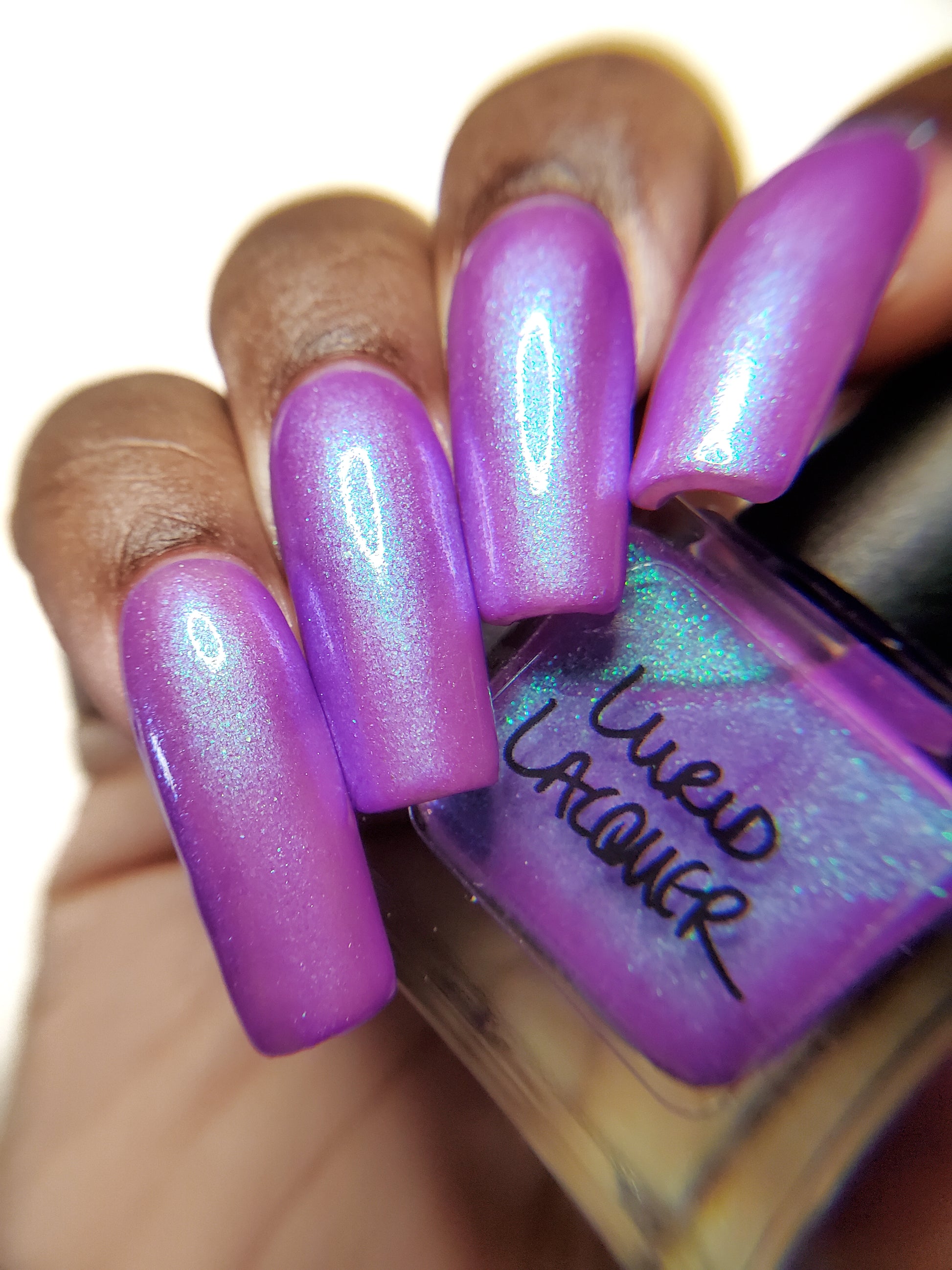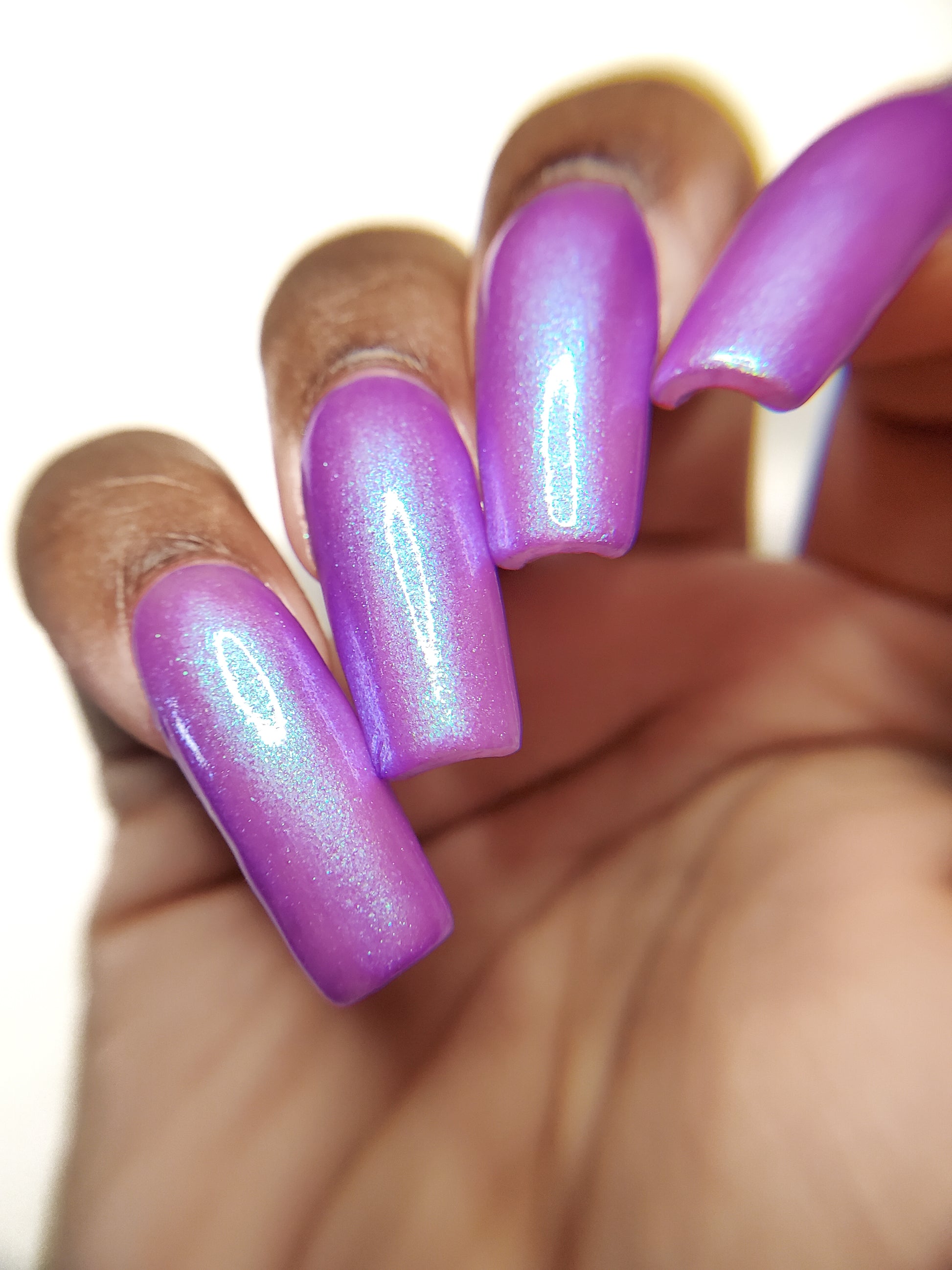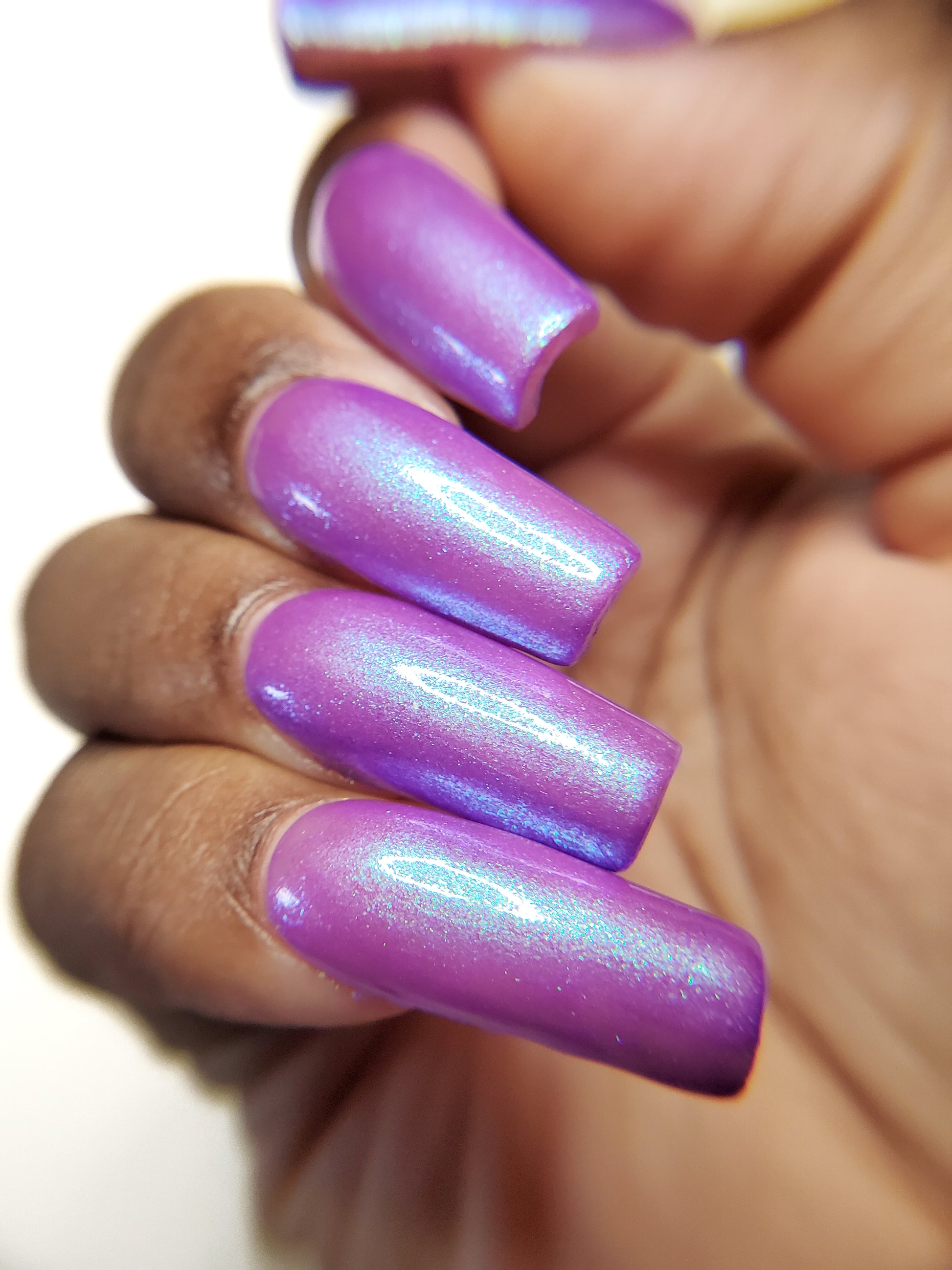 Our swatch photos are intended to give a general impression of the product. Lurid Lacquer polishes are semi-sheer and vary in appearance based on the skin tone and undertone of the person wearing them. We do our best to provide swatches that are both accurate and represent a variety of skin tones and undertones, but screens and monitors vary in how they display images. Our polishes are also handmade in small batches. There may be slight differences across batches. Due to differences in screens/monitors, skin tone/undertone, and batches, the product you receive may not look on you exactly like it does in your favorite swatcher's picture on your screen.