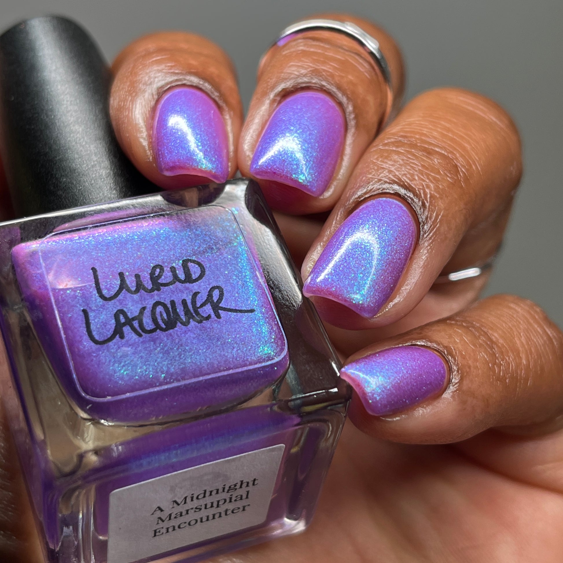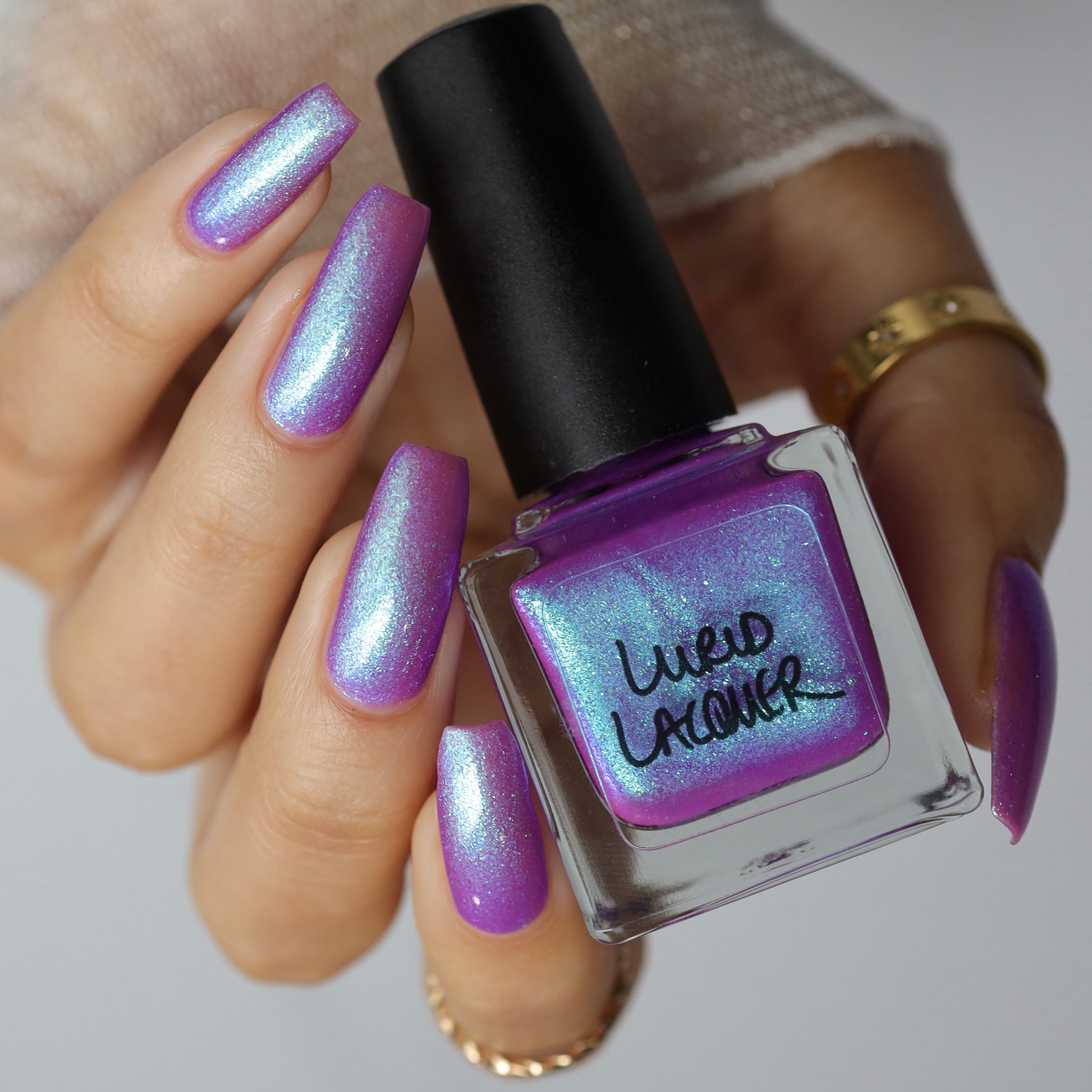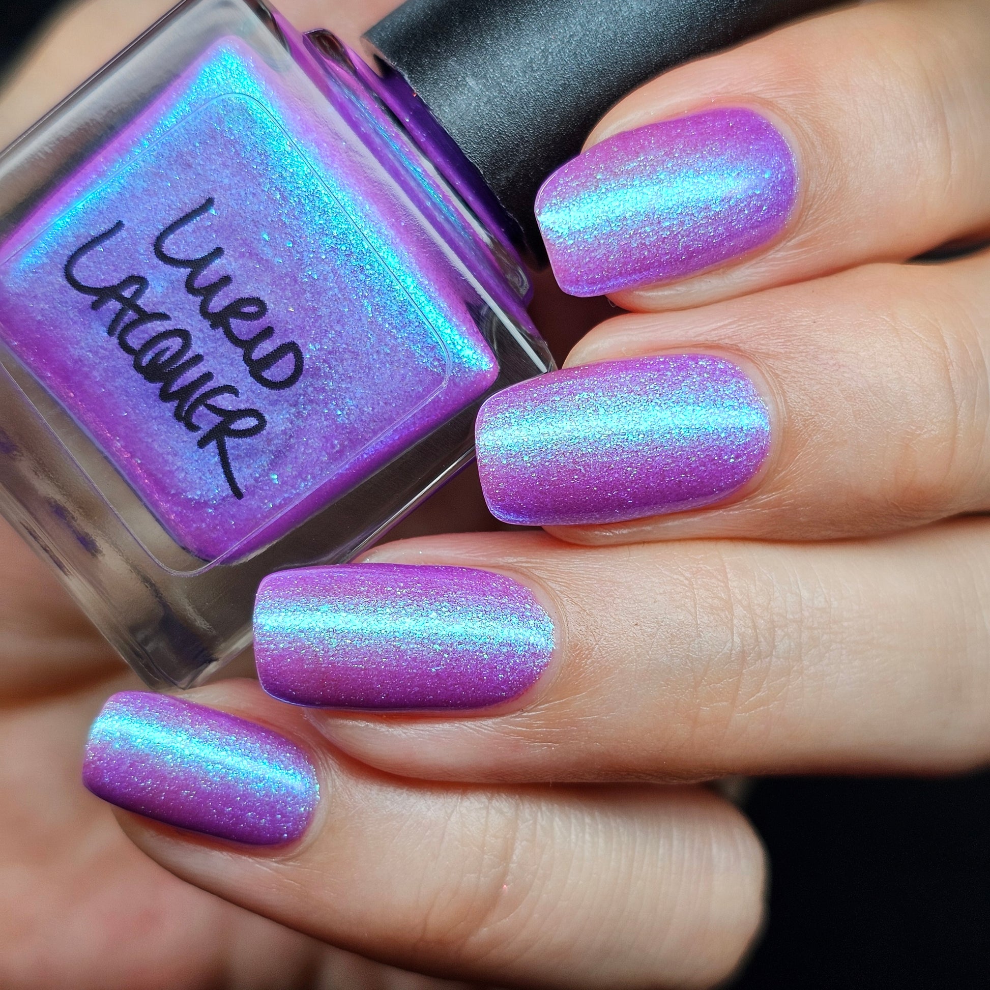 Our swatch photos are intended to give a general impression of the product. Lurid Lacquer polishes are semi-sheer and vary in appearance based on the skin tone and undertone of the person wearing them. We do our best to provide swatches that are both accurate and represent a variety of skin tones and undertones, but screens and monitors vary in how they display images. Our polishes are also handmade in small batches. There may be slight differences across batches. Due to differences in screens/monitors, skin tone/undertone, and batches, the product you receive may not look on you exactly like it does in your favorite swatcher's picture on your screen.