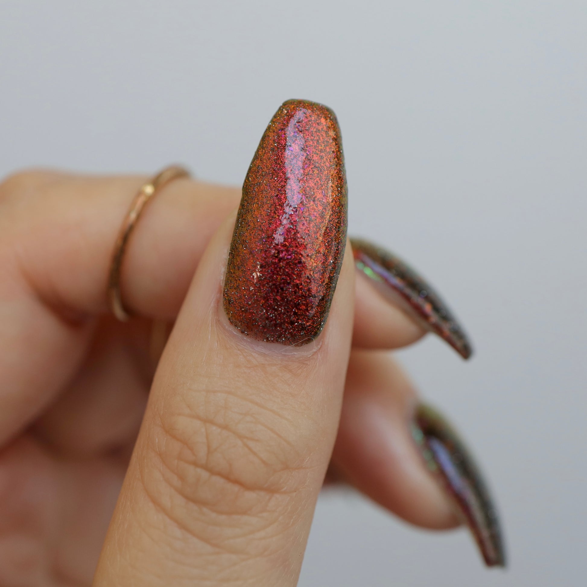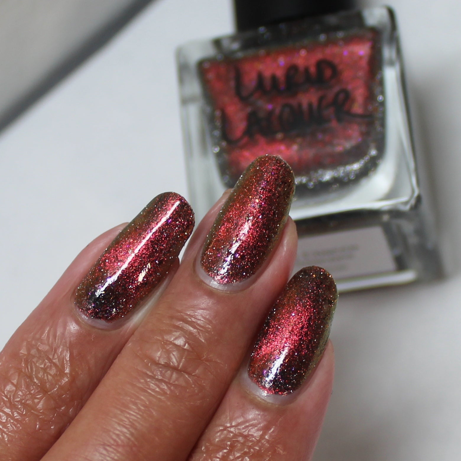 Our swatch photos are intended to give a general impression of the product. Lurid Lacquer polishes are semi-sheer and vary in appearance based on the skin tone and undertone of the person wearing them. We do our best to provide swatches that are both accurate and represent a variety of skin tones and undertones, but screens and monitors vary in how they display images. Our polishes are also handmade in small batches. There may be slight differences across batches. Due to differences in screens/monitors, skin tone/undertone, and batches, the product you receive may not look on you exactly like it does in your favorite swatcher's picture on your screen.