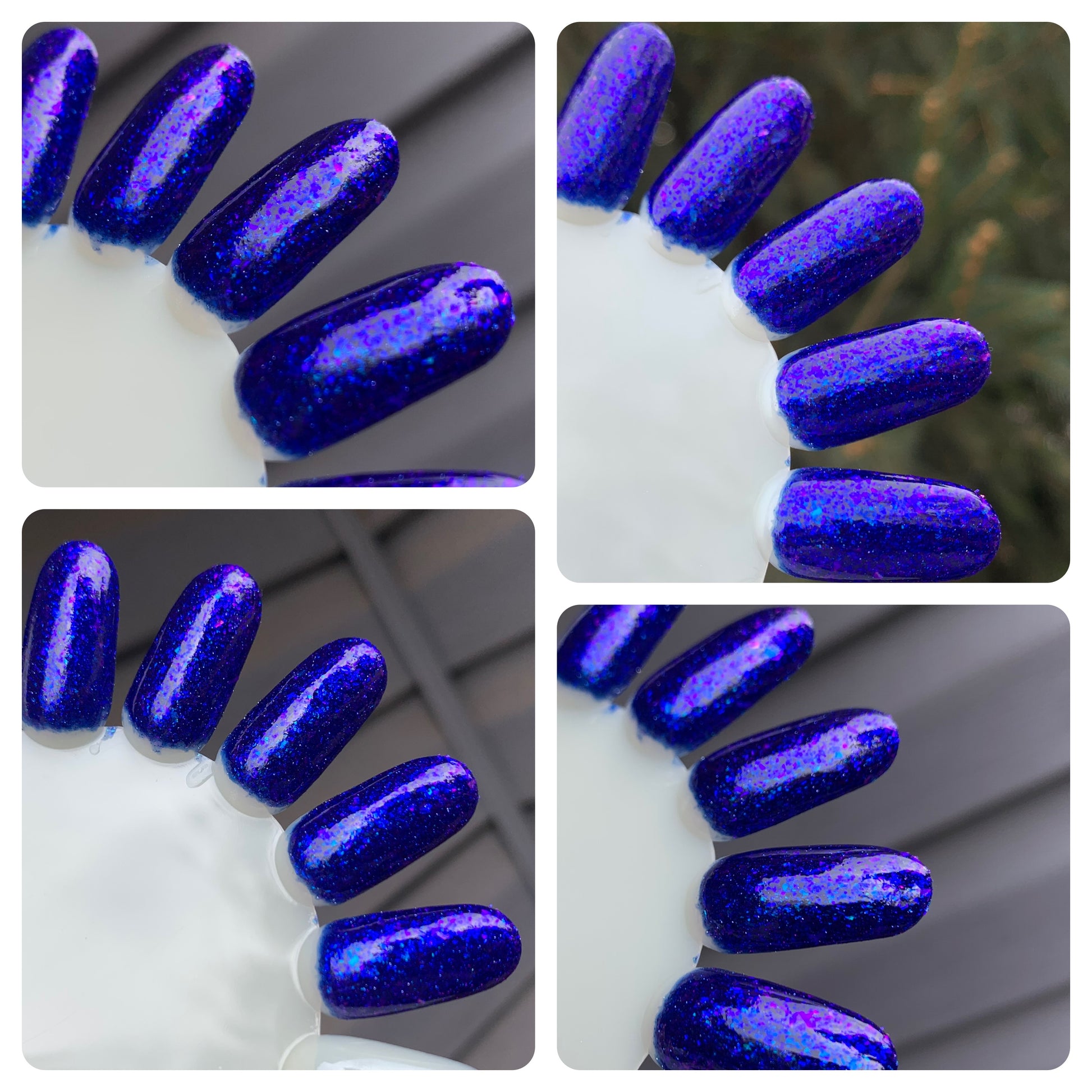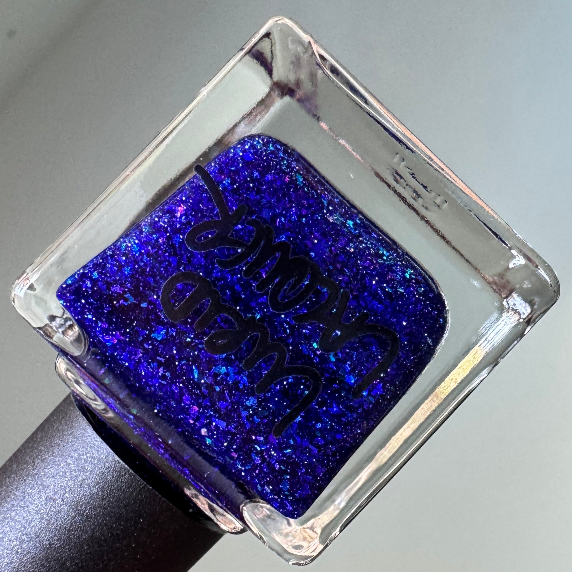 As the Long, Dark Night Gives Way to Morning features a deep indigo blue jelly base with purple light reflective glitter and a mix of blue and purple iridescent flakes.