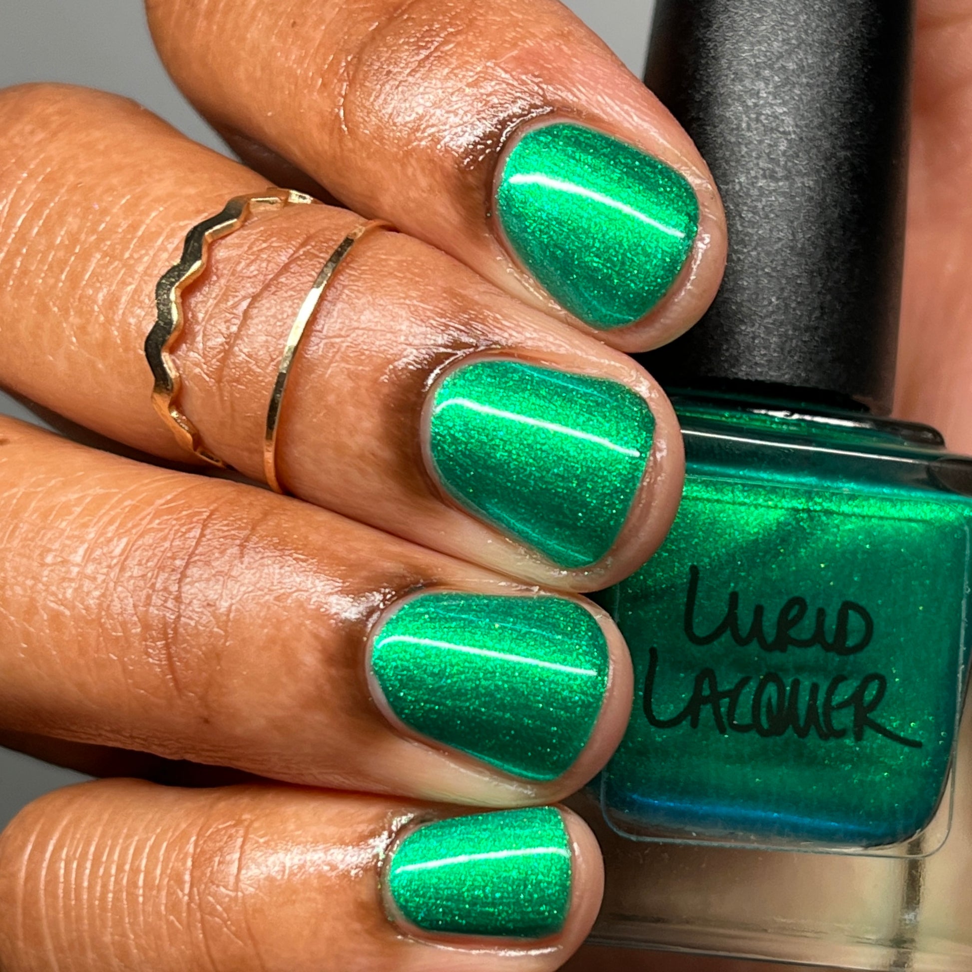 Our swatch photos are intended to give a general impression of the product. Lurid Lacquer polishes are semi-sheer and vary in appearance based on the skintone and undertone of the person wearing them. We do our best to provide swatches that are both accurate and represent a variety of skintones and undertones, but screens and monitors vary in how they display images. Our polishes are also handmade in small batches. There may be slight differences across batches. Due to differences in screens/monitors, skintone/undertone, and batches, the product you receive may not look on you exactly like it does in your favorite swatcher's picture on your screen.