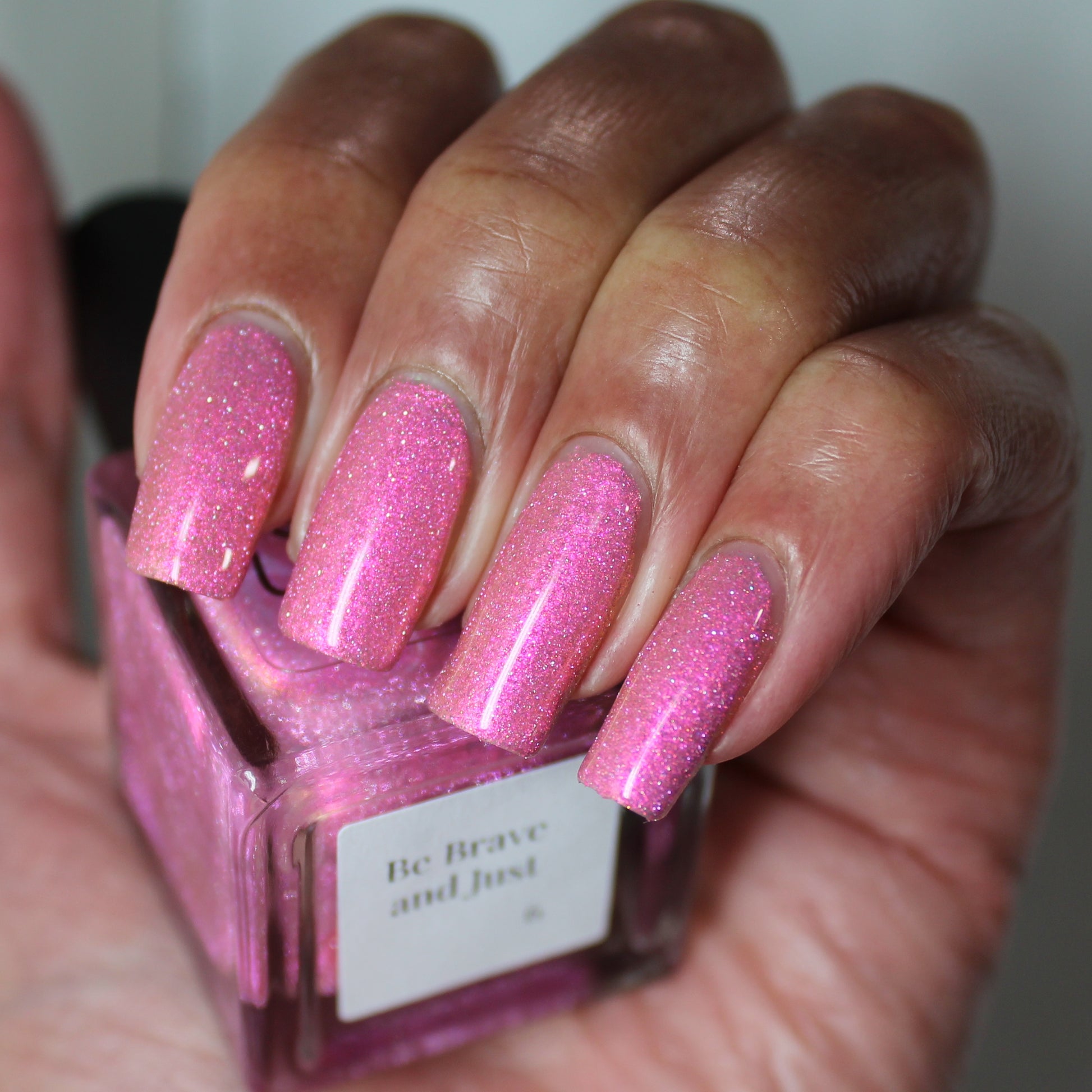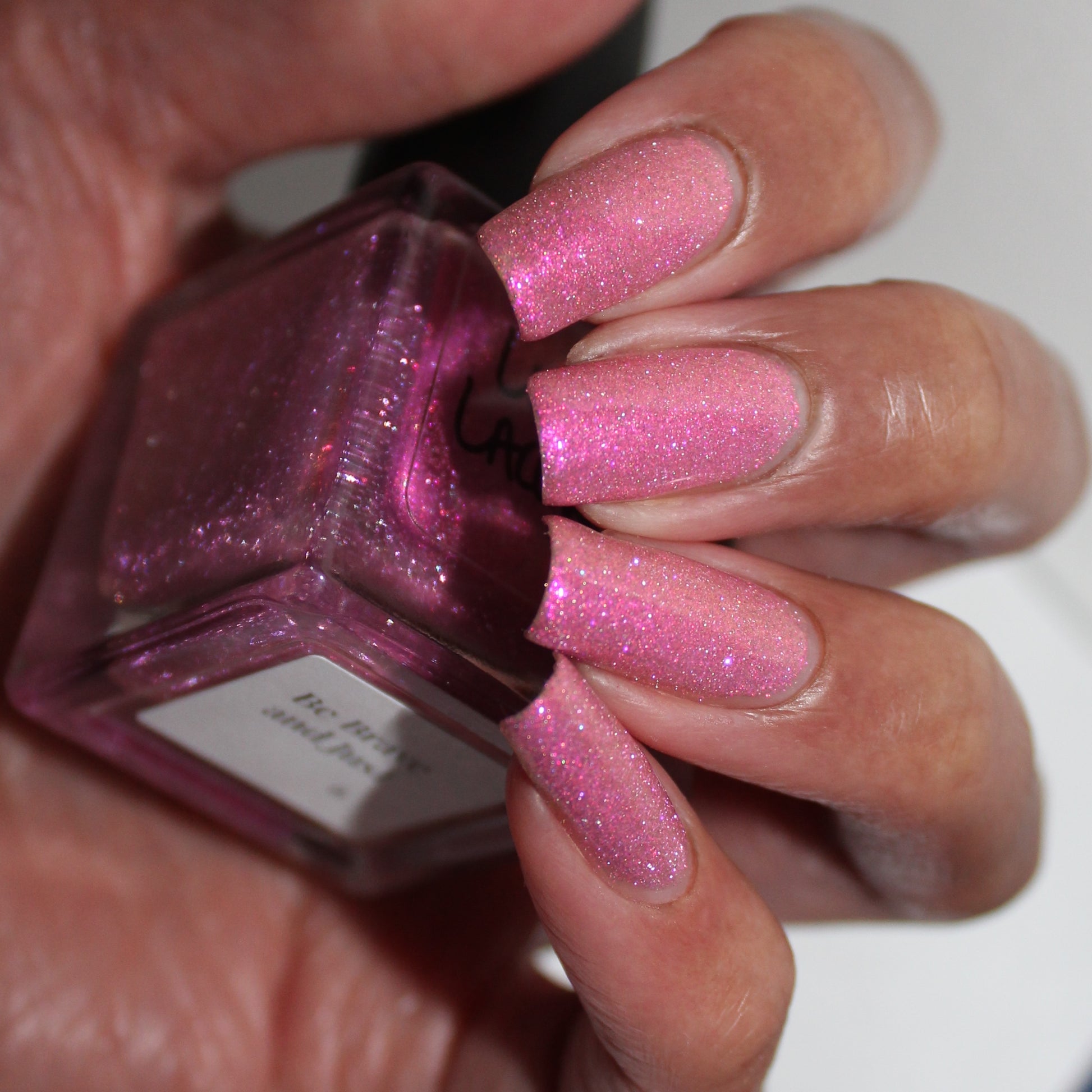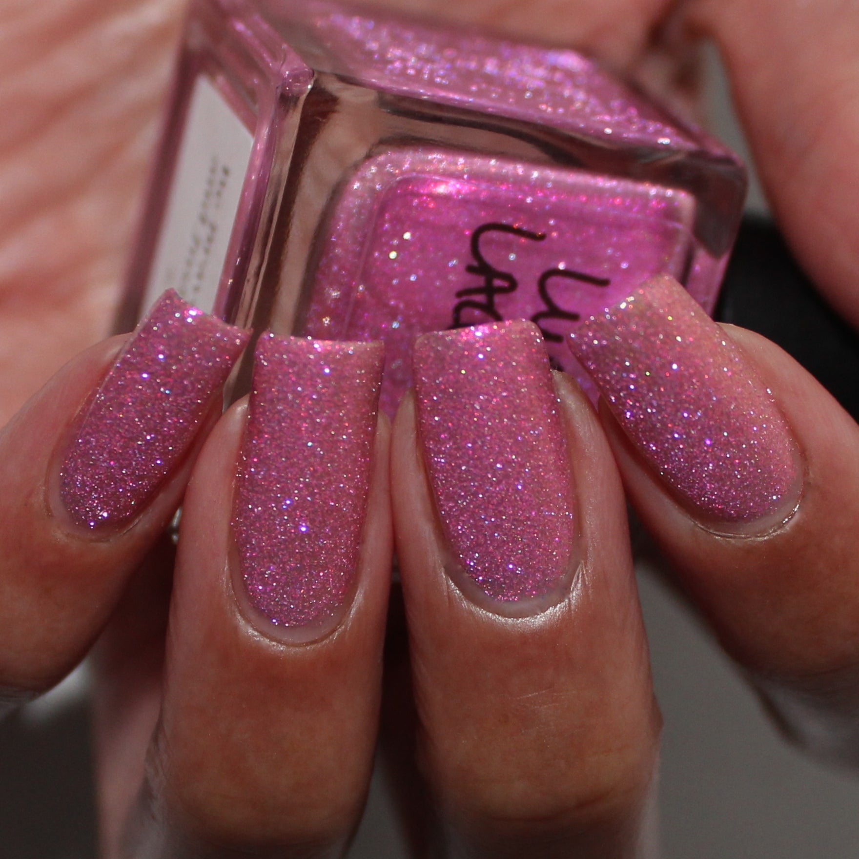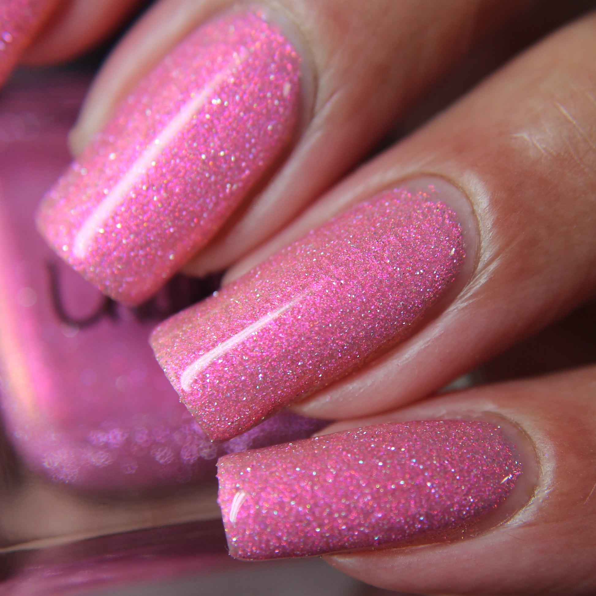 Please note: Reflective glitter polishes are textured and dry down with a gritty, sandpaper feeling. To make them look smooth and glossy, I recommend applying 2-3 coats of the polish, then applying one coat of a glitter smoother, followed by one coat of top coat.