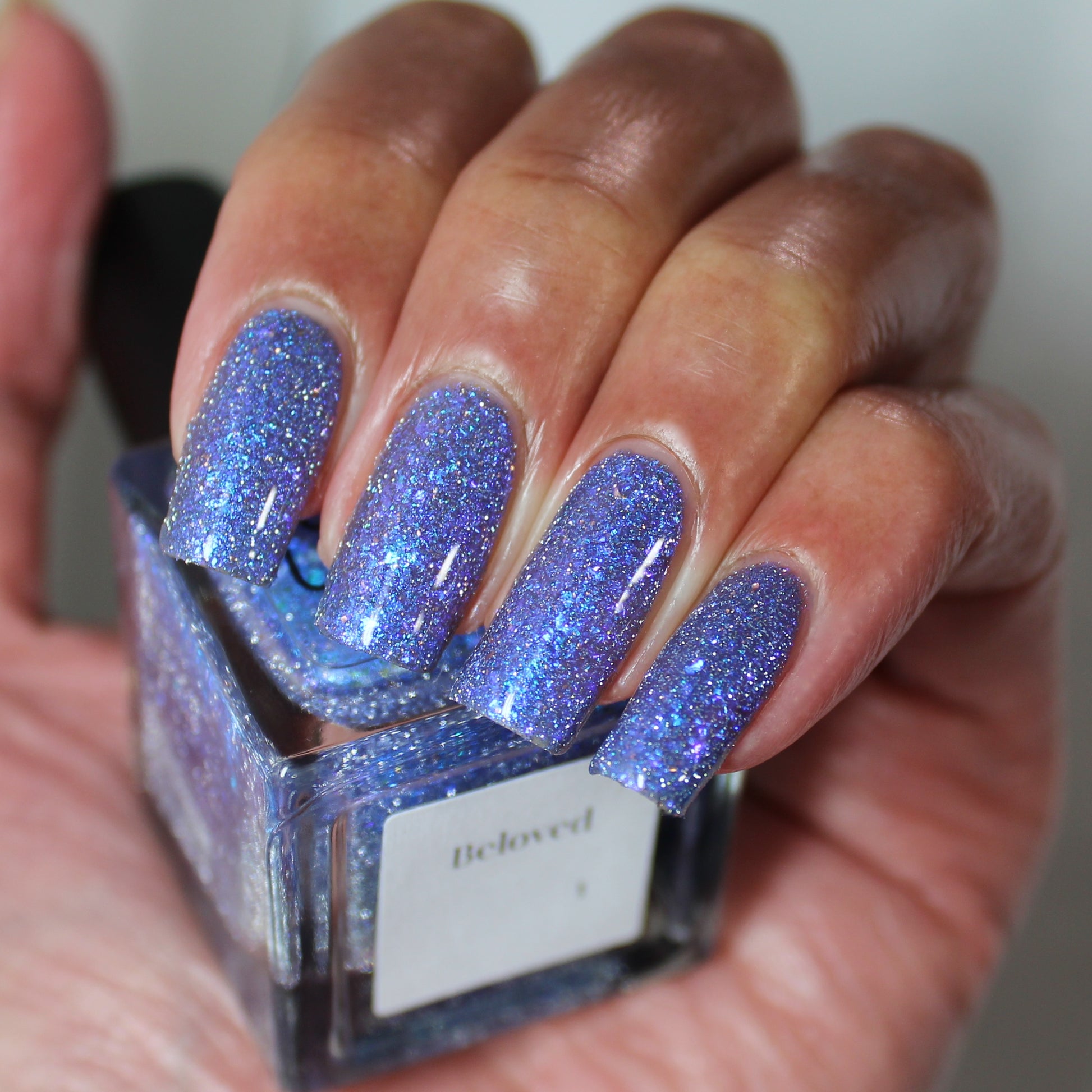 Please note: Reflective glitter polishes are textured and dry down with a gritty, sandpaper feeling. To make them look smooth and glossy, I recommend applying 2-3 coats of the polish, then applying one coat of a glitter smoother, followed by one coat of top coat.