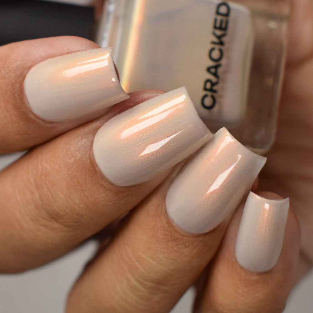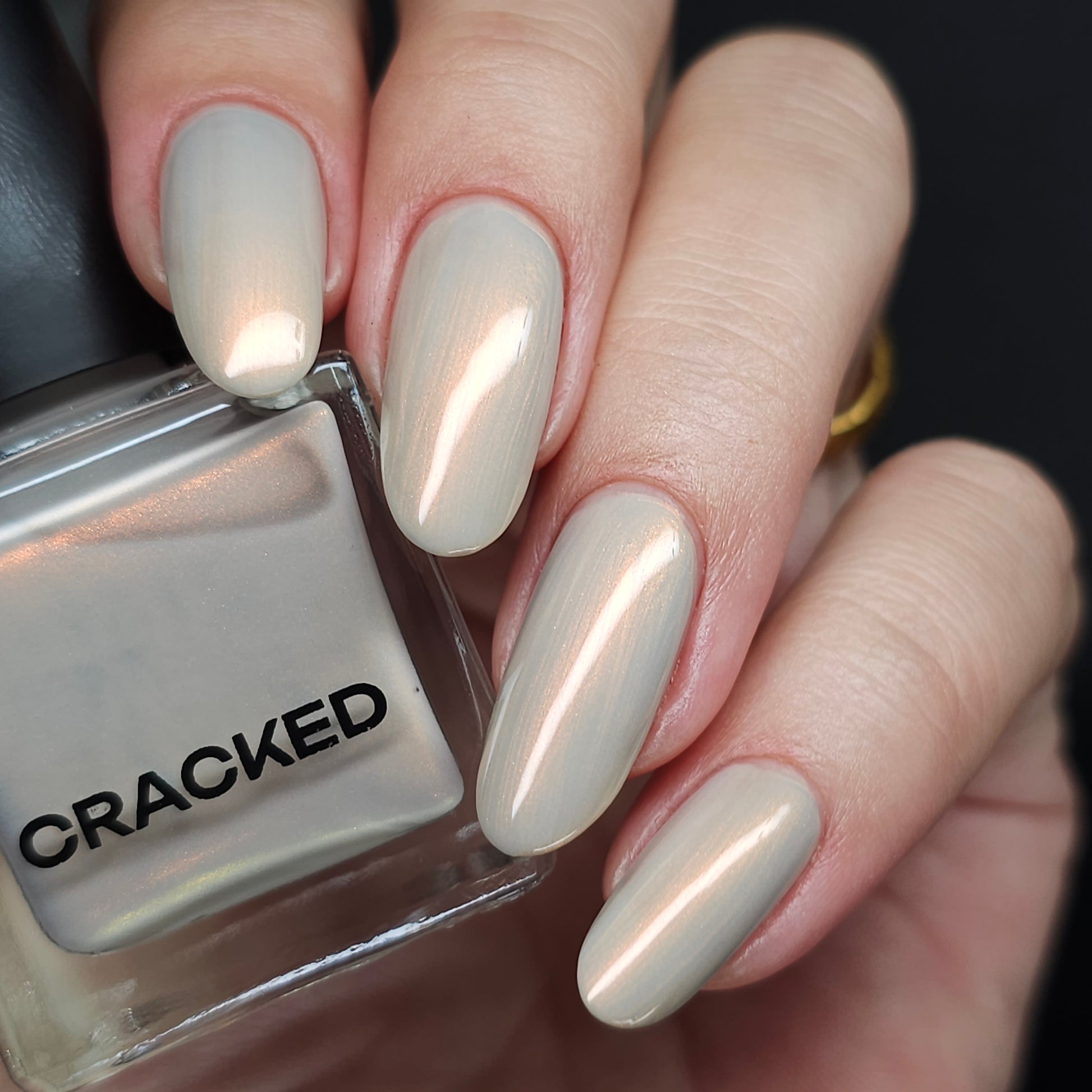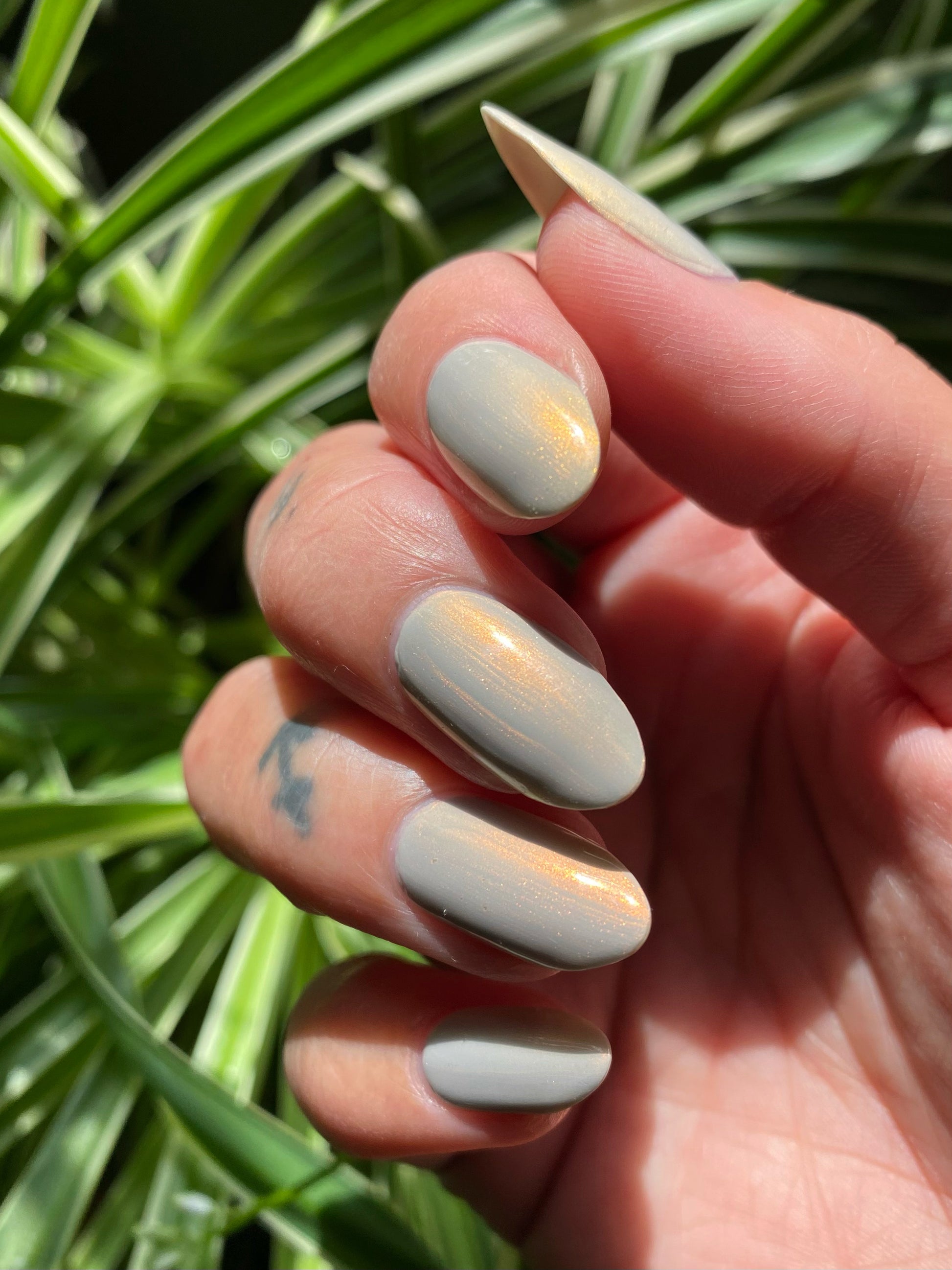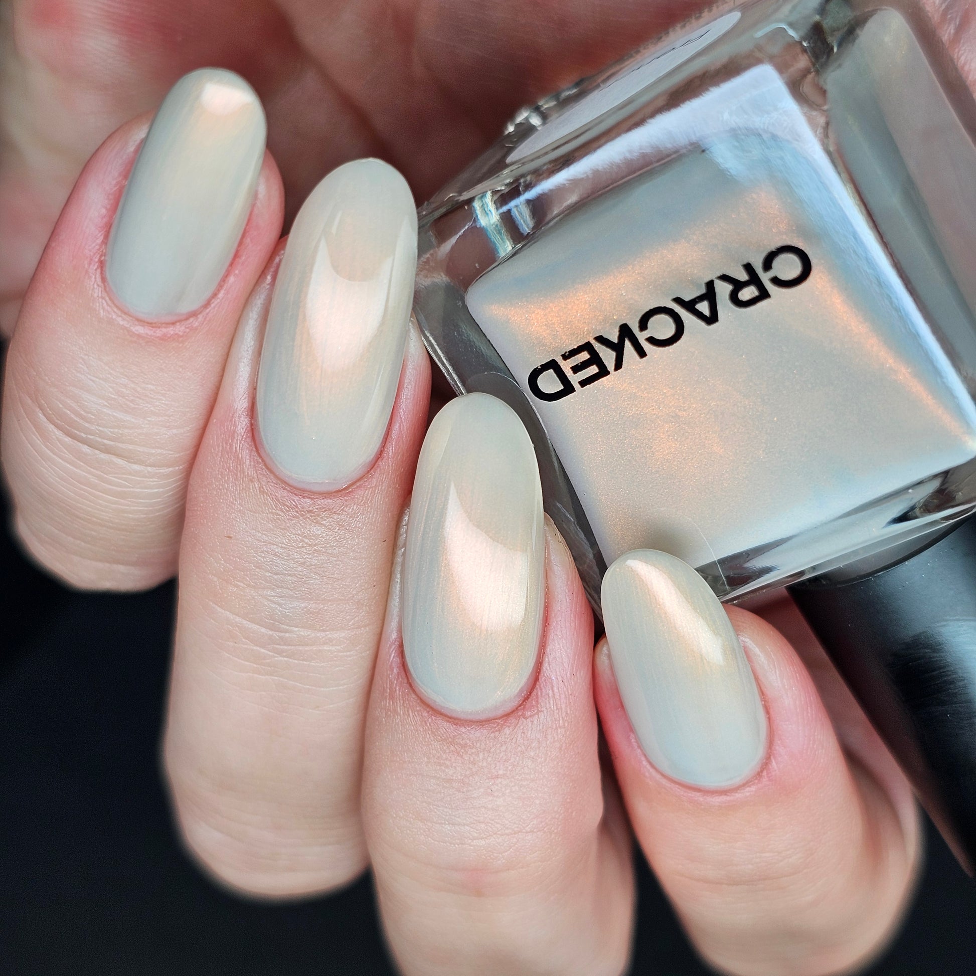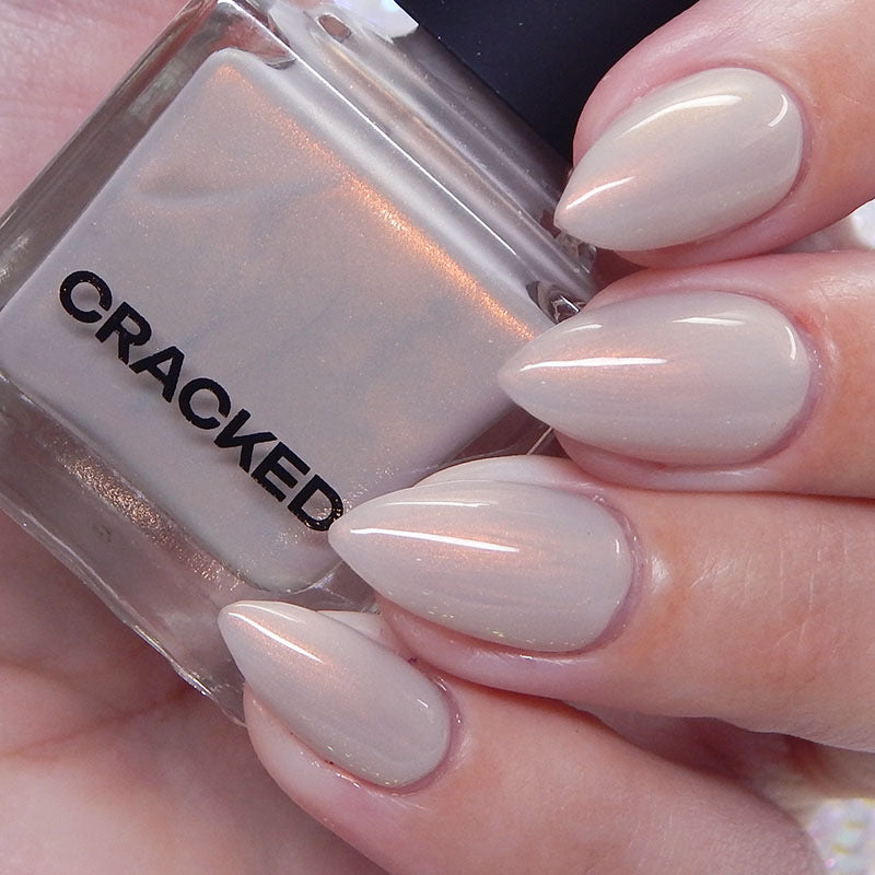 - French 75 (Cracked Polish): a gorgeous gray base with orange and gold shimmers.