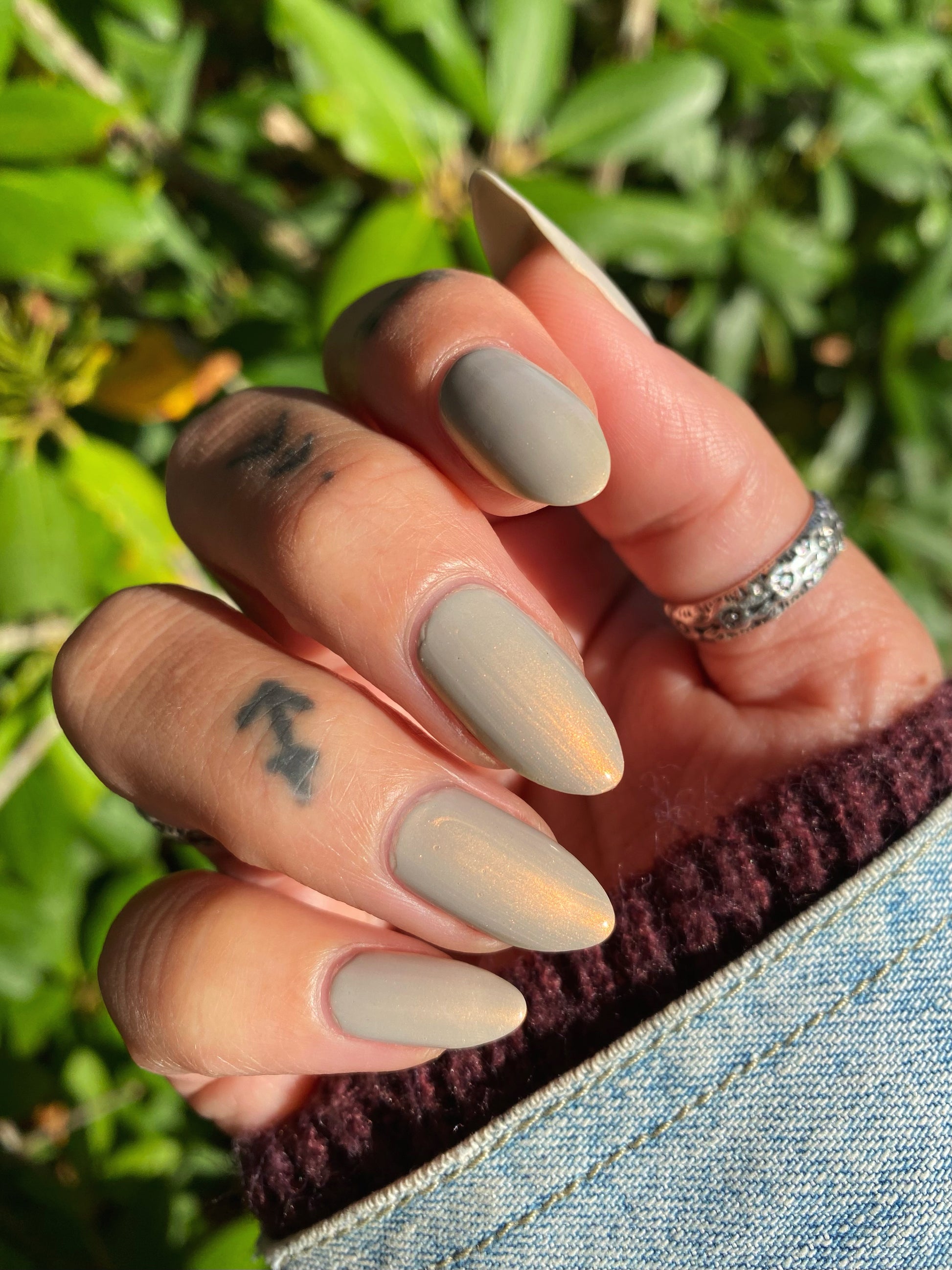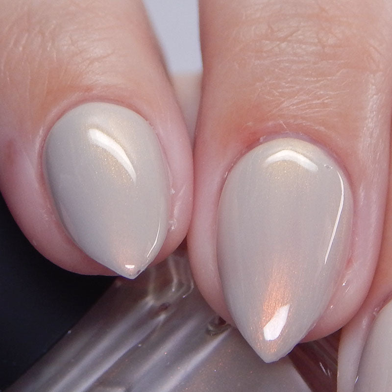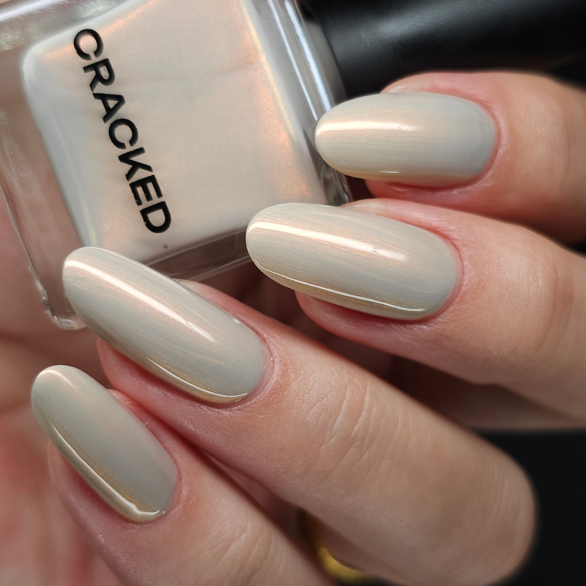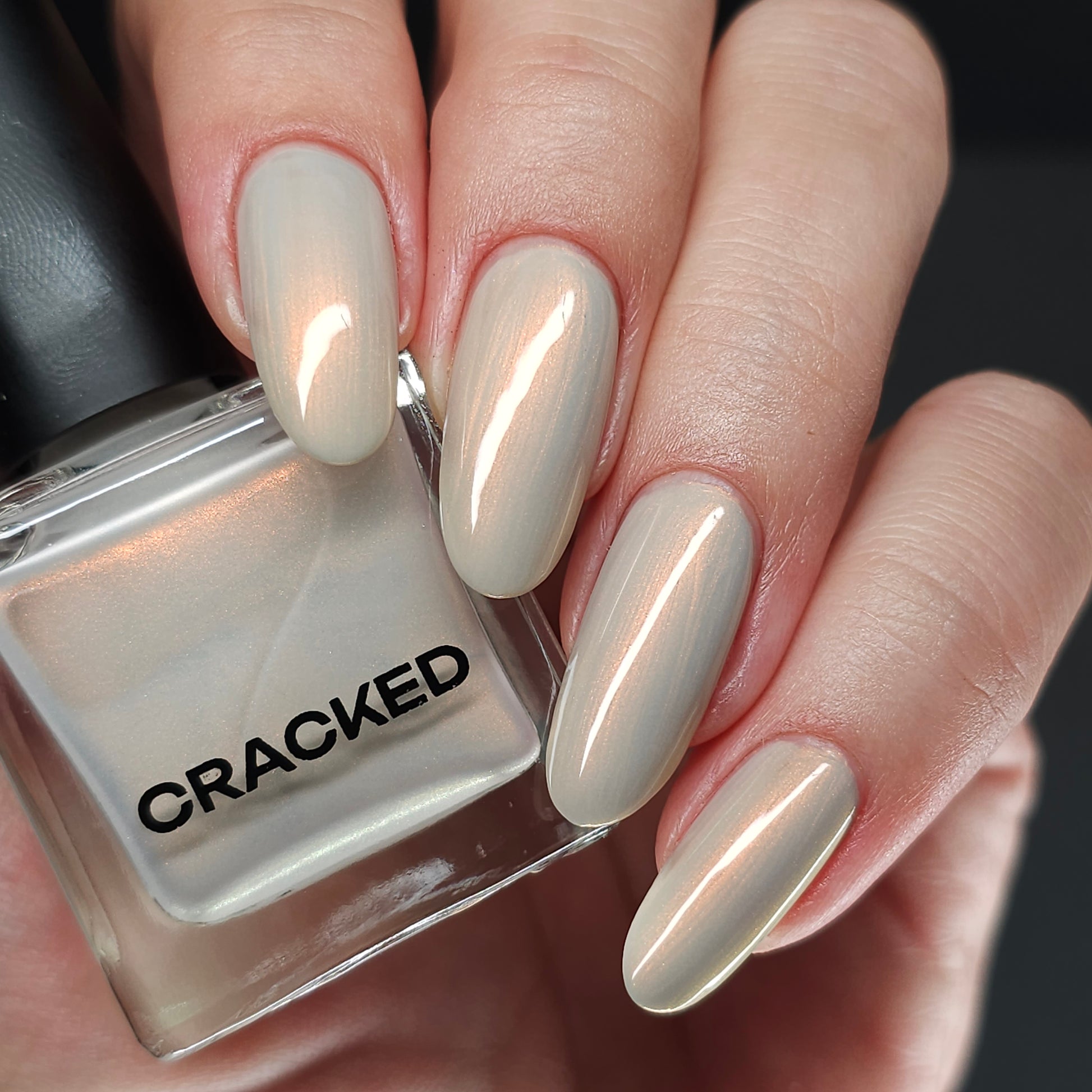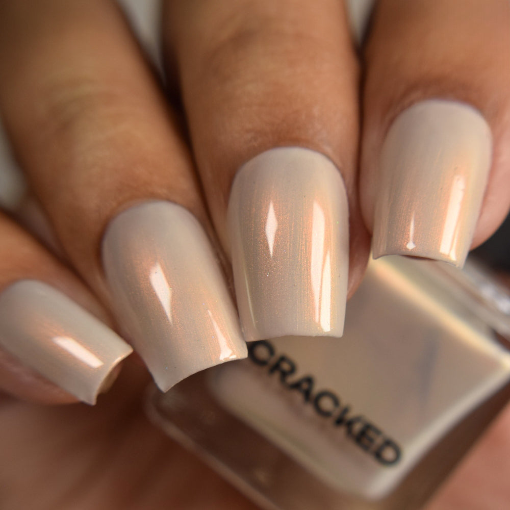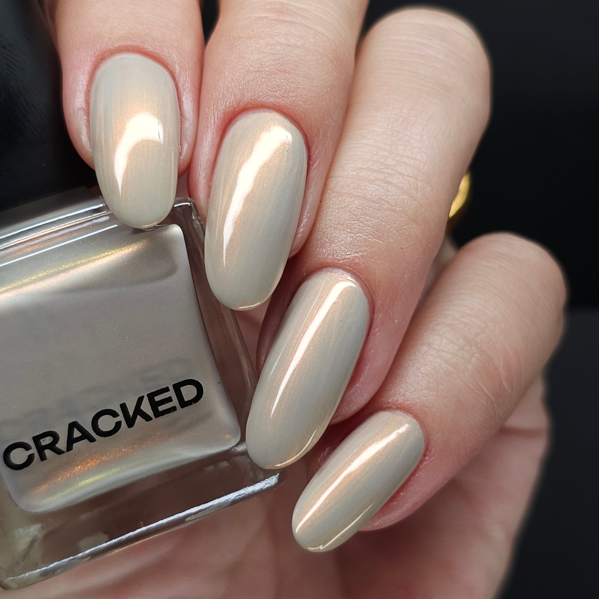 - French 75 (Cracked Polish): a gorgeous gray base with orange and gold shimmers.