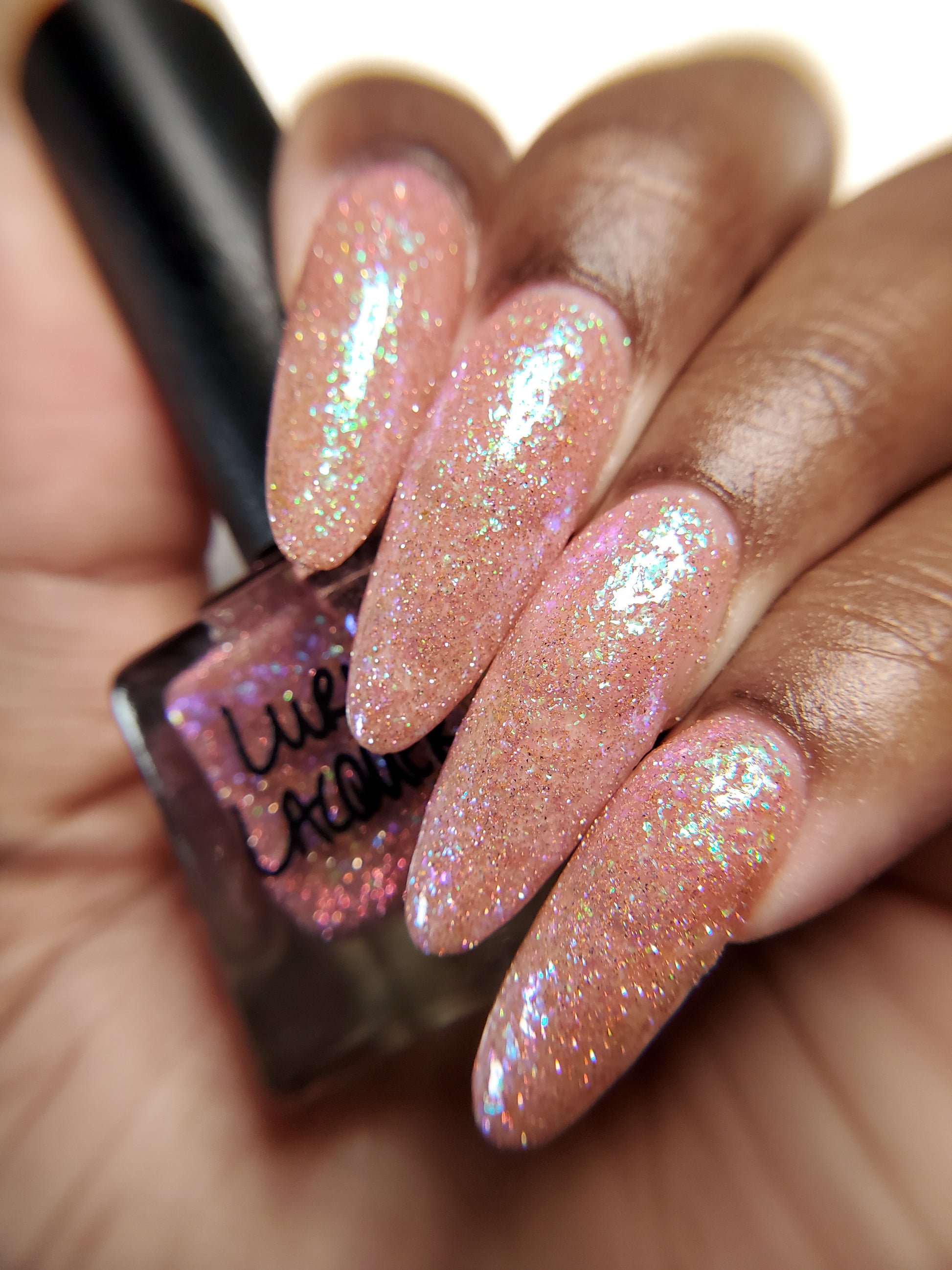 Our swatch photos are intended to give a general impression of the product. Lurid Lacquer polishes are semi-sheer and vary in appearance based on the skin tone and undertone of the person wearing them. We do our best to provide swatches that are both accurate and represent a variety of skin tones and undertones, but screens and monitors vary in how they display images. Our polishes are also handmade in small batches. There may be slight differences across batches. Due to differences in screens/monitors, skin tone/undertone, and batches, the product you receive may not look on you exactly like it does in your favorite swatcher's picture on your screen.