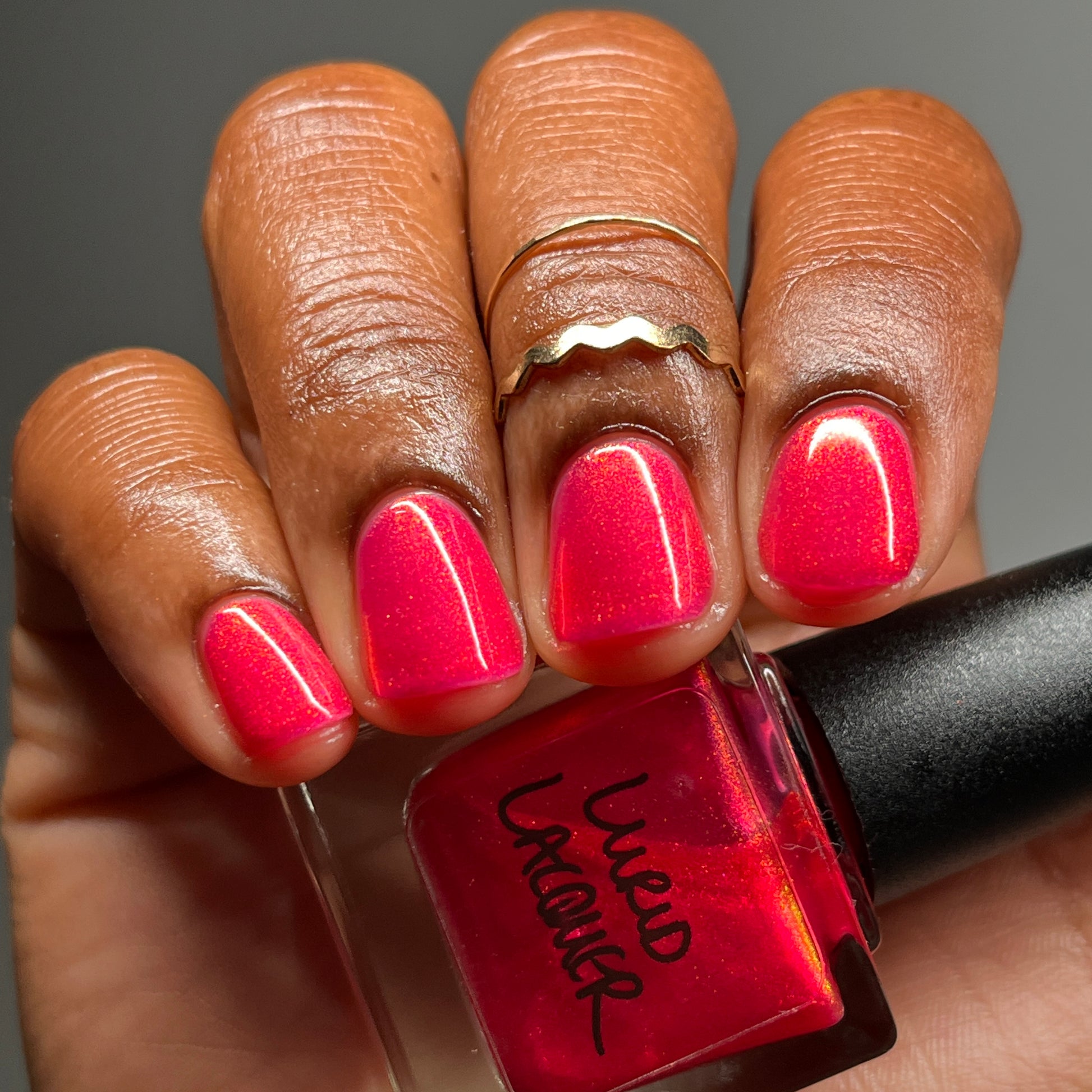 Our swatch photos are intended to give a general impression of the product. Lurid Lacquer polishes are semi-sheer and vary in appearance based on the skin tone and undertone of the person wearing them. We do our best to provide swatches that are both accurate and represent a variety of skin tones and undertones, but screens and monitors vary in how they display images. Our polishes are also handmade in small batches. There may be slight differences across batches. Due to differences in screens/monitors, skin tone/undertone, and batches, the product you receive may not look on you exactly like it does in your favorite swatcher's picture on your screen.