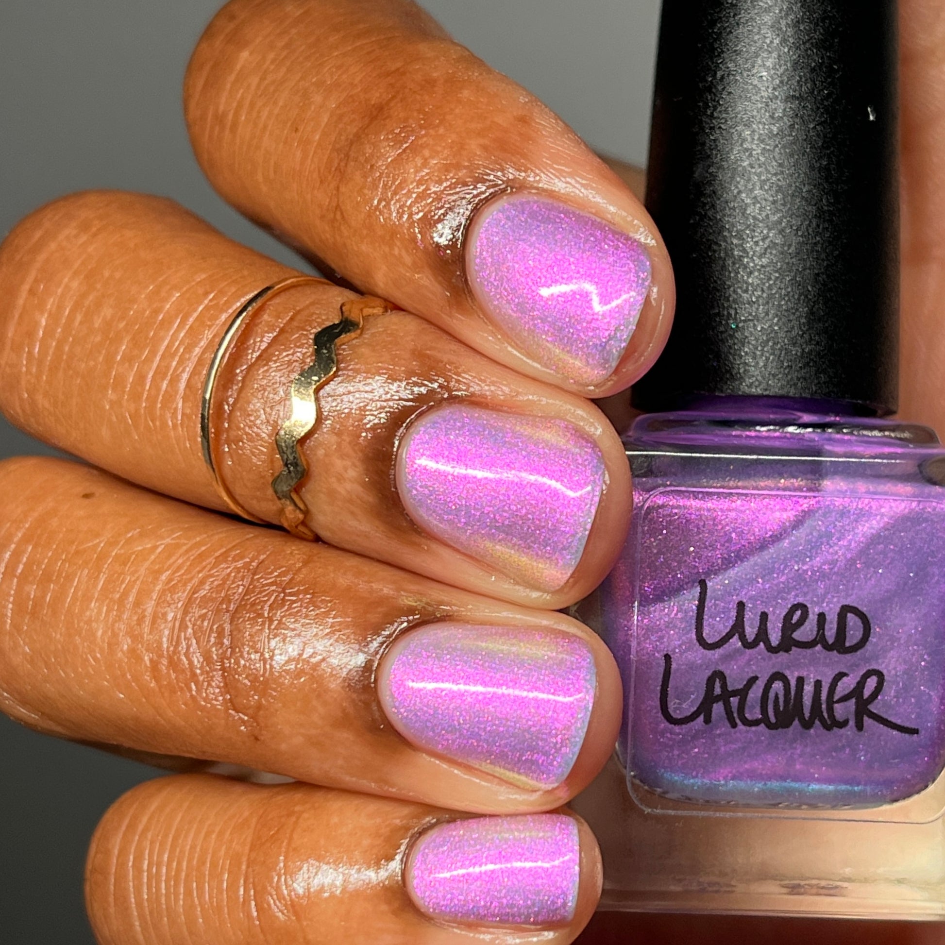 Our swatch photos are intended to give a general impression of the product. Lurid Lacquer polishes are semi-sheer and vary in appearance based on the skin tone and undertone of the person wearing them. We do our best to provide swatches that are both accurate and represent a variety of skin tones and undertones, but screens and monitors vary in how they display images. Our polishes are also handmade in small batches. There may be slight differences across batches. Due to differences in screens/monitors, skin tone/undertone, and batches, the product you receive may not look on you exactly like it does in your favorite swatcher's picture on your screen.