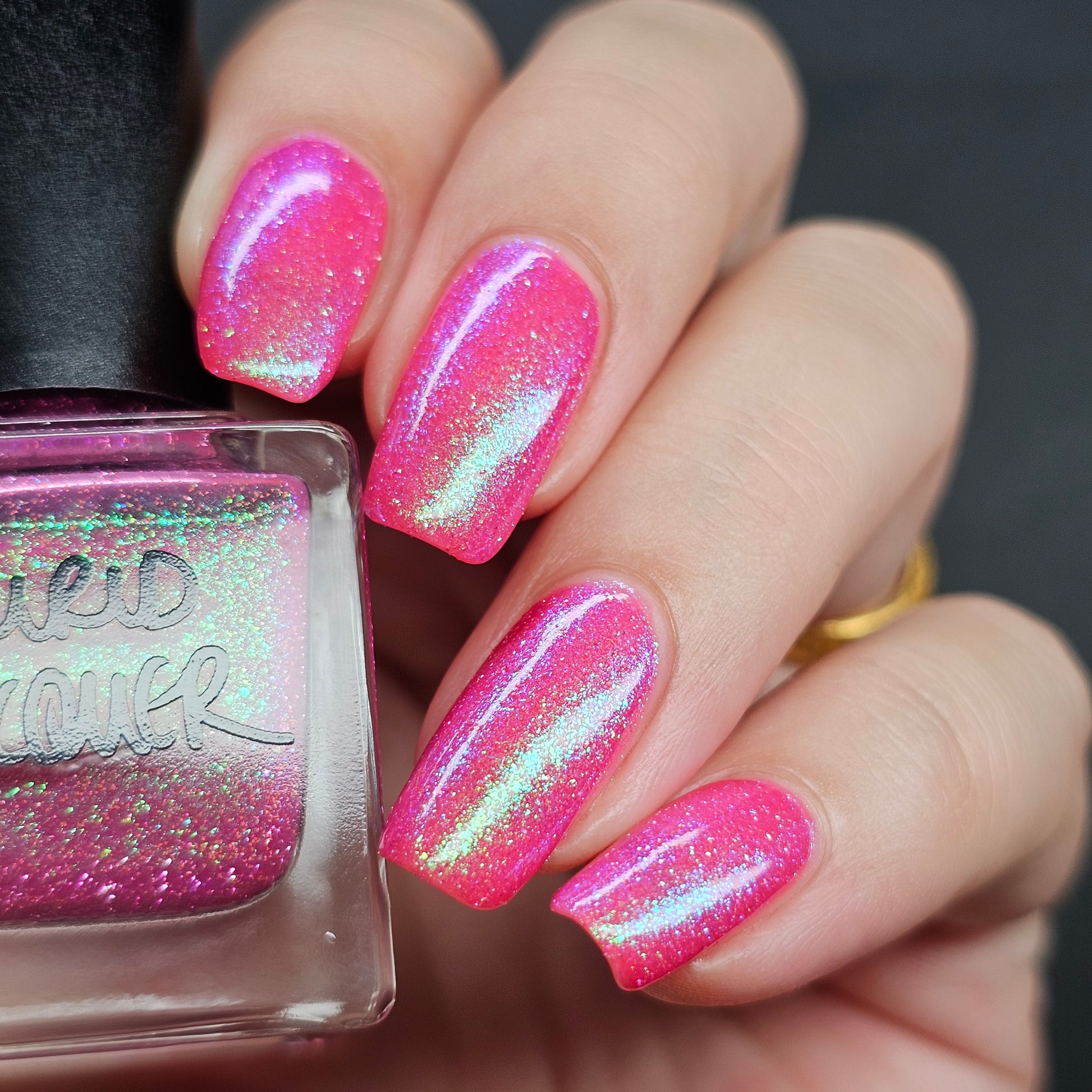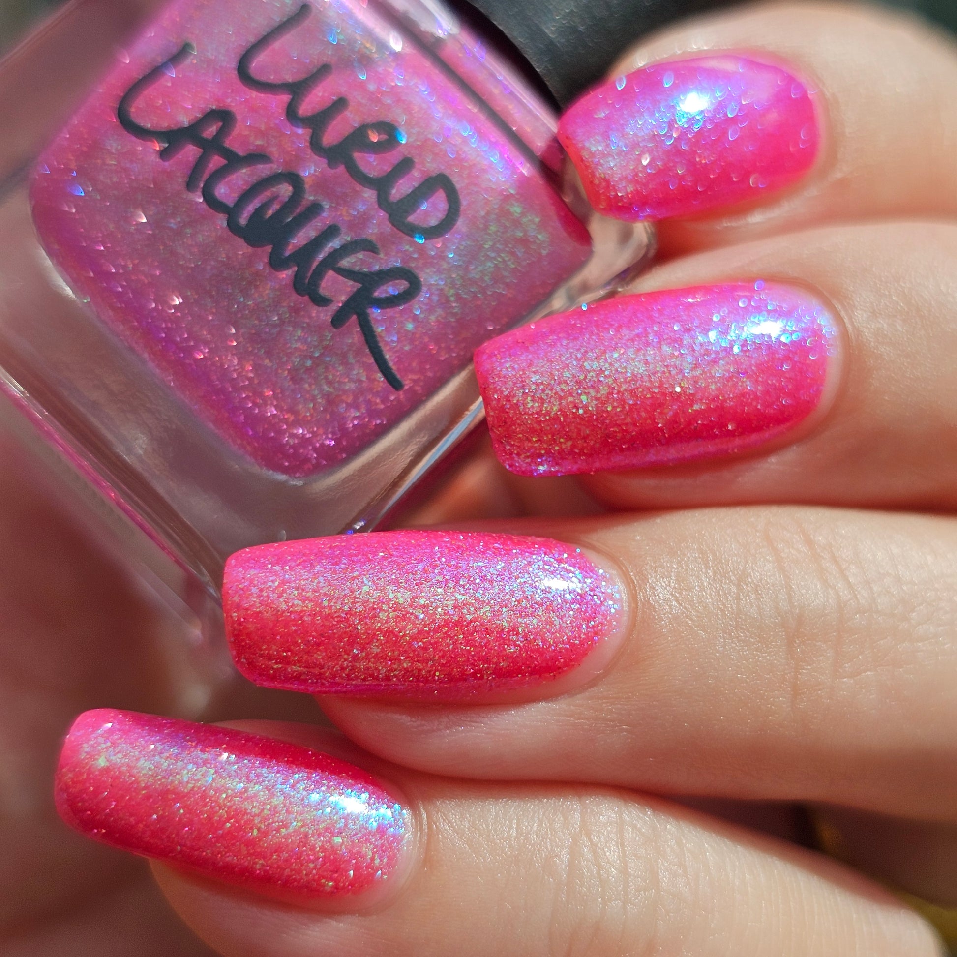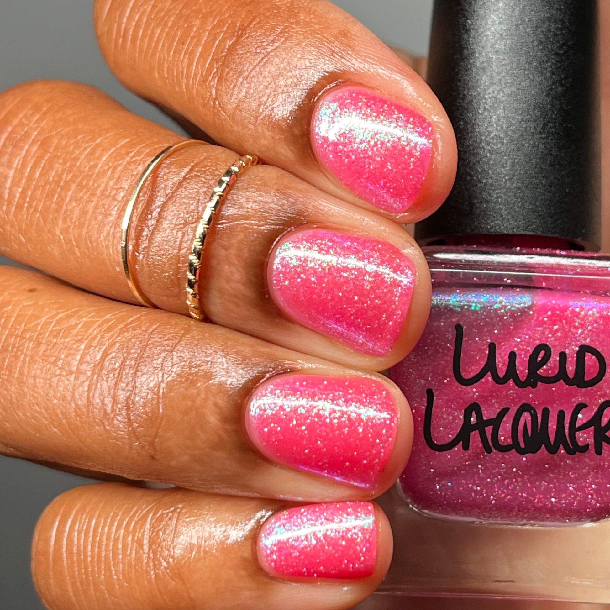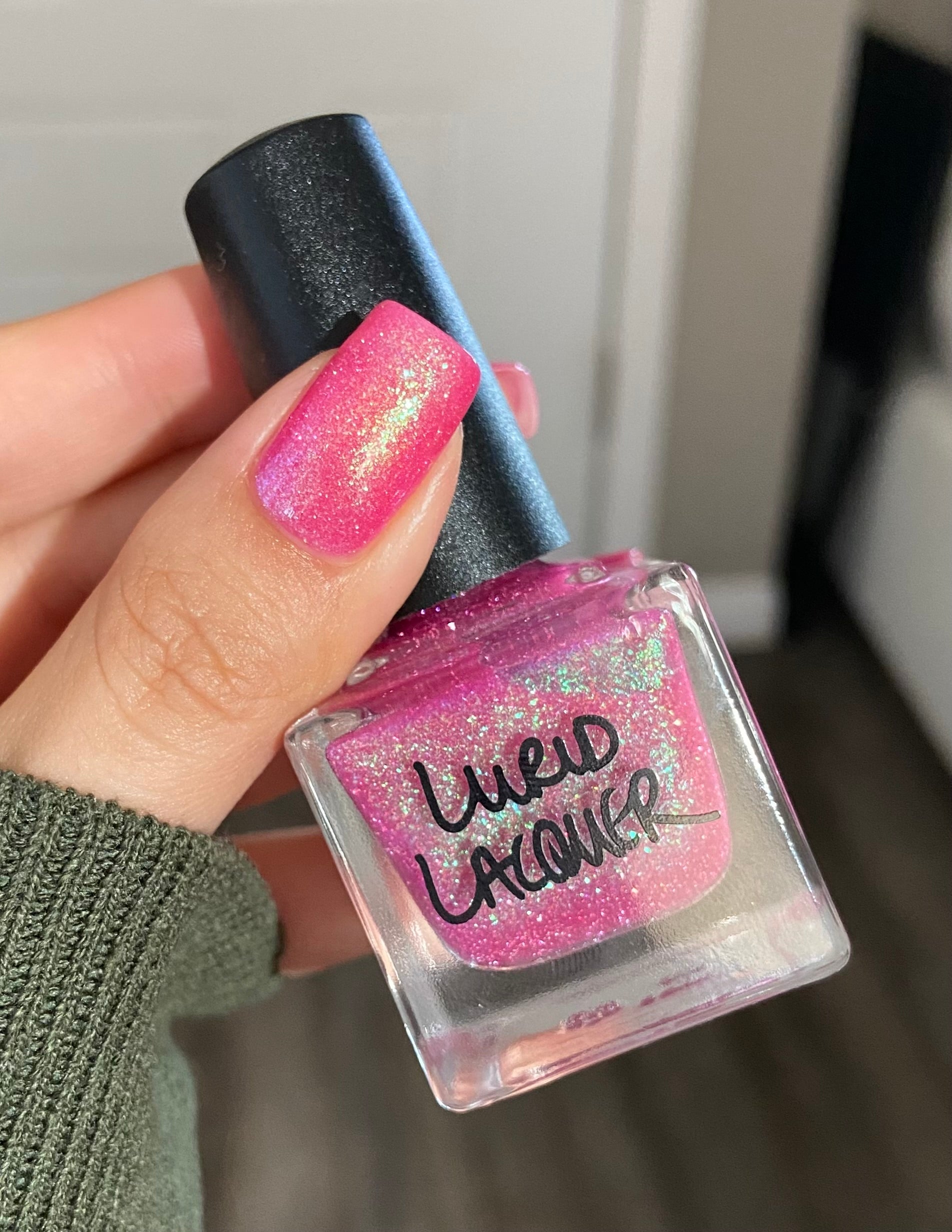 Our swatch photos are intended to give a general impression of the product. Lurid Lacquer polishes are semi-sheer and vary in appearance based on the skin tone and undertone of the person wearing them. We do our best to provide swatches that are both accurate and represent a variety of skin tones and undertones, but screens and monitors vary in how they display images. Our polishes are also handmade in small batches. There may be slight differences across batches. Due to differences in screens/monitors, skin tone/undertone, and batches, the product you receive may not look on you exactly like it does in your favorite swatcher's picture on your screen.