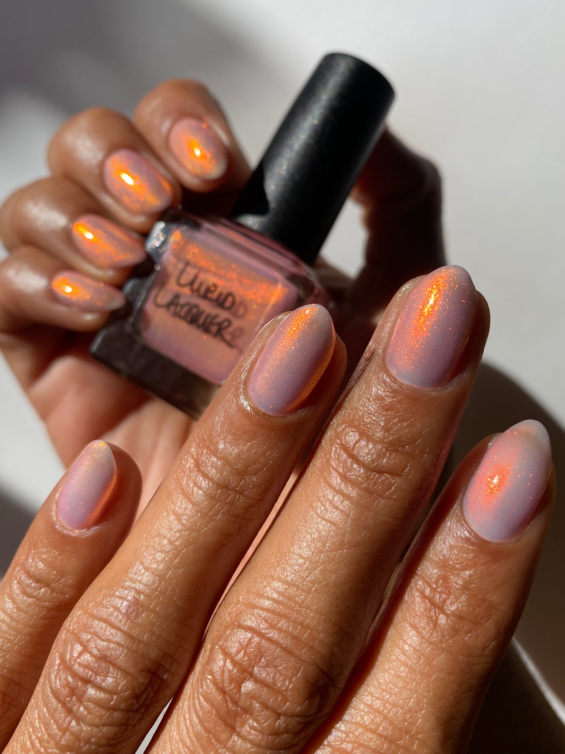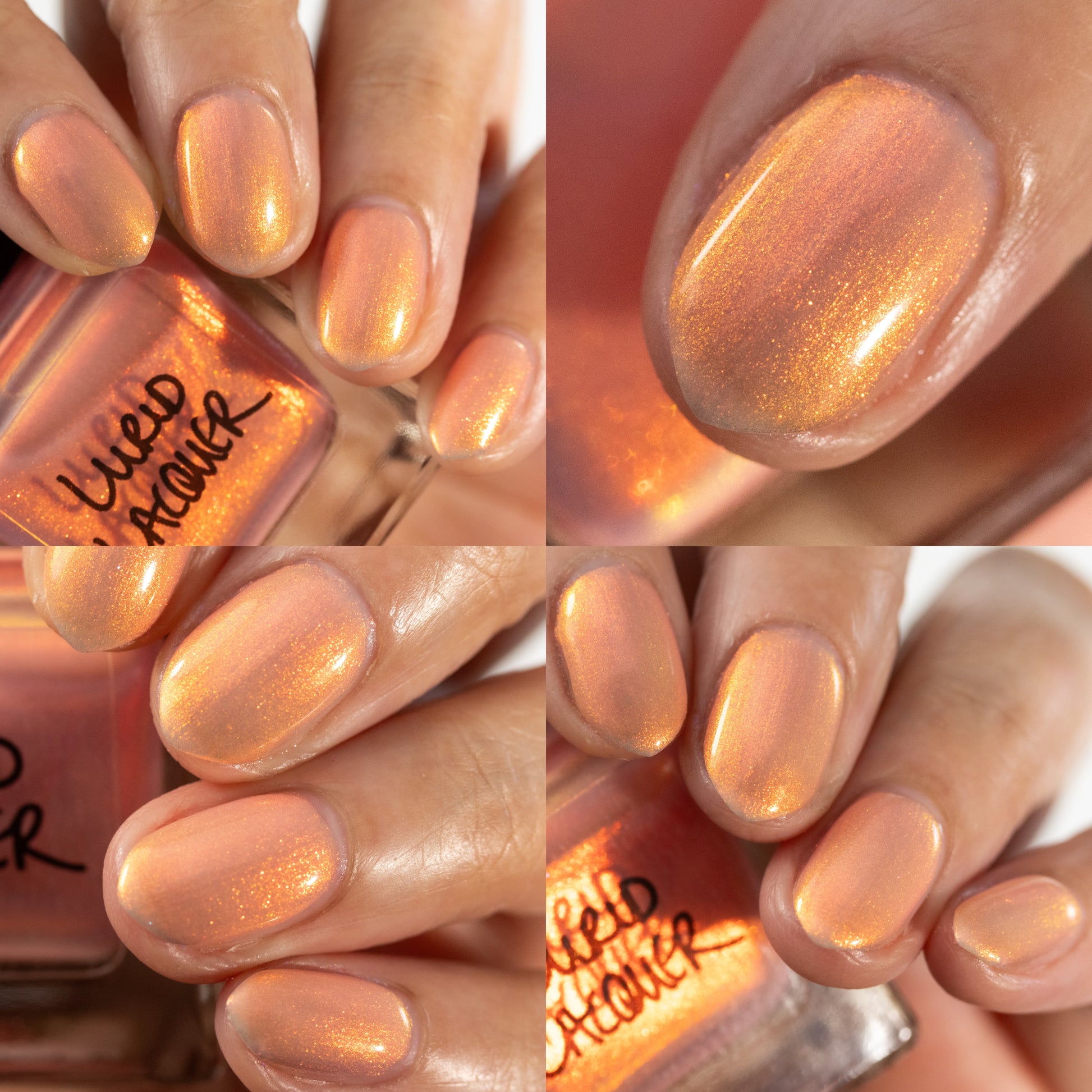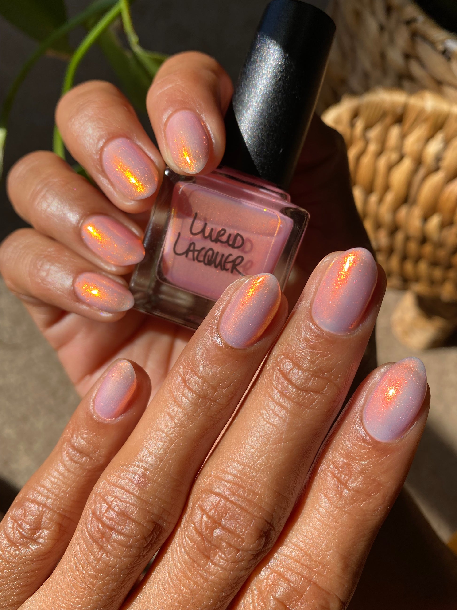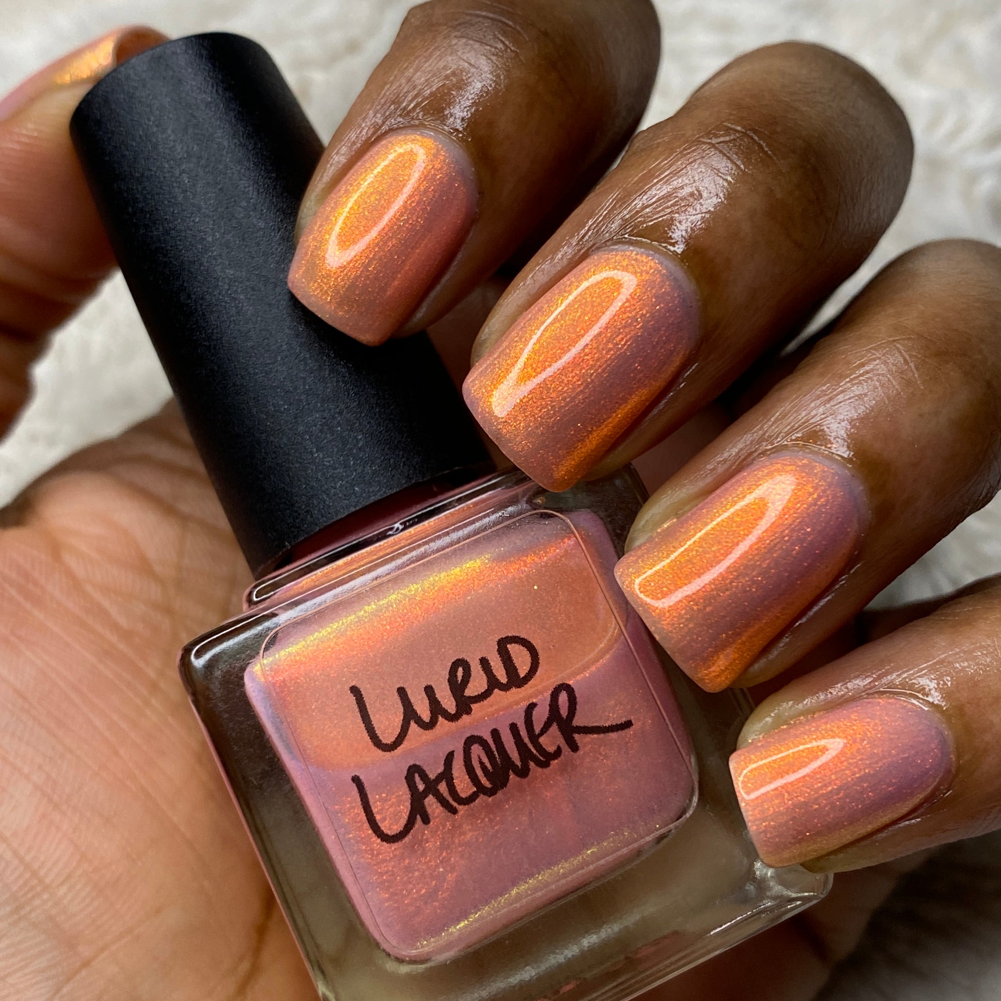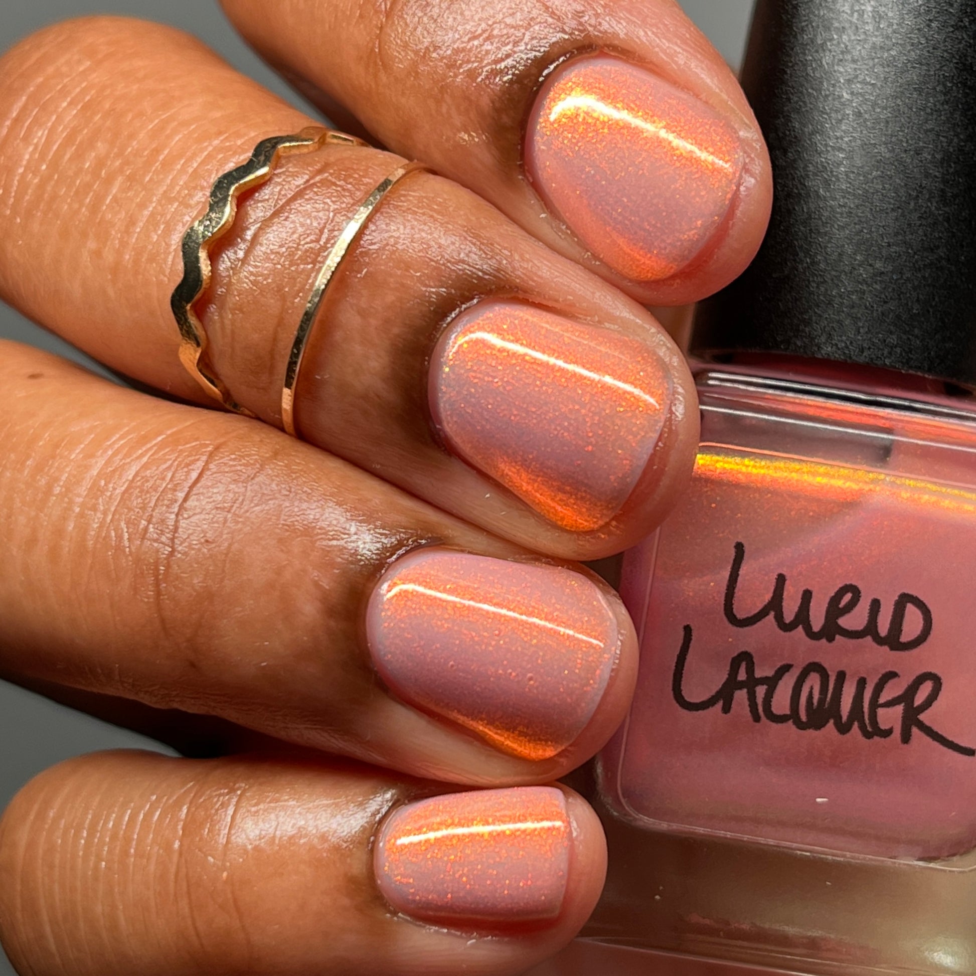 Our swatch photos are intended to give a general impression of the product. Lurid Lacquer polishes are semi-sheer and vary in appearance based on the skintone and undertone of the person wearing them. We do our best to provide swatches that are both accurate and represent a variety of skintones and undertones, but screens and monitors vary in how they display images. Our polishes are also handmade in small batches. There may be slight differences across batches. Due to differences in screens/monitors, skintone/undertone, and batches, the product you receive may not look on you exactly like it does in your favorite swatcher's picture on your screen.