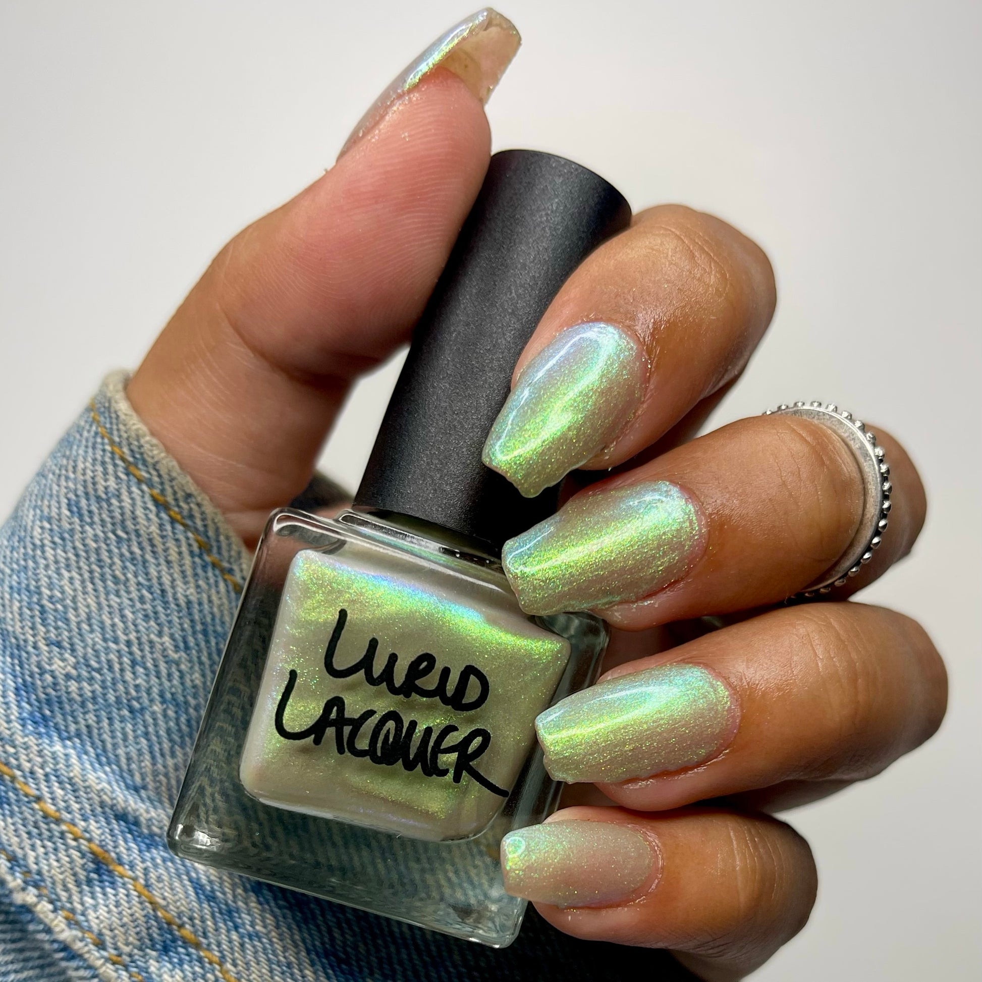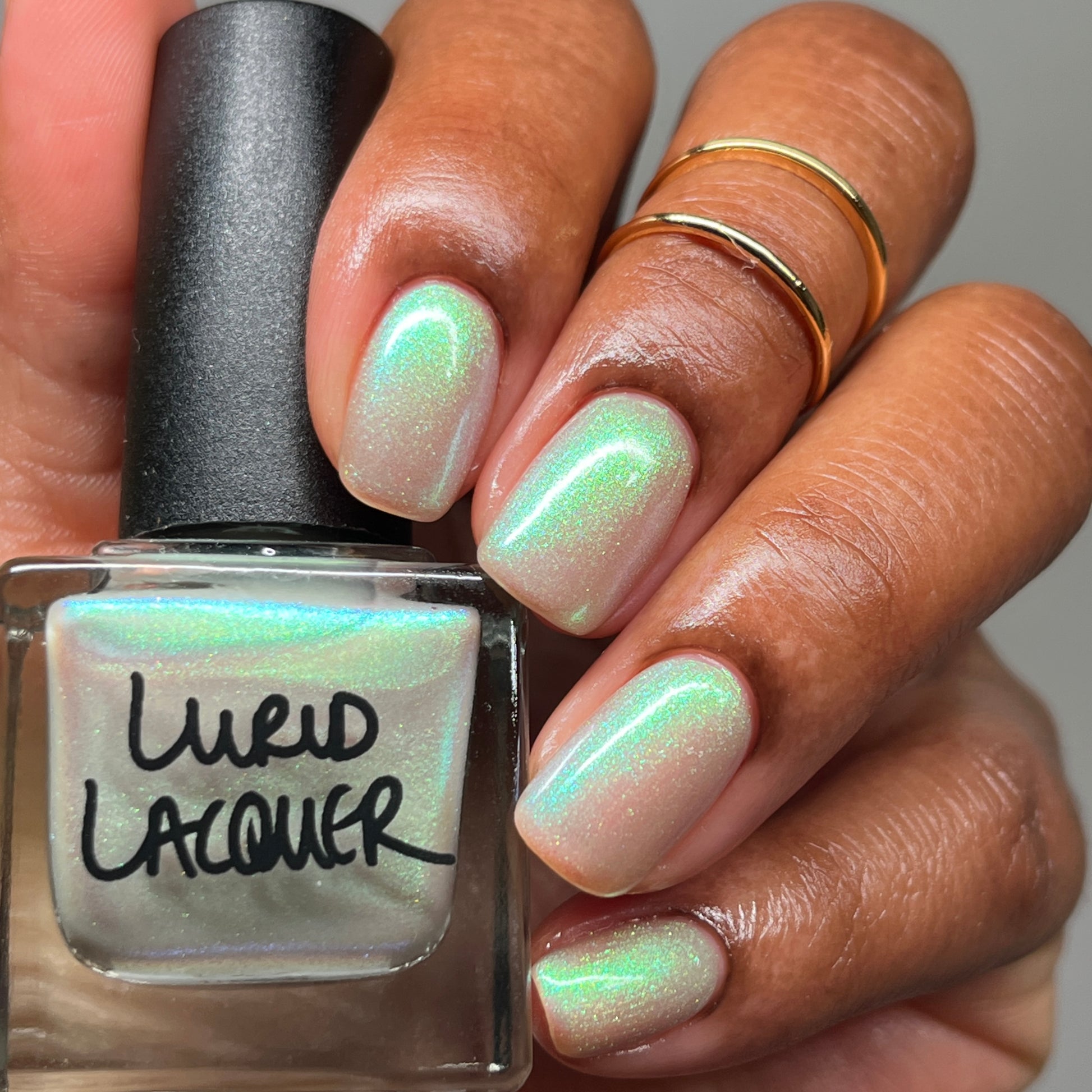 Our swatch photos are intended to give a general impression of the product. Lurid Lacquer polishes are semi-sheer and vary in appearance based on the skin tone and undertone of the person wearing them. We do our best to provide swatches that are both accurate and represent a variety of skin tones and undertones, but screens and monitors vary in how they display images. Our polishes are also handmade in small batches. There may be slight differences across batches. Due to differences in screens/monitors, skin tone/undertone, and batches, the product you receive may not look on you exactly like it does in your favorite swatcher's picture on your screen.