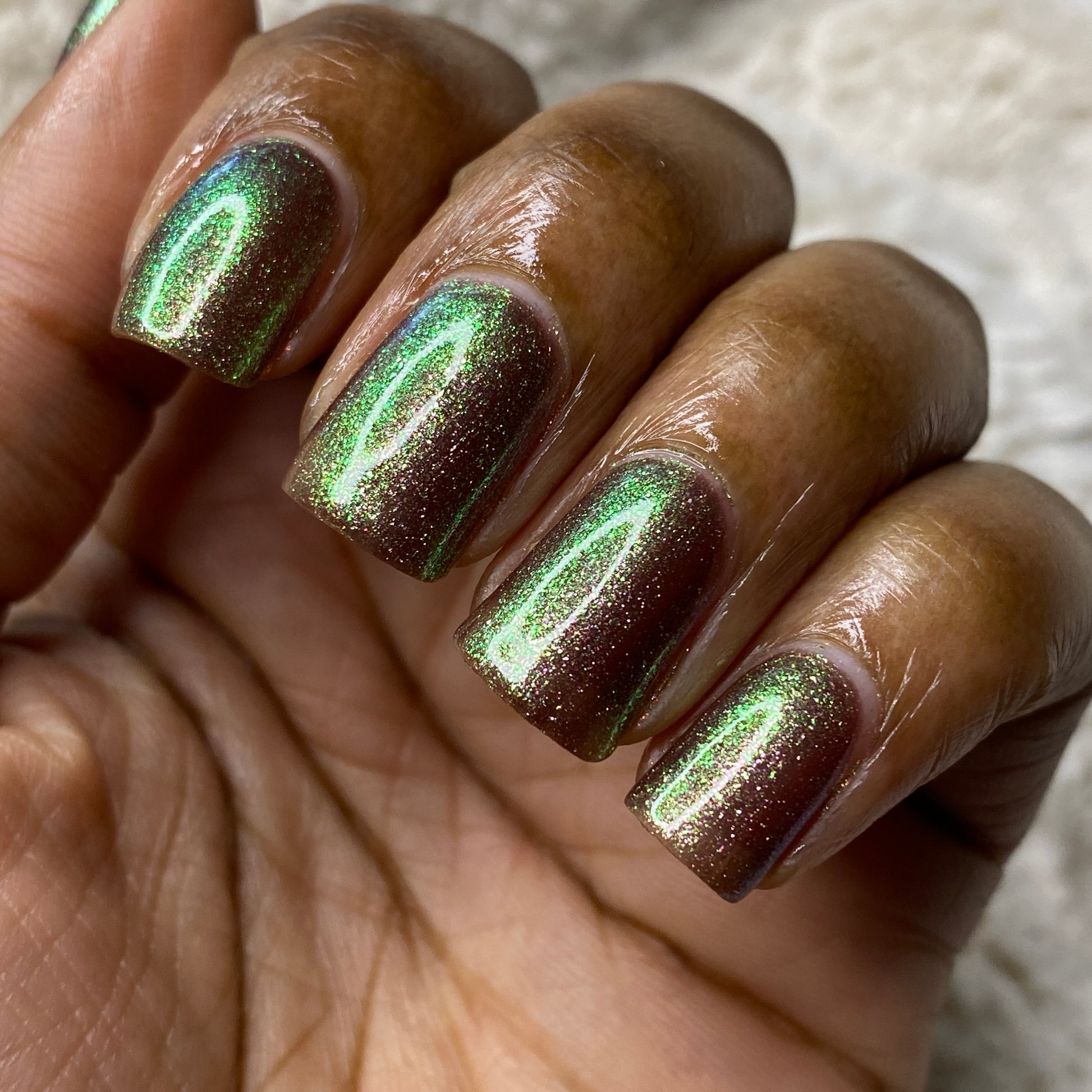 Our swatch photos are intended to give a general impression of the product. Lurid Lacquer polishes are semi-sheer and vary in appearance based on the skintone and undertone of the person wearing them. We do our best to provide swatches that are both accurate and represent a variety of skintones and undertones, but screens and monitors vary in how they display images. Our polishes are also handmade in small batches. There may be slight differences across batches. Due to differences in screens/monitors, skintone/undertone, and batches, the product you receive may not look on you exactly like it does in your favorite swatcher's picture on your screen.