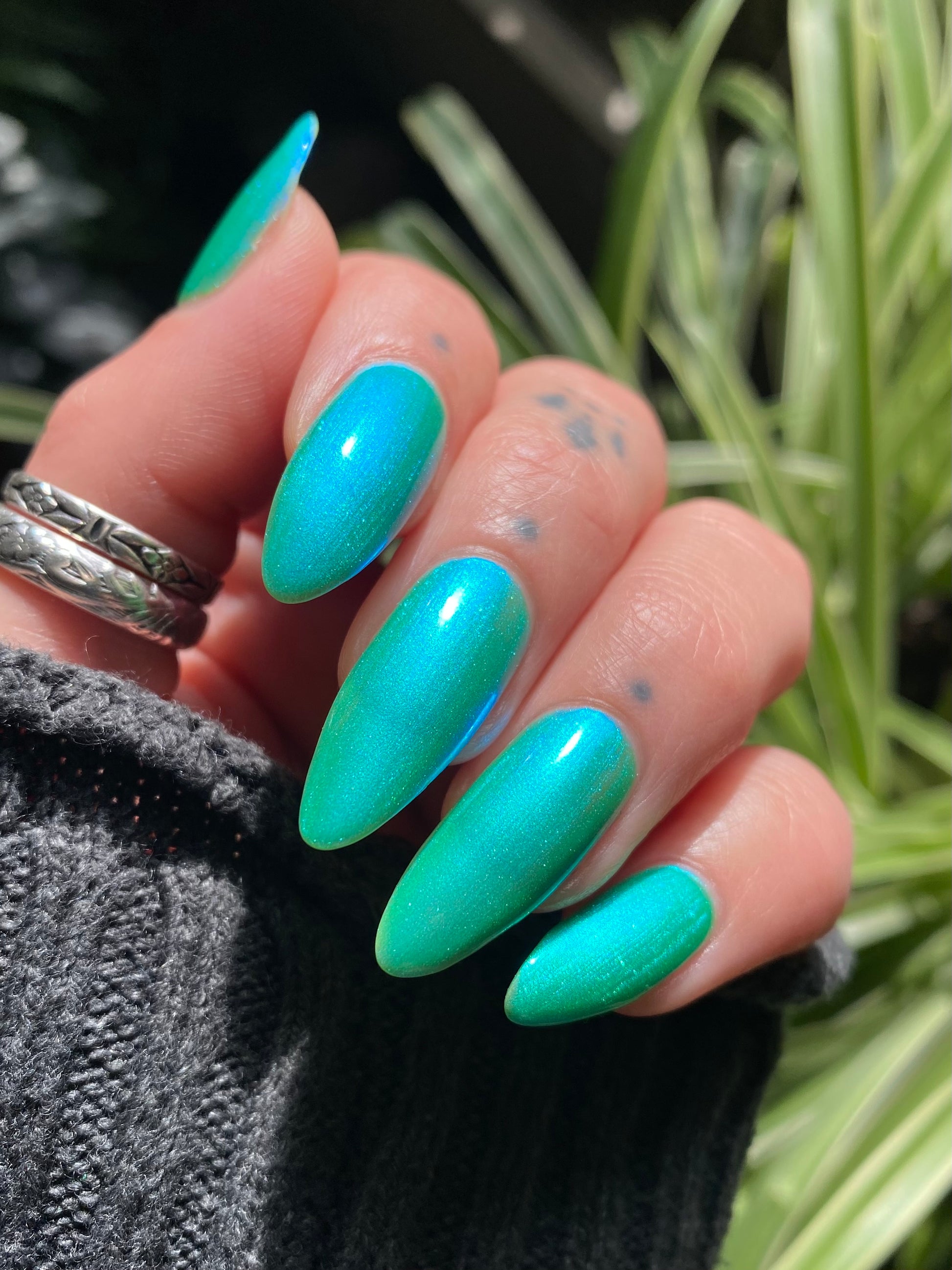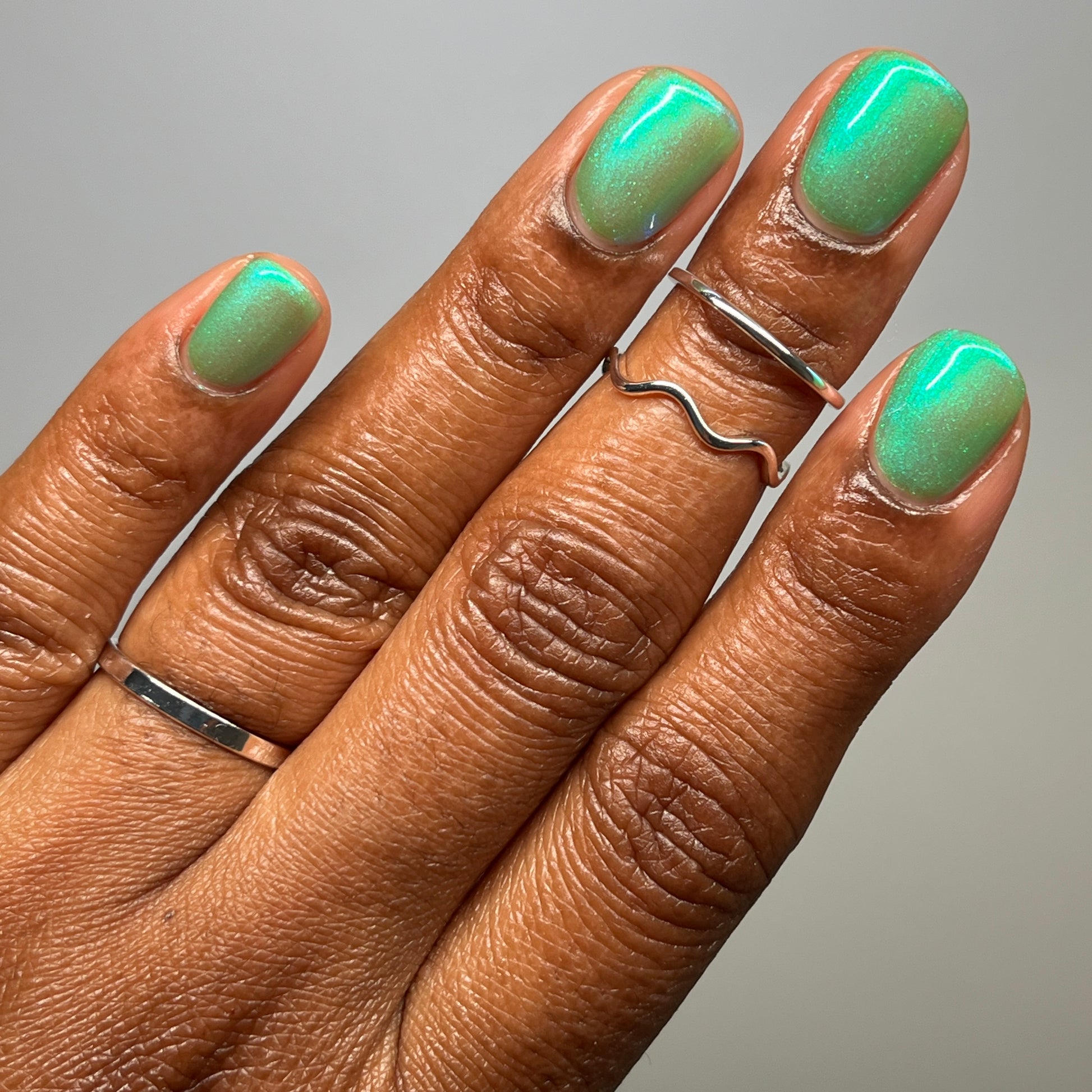 Our swatch photos are intended to give a general impression of the product. Lurid Lacquer polishes are semi-sheer and vary in appearance based on the skin tone and undertone of the person wearing them. We do our best to provide swatches that are both accurate and represent a variety of skin tones and undertones, but screens and monitors vary in how they display images. Our polishes are also handmade in small batches. There may be slight differences across batches. Due to differences in screens/monitors, skin tone/undertone, and batches, the product you receive may not look on you exactly like it does in your favorite swatcher's picture on your screen.