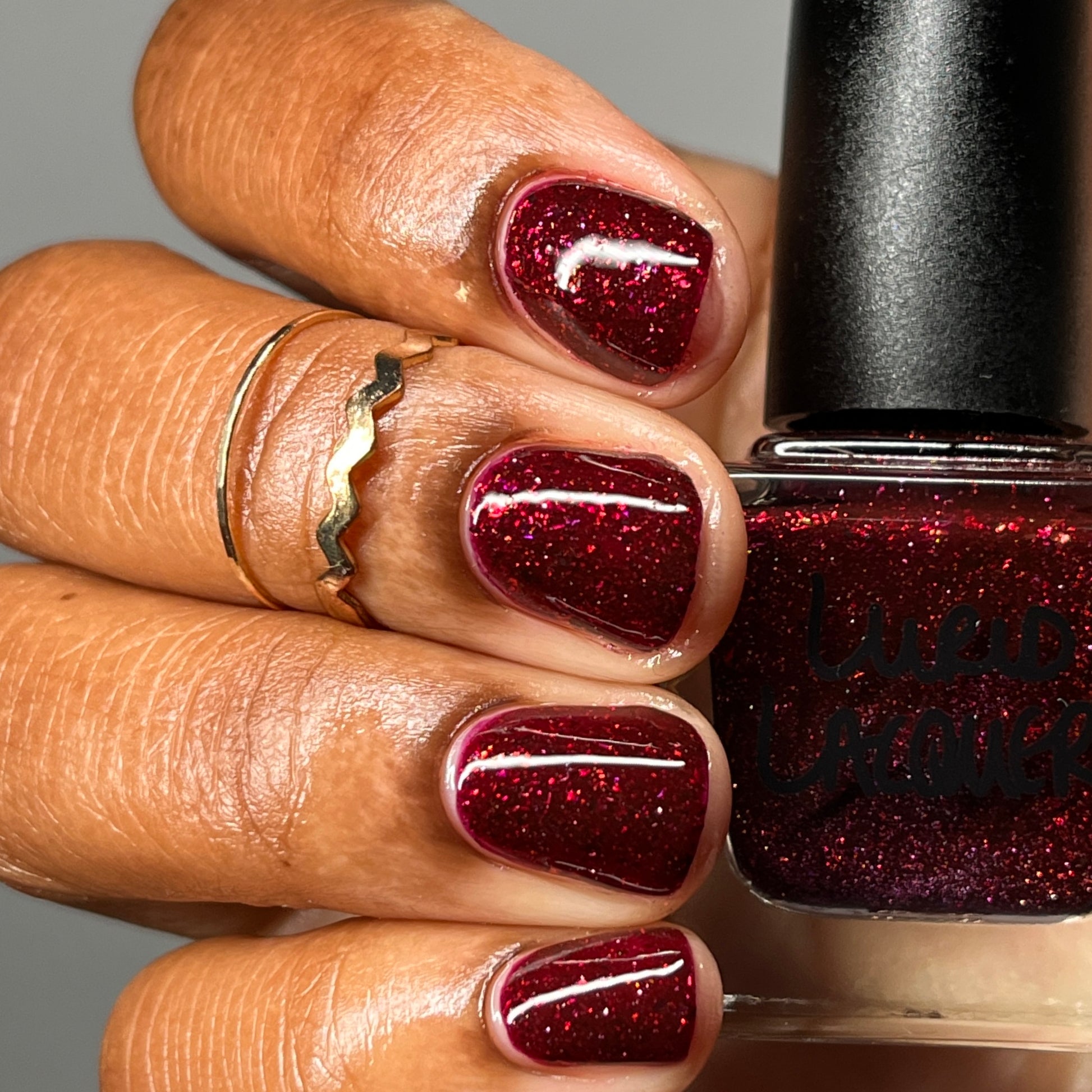 Our swatch photos are intended to give a general impression of the product. Lurid Lacquer polishes are semi-sheer and vary in appearance based on the skin tone and undertone of the person wearing them. We do our best to provide swatches that are both accurate and represent a variety of skin tones and undertones, but screens and monitors vary in how they display images. Our polishes are also handmade in small batches. There may be slight differences across batches. Due to differences in screens/monitors, skin tone/undertone, and batches, the product you receive may not look on you exactly like it does in your favorite swatcher's picture on your screen.