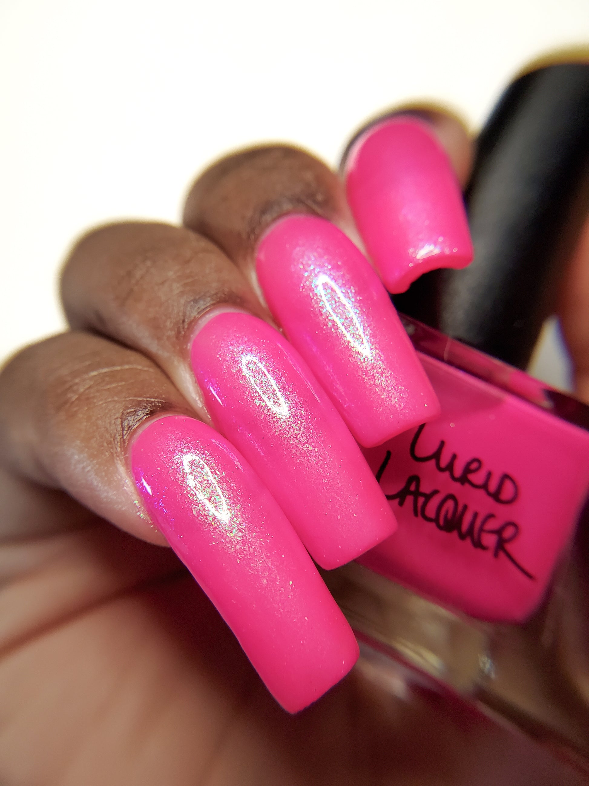 Our swatch photos are intended to give a general impression of the product. Lurid Lacquer polishes are semi-sheer and vary in appearance based on the skin tone and undertone of the person wearing them. We do our best to provide swatches that are both accurate and represent a variety of skin tones and undertones, but screens and monitors vary in how they display images. Our polishes are also handmade in small batches. There may be slight differences across batches. Due to differences in screens/monitors, skin tone/undertone, and batches, the product you receive may not look on you exactly like it does in your favorite swatcher's picture on your screen.