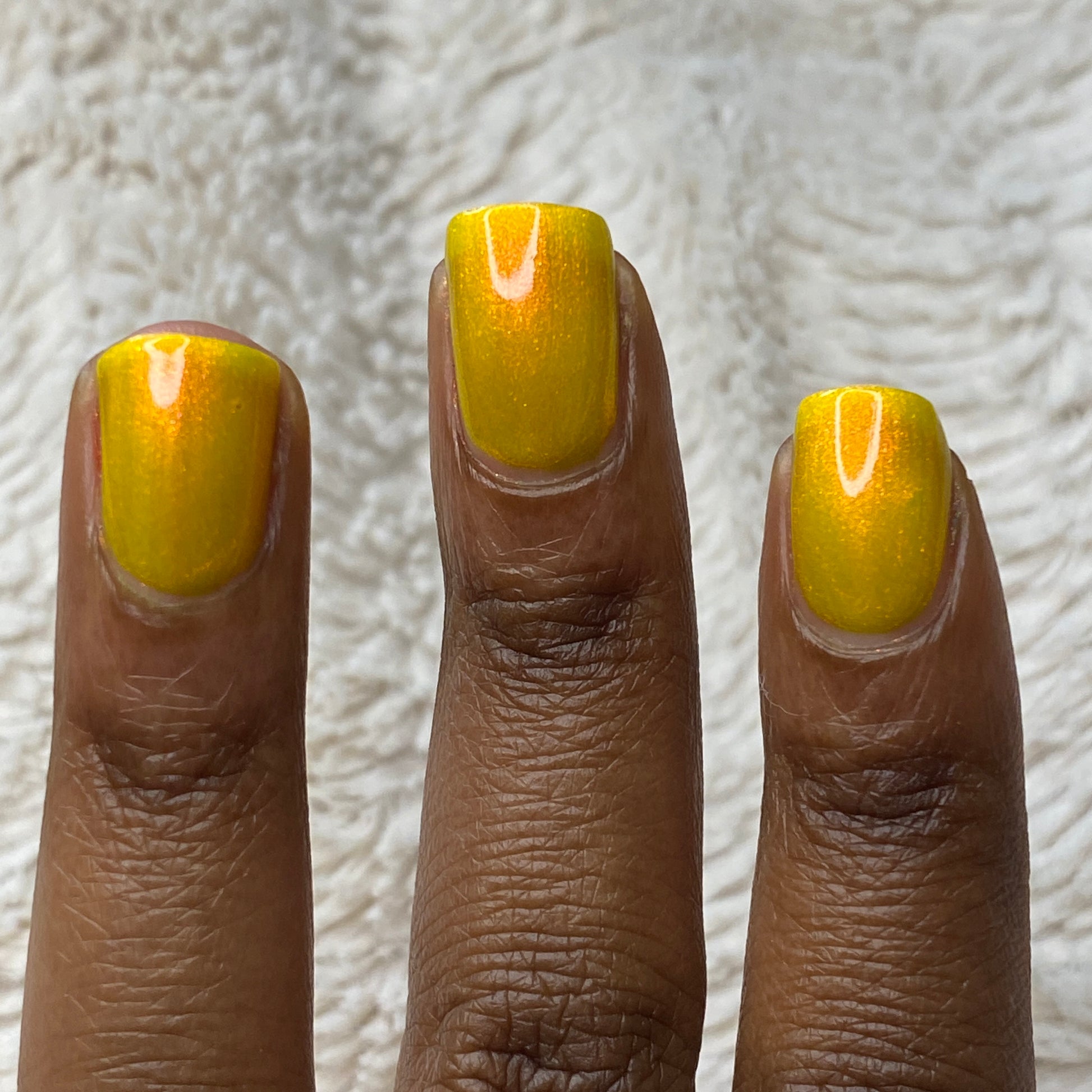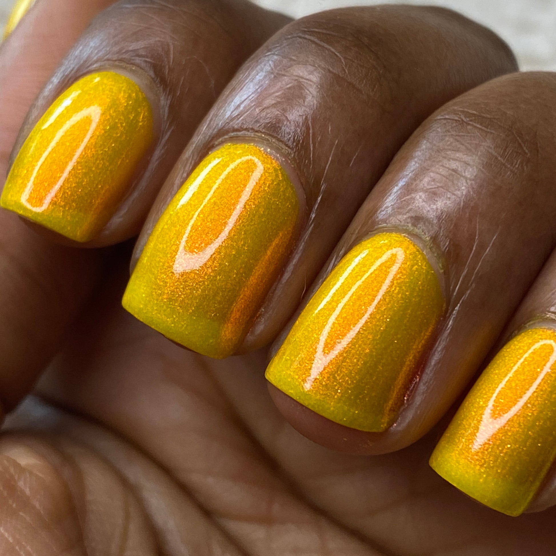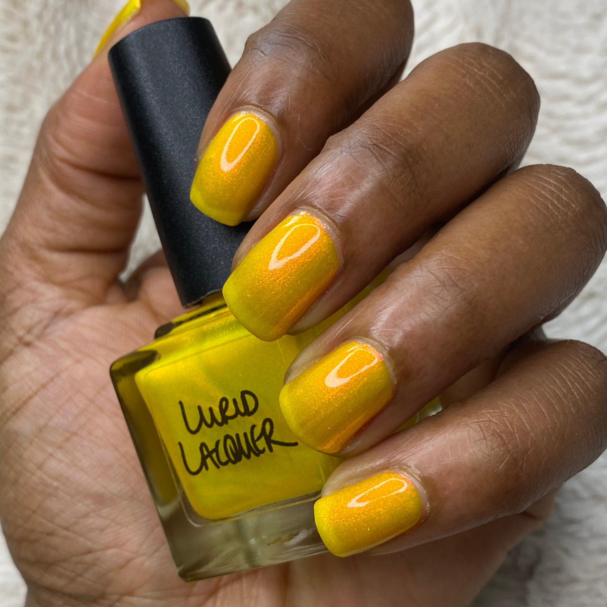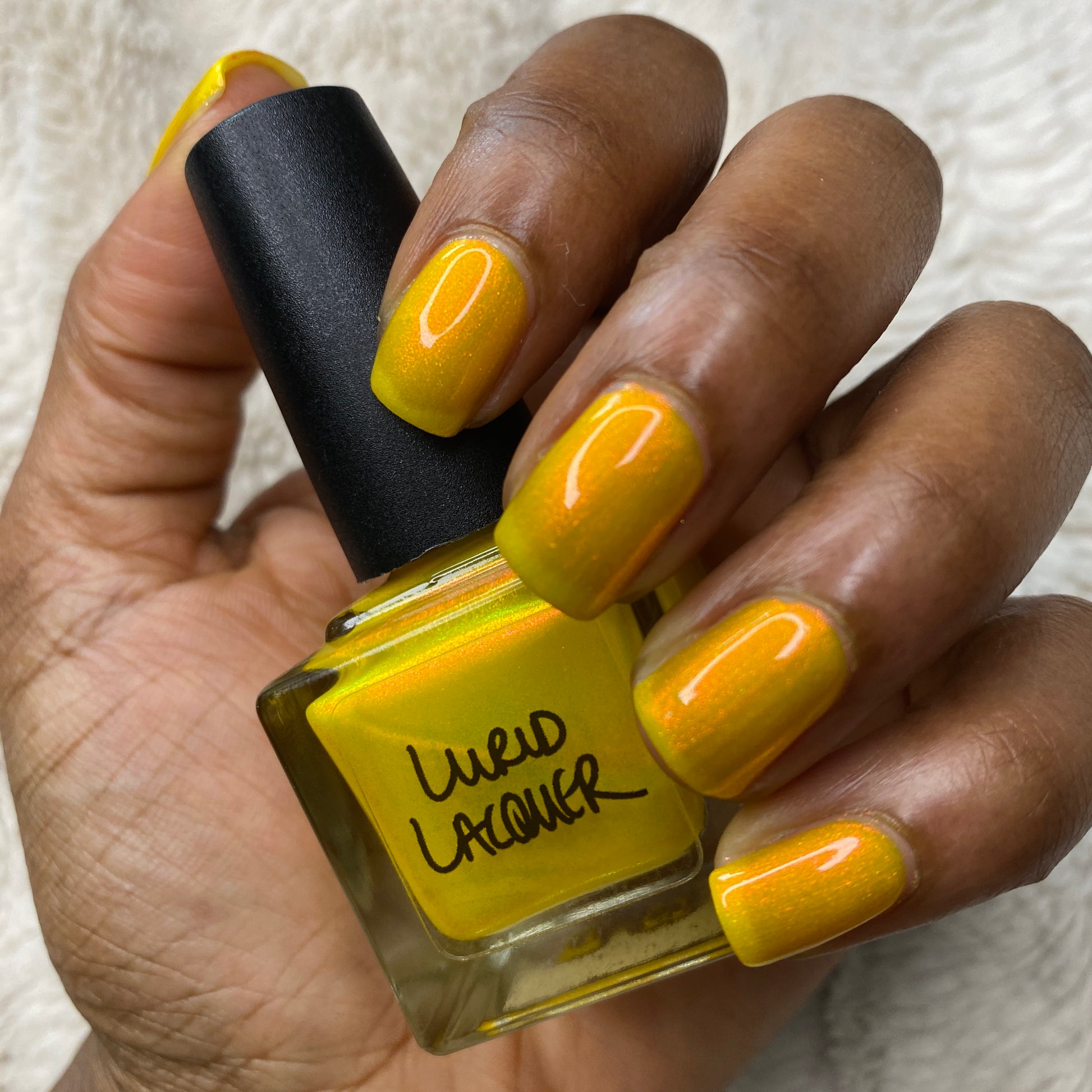Our swatch photos are intended to give a general impression of the product. Lurid Lacquer polishes are semi-sheer and vary in appearance based on the skin tone and undertone of the person wearing them. We do our best to provide swatches that are both accurate and represent a variety of skin tones and undertones, but screens and monitors vary in how they display images. Our polishes are also handmade in small batches. There may be slight differences across batches. Due to differences in screens/monitors, skin tone/undertone, and batches, the product you receive may not look on you exactly like it does in your favorite swatcher's picture on your screen.