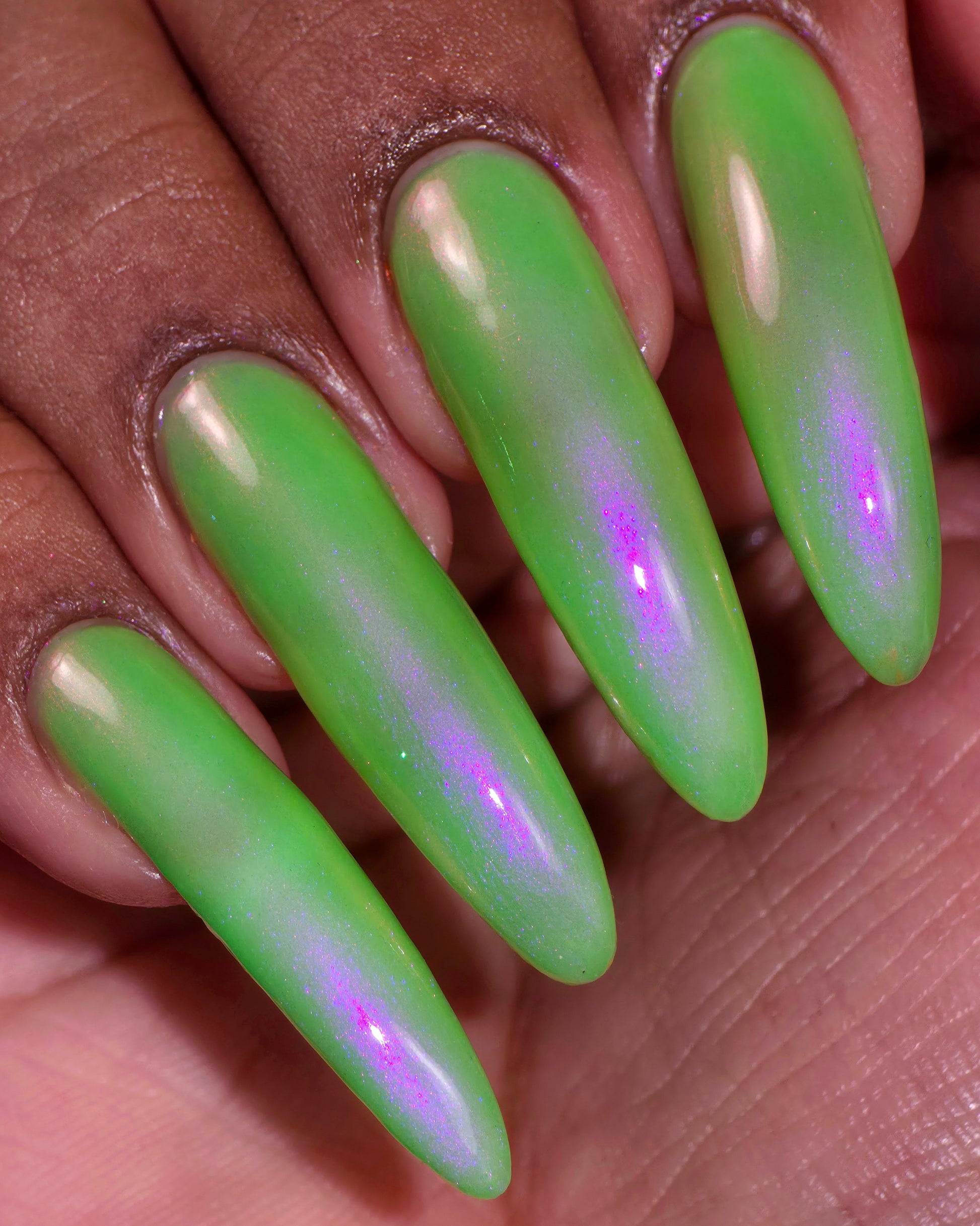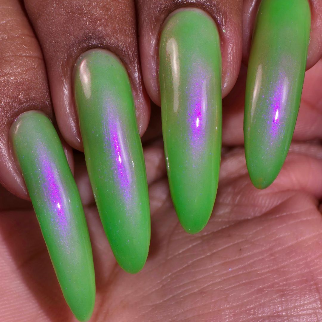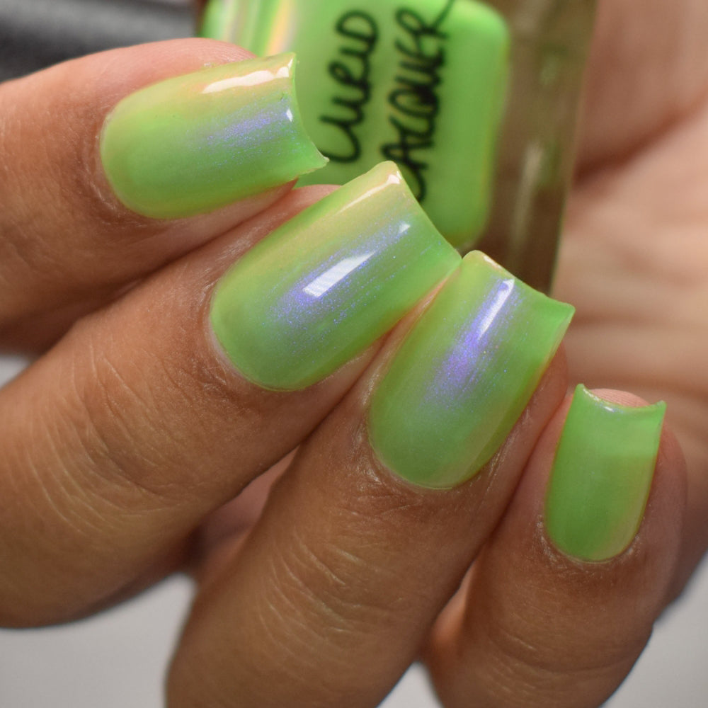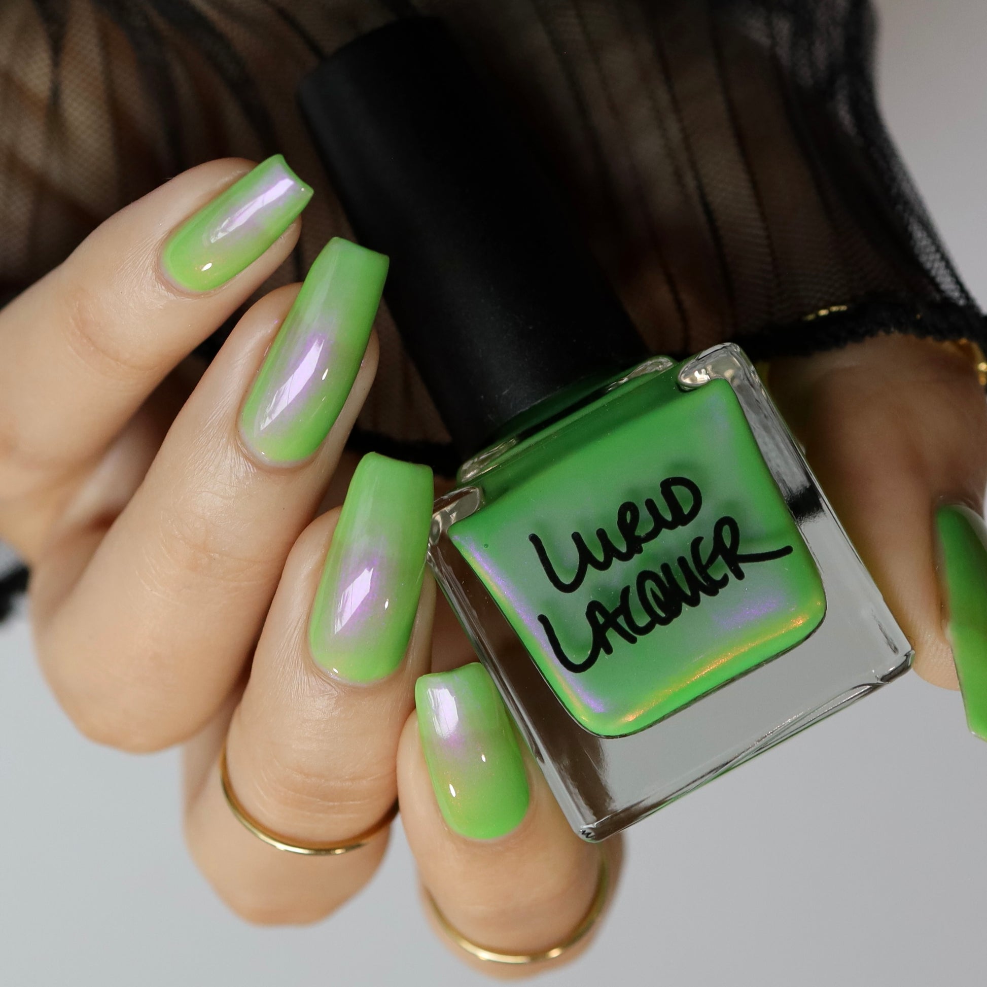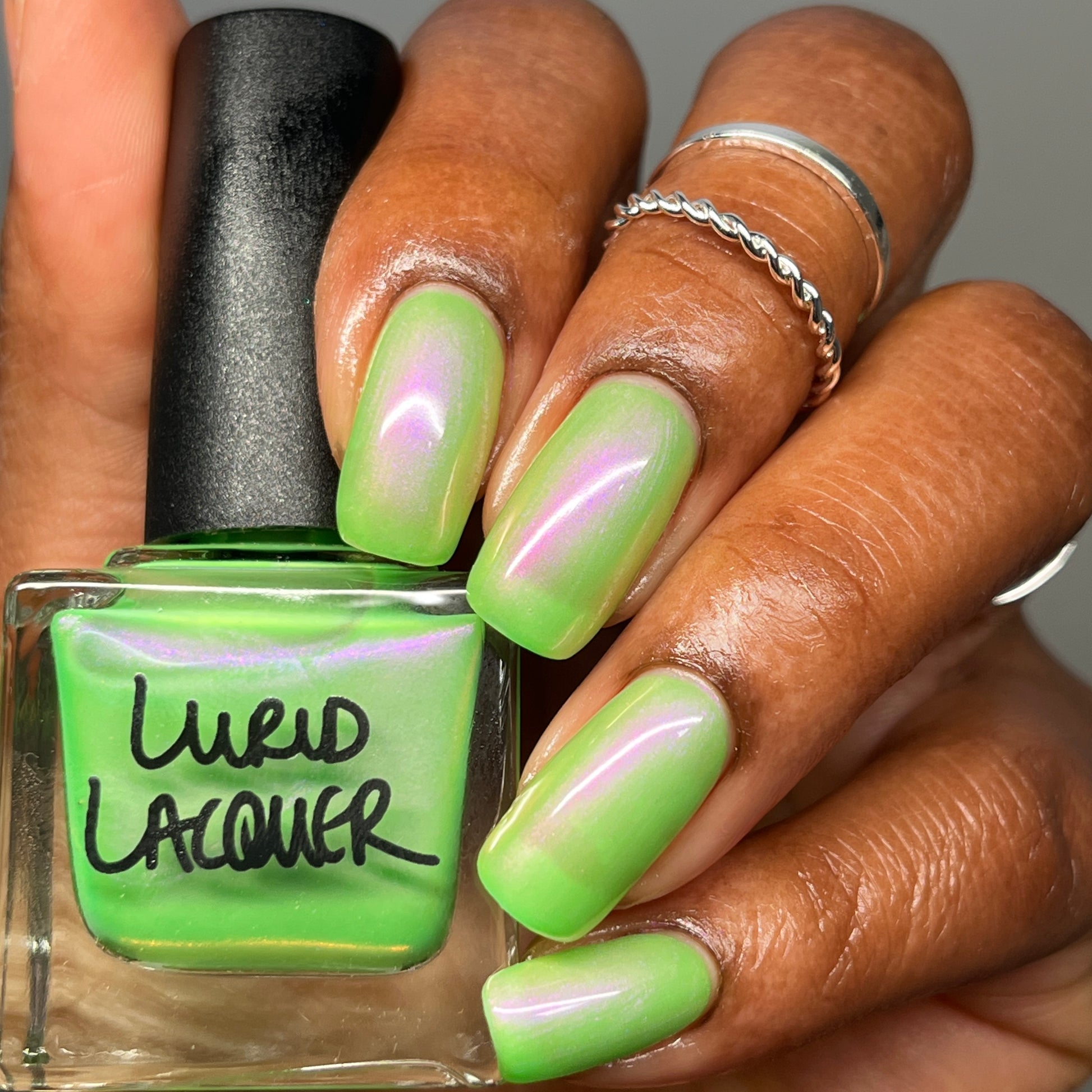 Our swatch photos are intended to give a general impression of the product. Lurid Lacquer polishes are semi-sheer and vary in appearance based on the skin tone and undertone of the person wearing them. We do our best to provide swatches that are both accurate and represent a variety of skin tones and undertones, but screens and monitors vary in how they display images. Our polishes are also handmade in small batches. There may be slight differences across batches. Due to differences in screens/monitors, skin tone/undertone, and batches, the product you receive may not look on you exactly like it does in your favorite swatcher's picture on your screen.