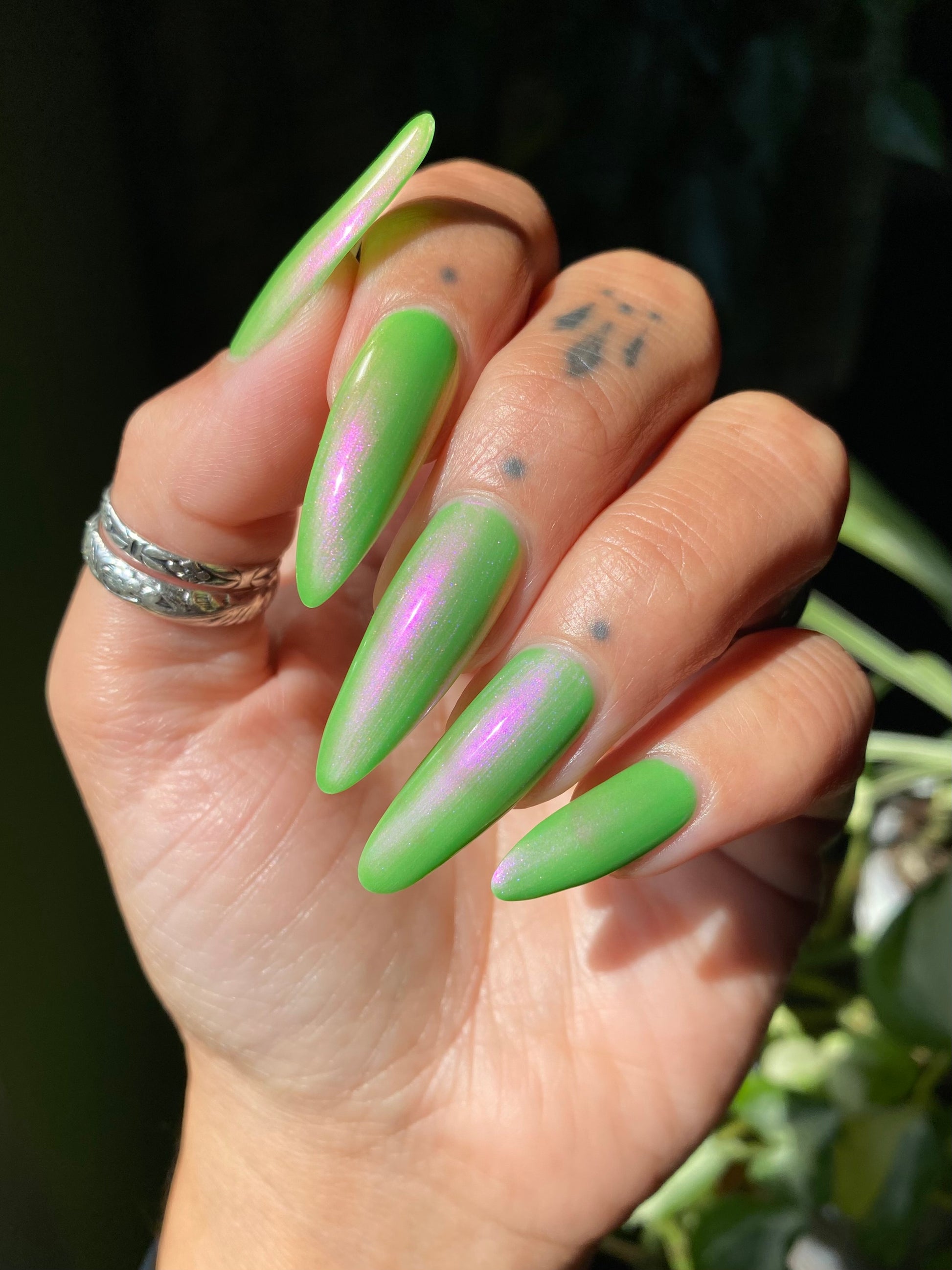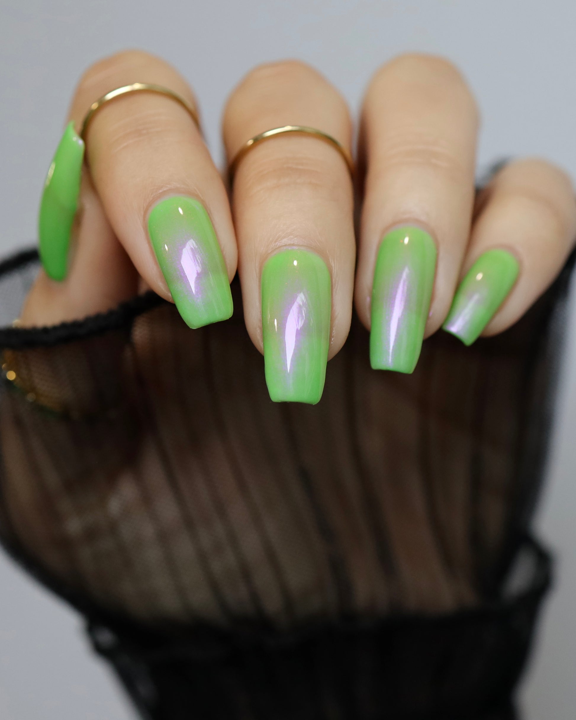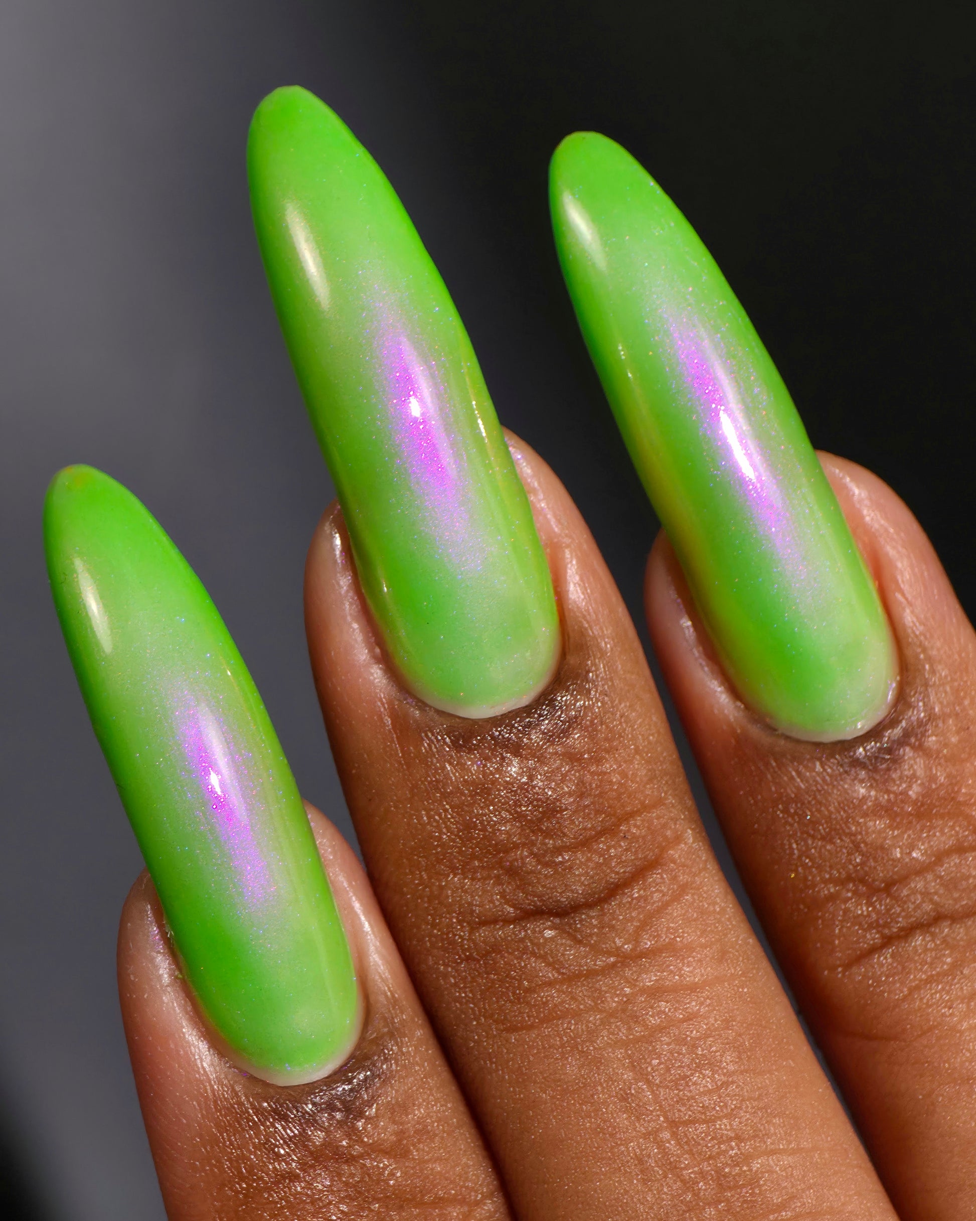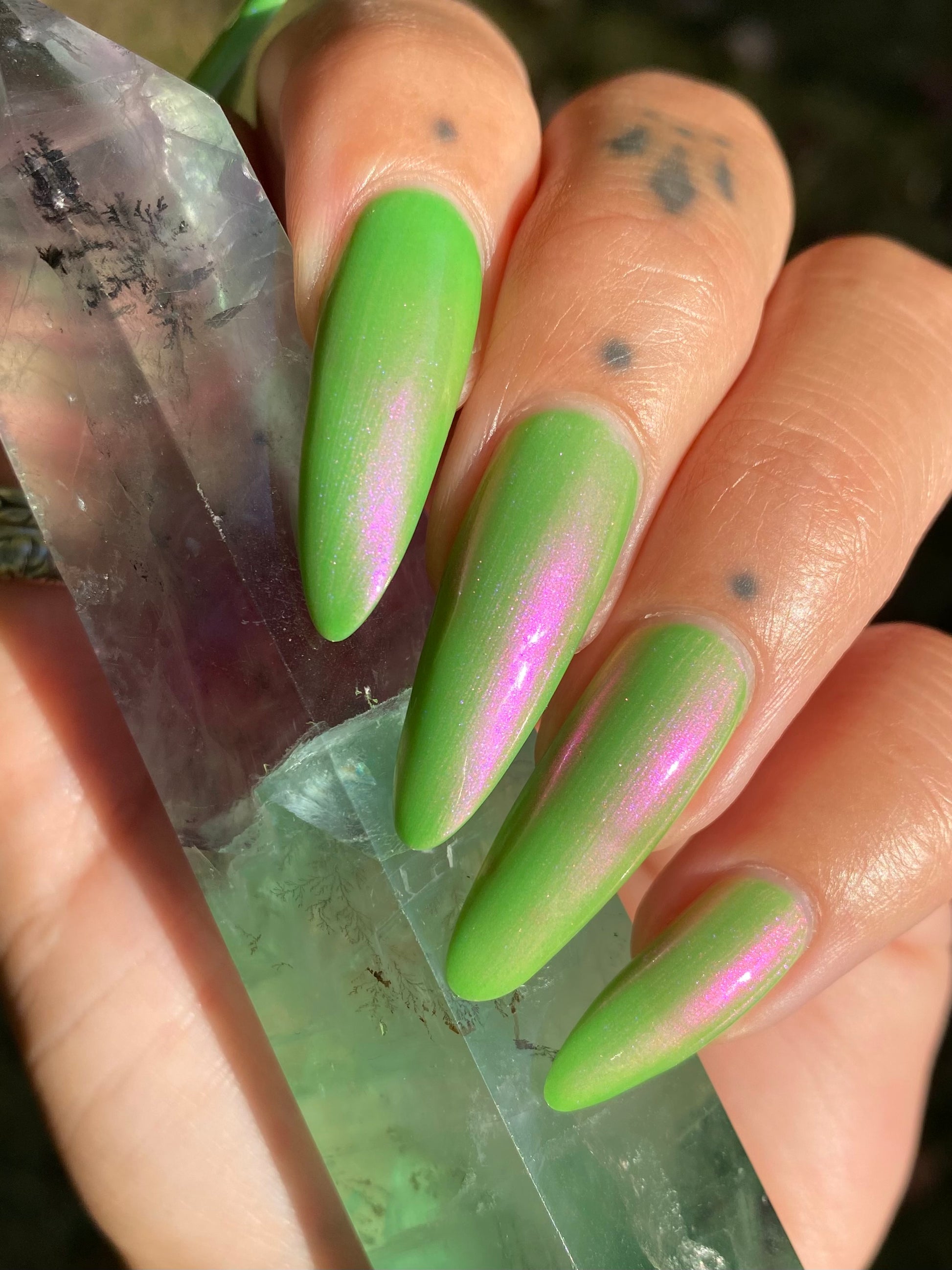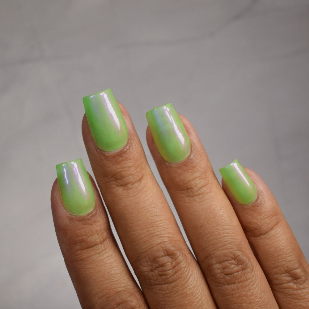 Our swatch photos are intended to give a general impression of the product. Lurid Lacquer polishes are semi-sheer and vary in appearance based on the skin tone and undertone of the person wearing them. We do our best to provide swatches that are both accurate and represent a variety of skin tones and undertones, but screens and monitors vary in how they display images. Our polishes are also handmade in small batches. There may be slight differences across batches. Due to differences in screens/monitors, skin tone/undertone, and batches, the product you receive may not look on you exactly like it does in your favorite swatcher's picture on your screen.
