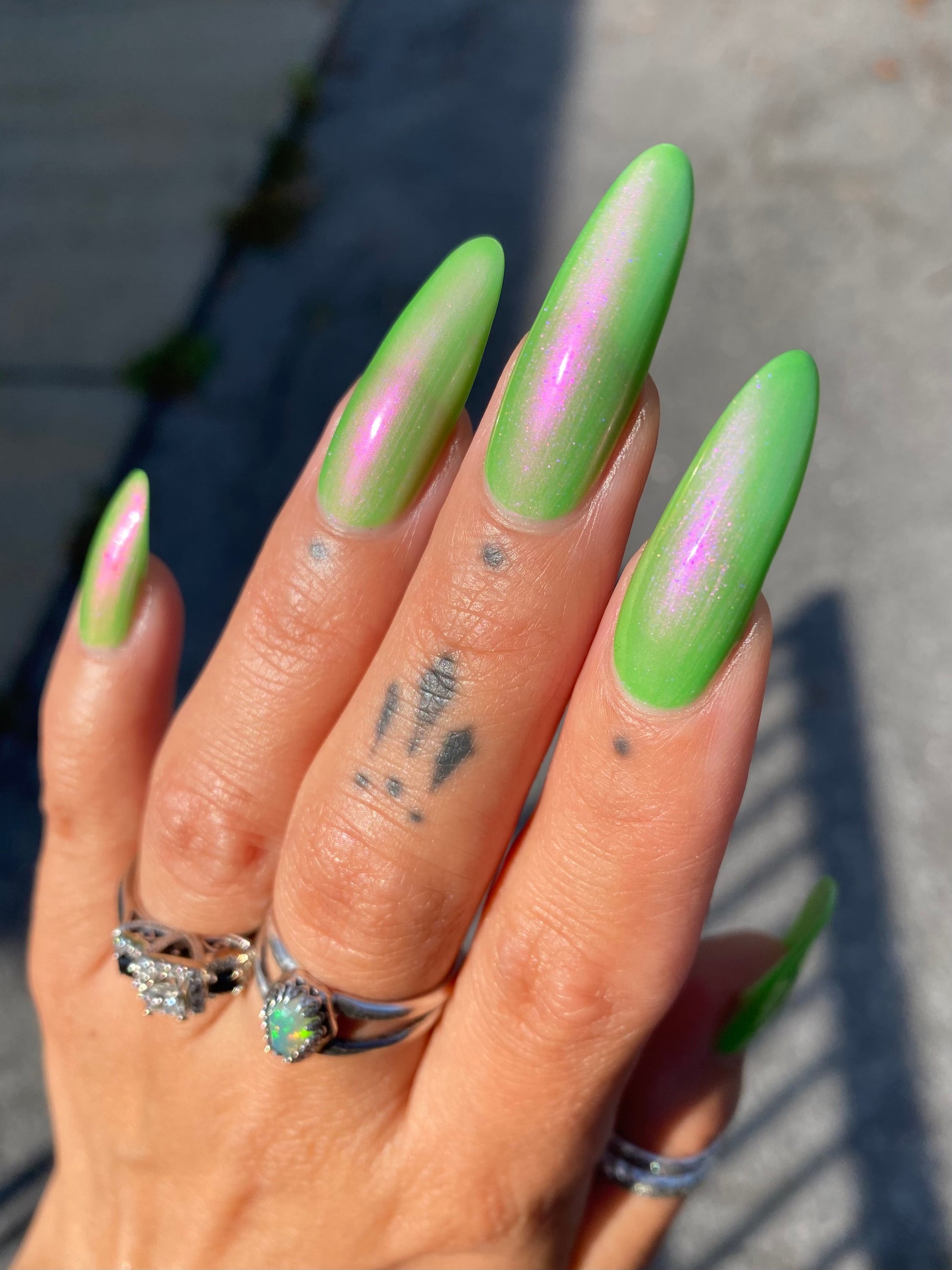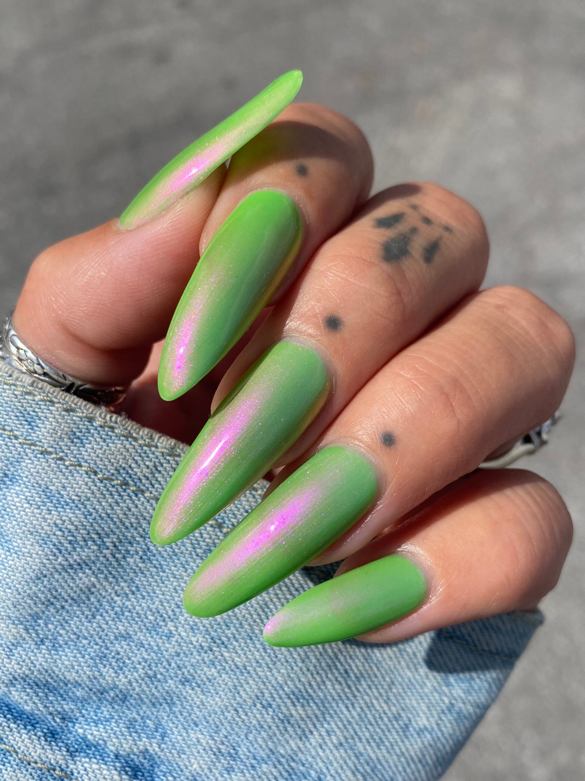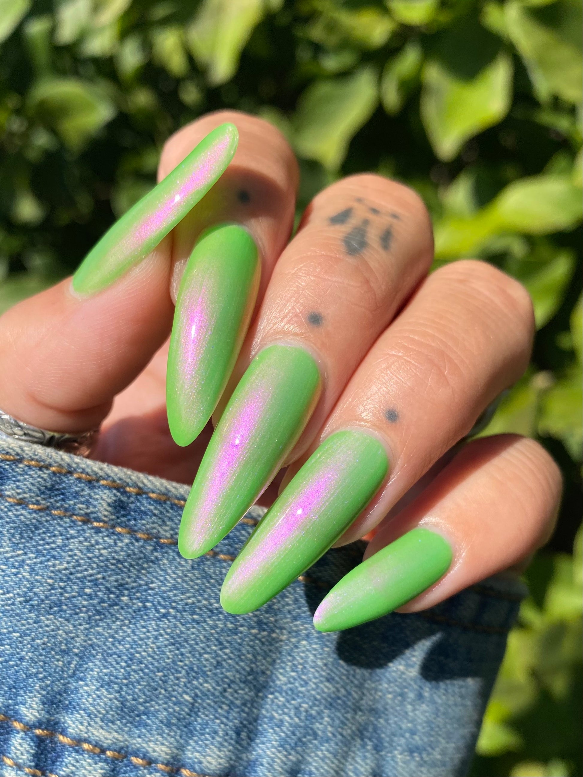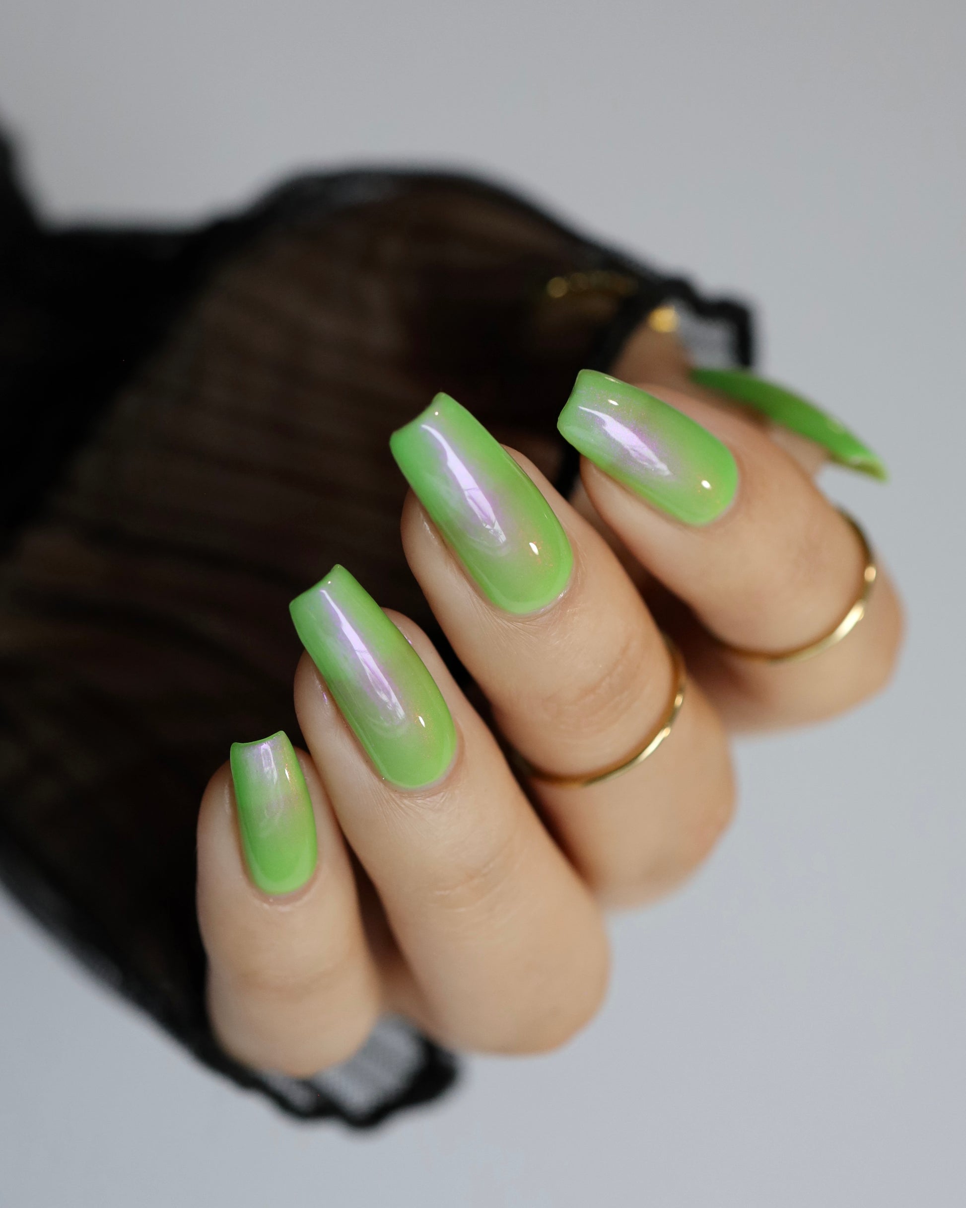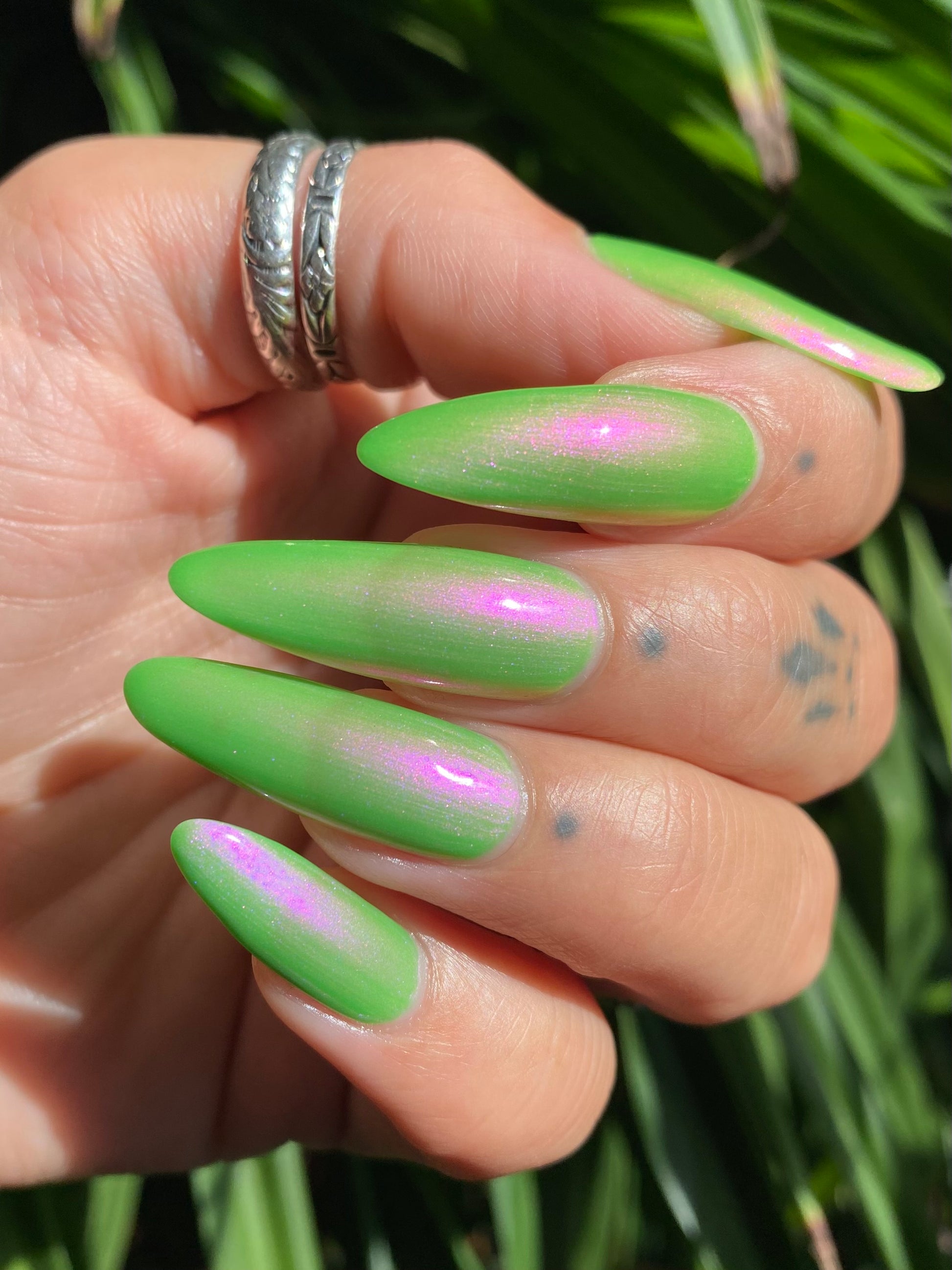 Our swatch photos are intended to give a general impression of the product. Lurid Lacquer polishes are semi-sheer and vary in appearance based on the skin tone and undertone of the person wearing them. We do our best to provide swatches that are both accurate and represent a variety of skin tones and undertones, but screens and monitors vary in how they display images. Our polishes are also handmade in small batches. There may be slight differences across batches. Due to differences in screens/monitors, skin tone/undertone, and batches, the product you receive may not look on you exactly like it does in your favorite swatcher's picture on your screen.