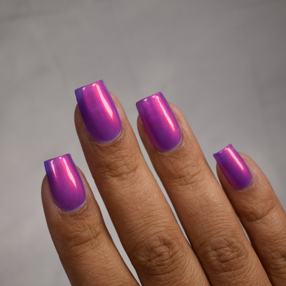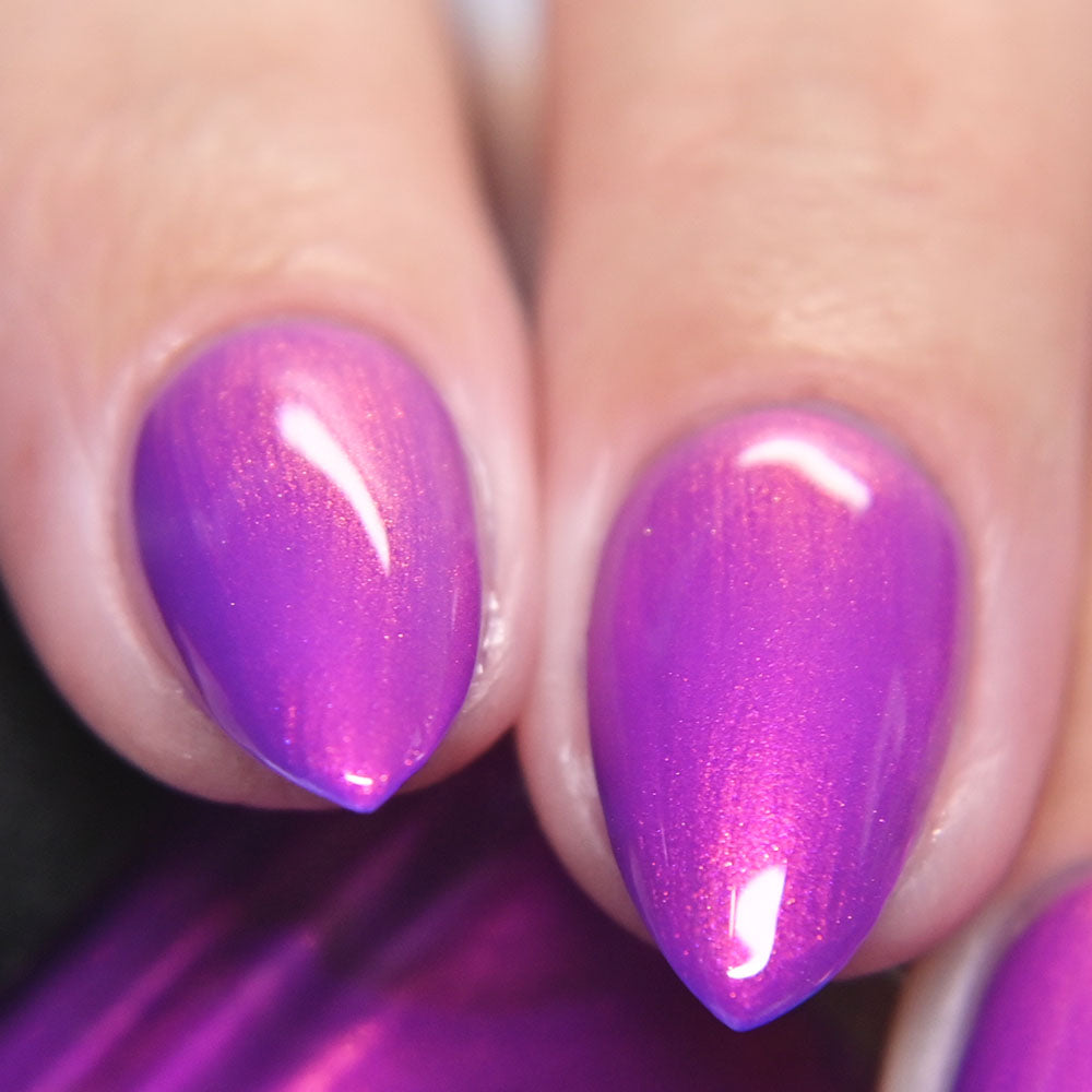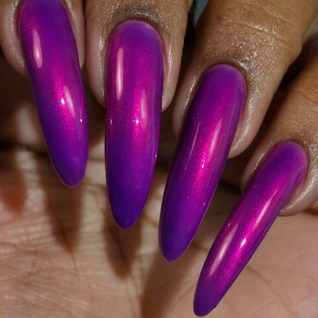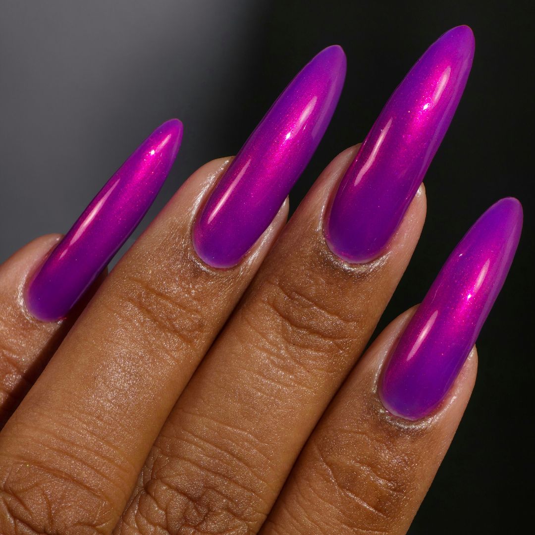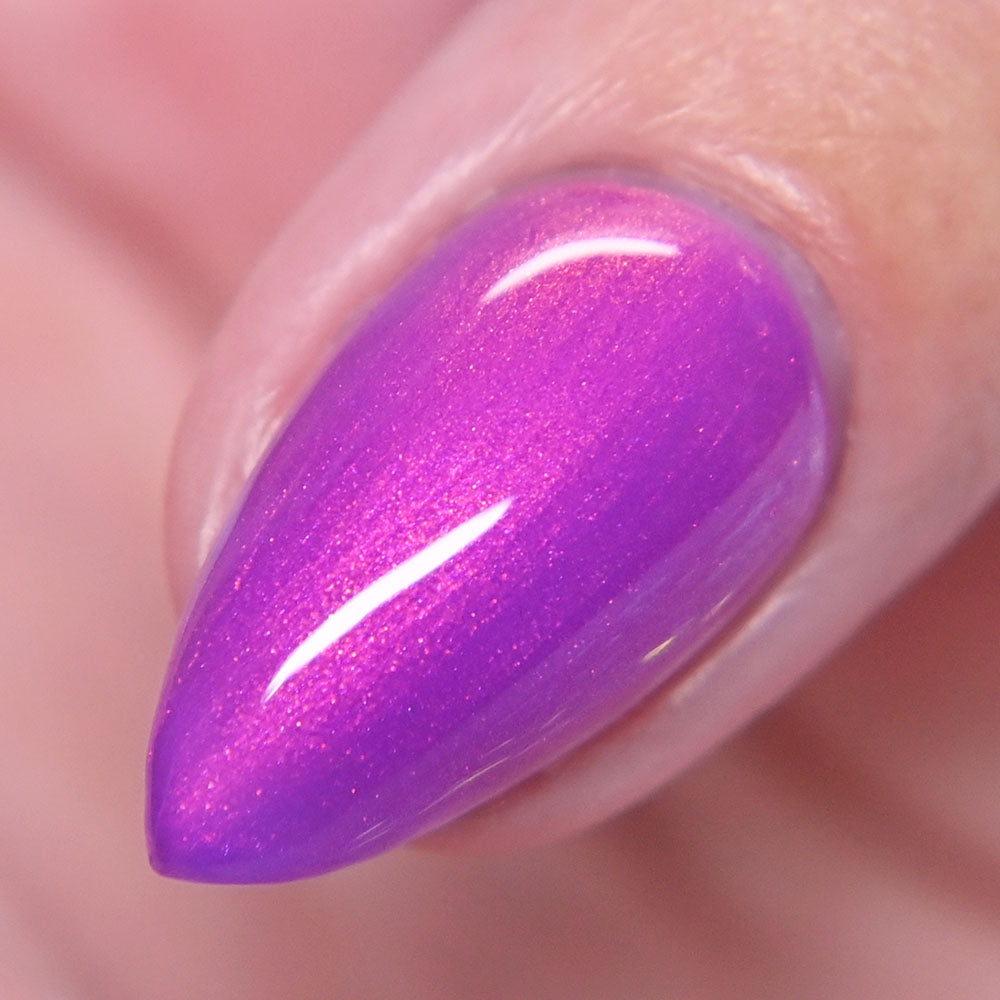 A neon pinkish purple with glowy reddish pink shimmer