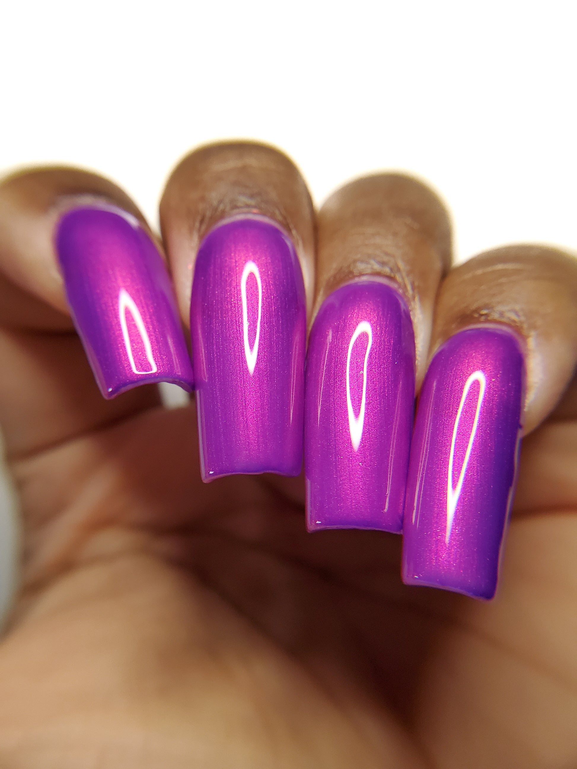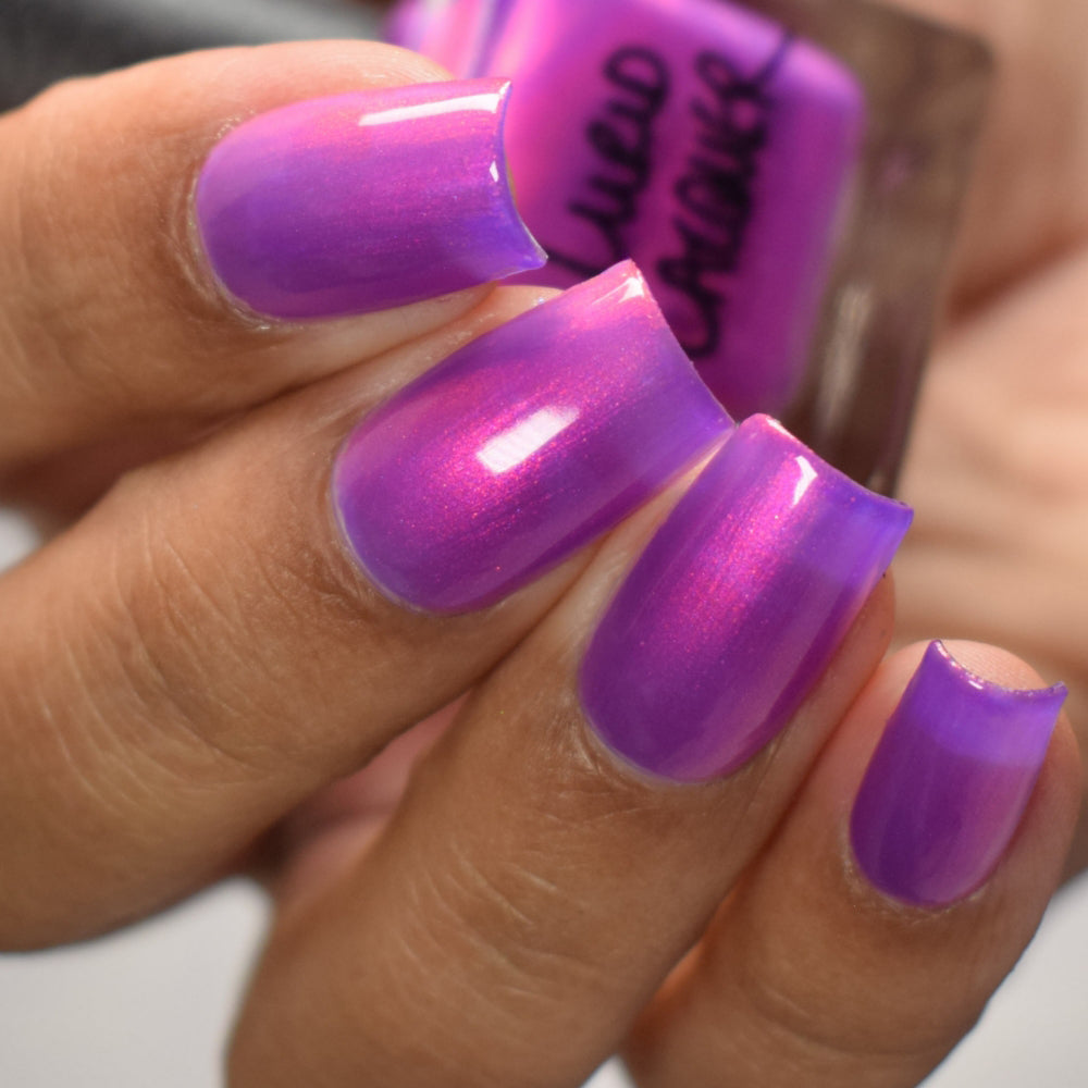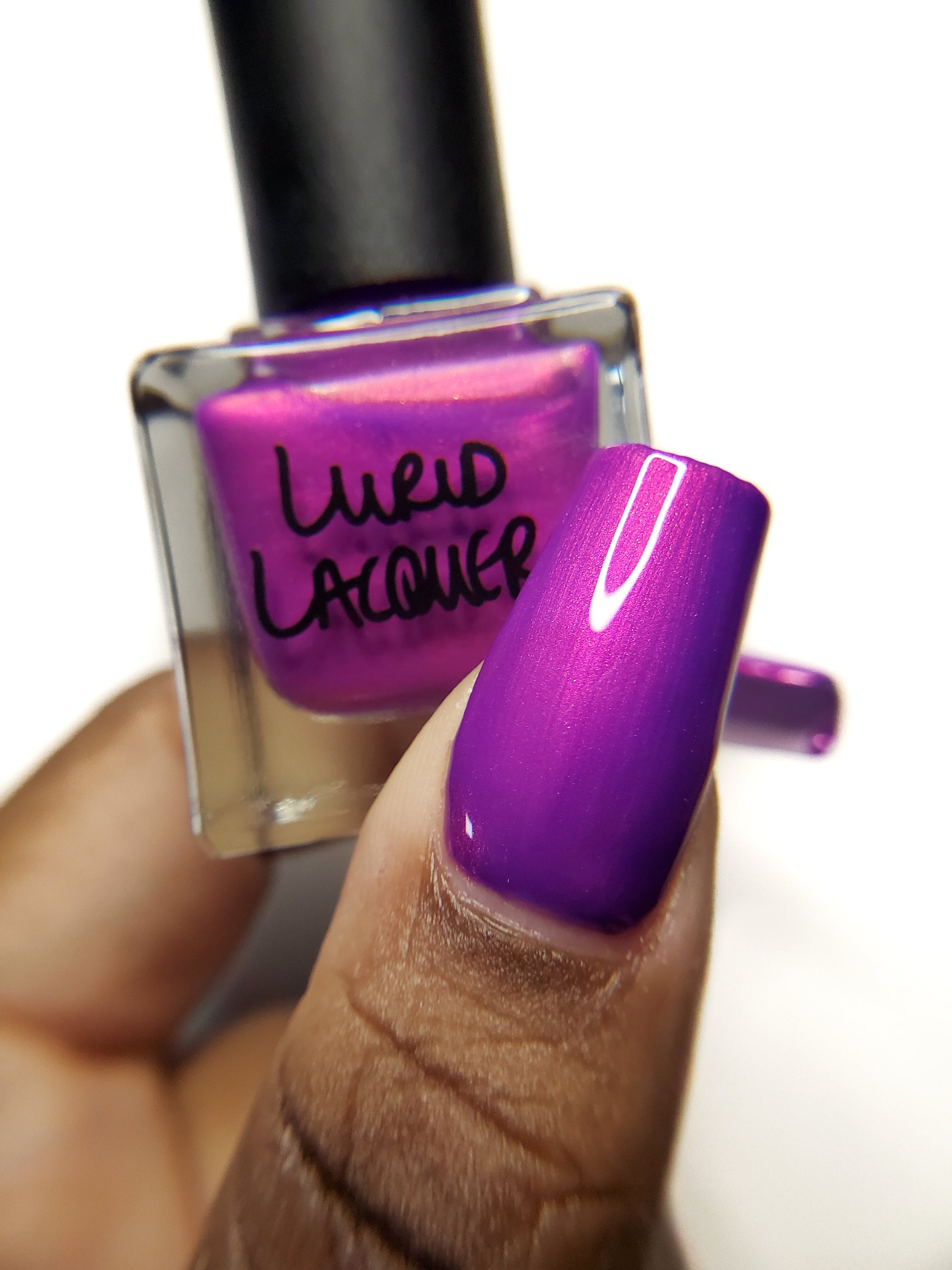 Our swatch photos are intended to give a general impression of the product. Lurid Lacquer polishes are semi-sheer and vary in appearance based on the skin tone and undertone of the person wearing them. We do our best to provide swatches that are both accurate and represent a variety of skin tones and undertones, but screens and monitors vary in how they display images. Our polishes are also handmade in small batches. There may be slight differences across batches. Due to differences in screens/monitors, skin tone/undertone, and batches, the product you receive may not look on you exactly like it does in your favorite swatcher's picture on your screen.
