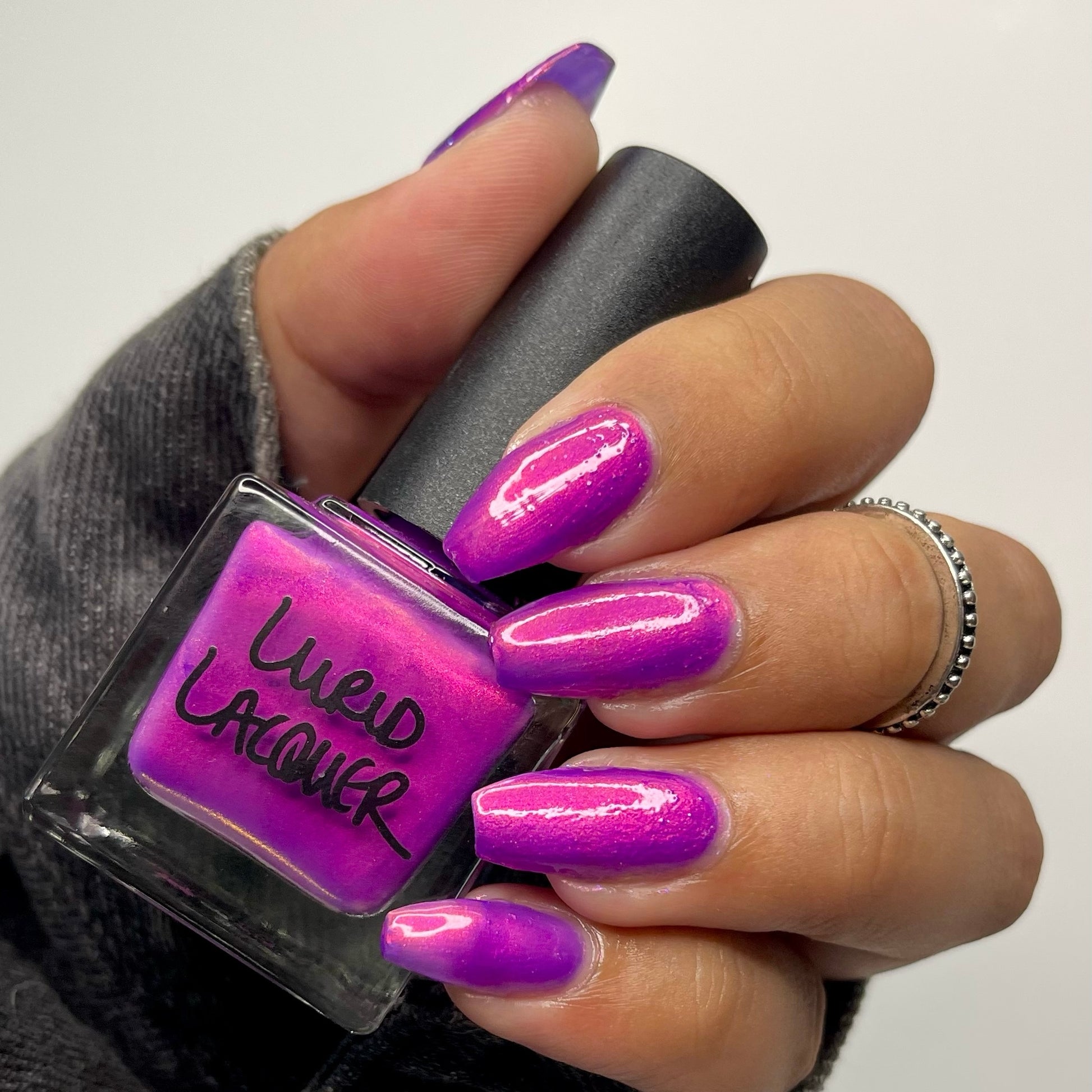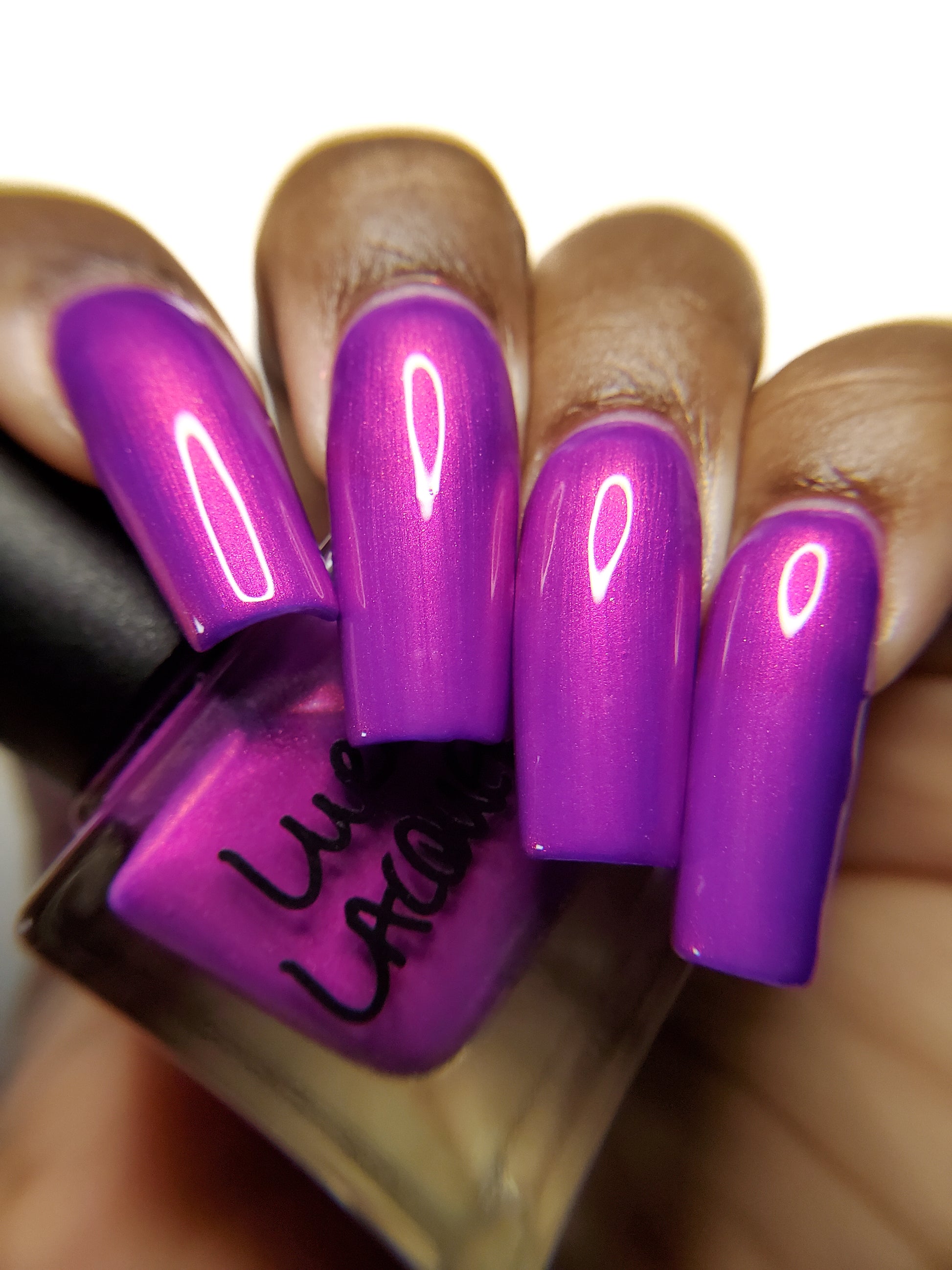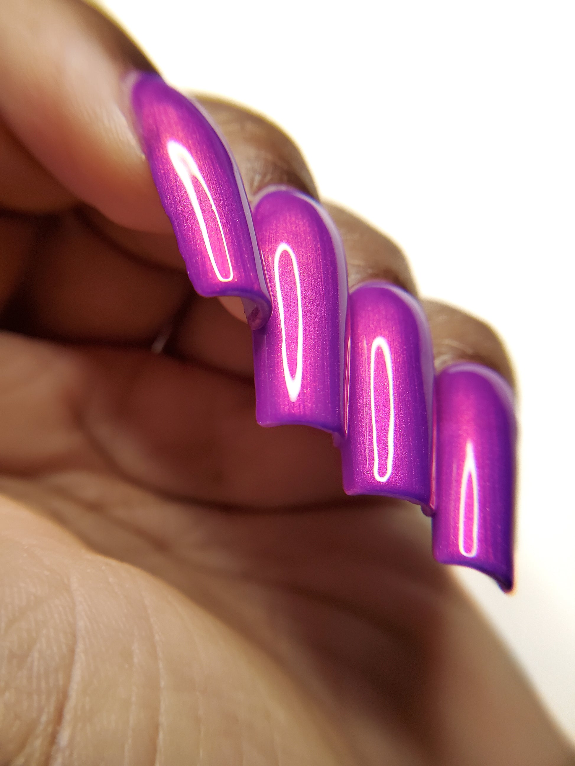 Our swatch photos are intended to give a general impression of the product. Lurid Lacquer polishes are semi-sheer and vary in appearance based on the skin tone and undertone of the person wearing them. We do our best to provide swatches that are both accurate and represent a variety of skin tones and undertones, but screens and monitors vary in how they display images. Our polishes are also handmade in small batches. There may be slight differences across batches. Due to differences in screens/monitors, skin tone/undertone, and batches, the product you receive may not look on you exactly like it does in your favorite swatcher's picture on your screen.