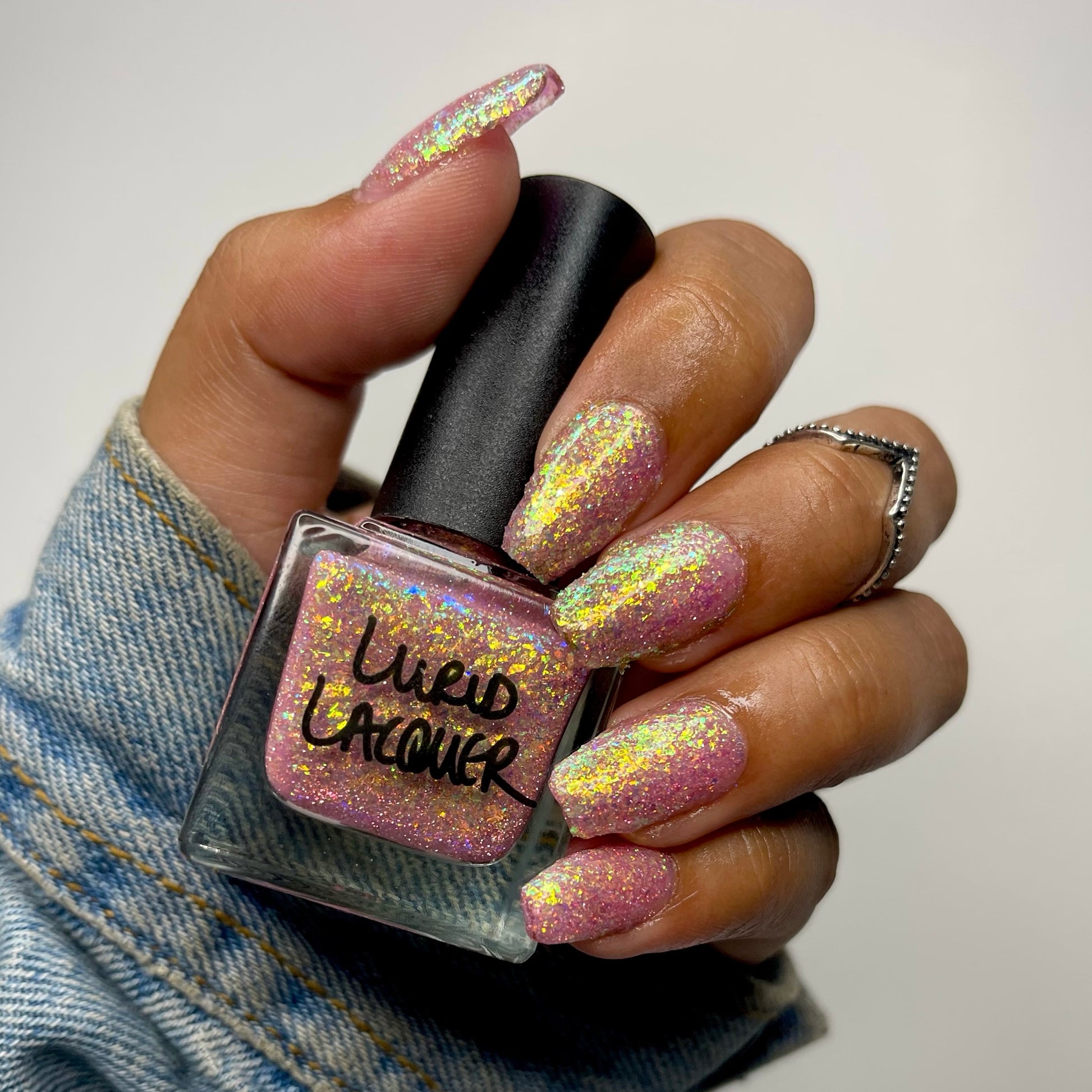Our swatch photos are intended to give a general impression of the product. Lurid Lacquer polishes are semi-sheer and vary in appearance based on the skin tone and undertone of the person wearing them. We do our best to provide swatches that are both accurate and represent a variety of skin tones and undertones, but screens and monitors vary in how they display images. Our polishes are also handmade in small batches. There may be slight differences across batches. Due to differences in screens/monitors, skin tone/undertone, and batches, the product you receive may not look on you exactly like it does in your favorite swatcher's picture on your screen.