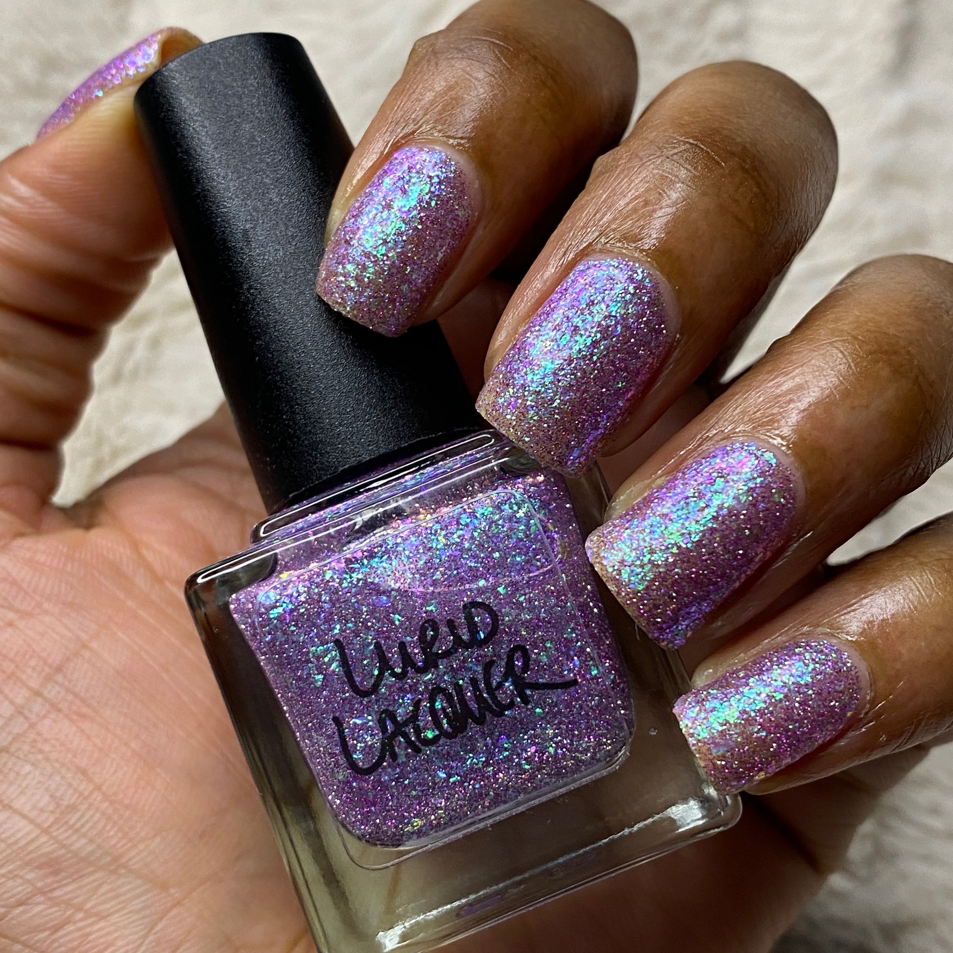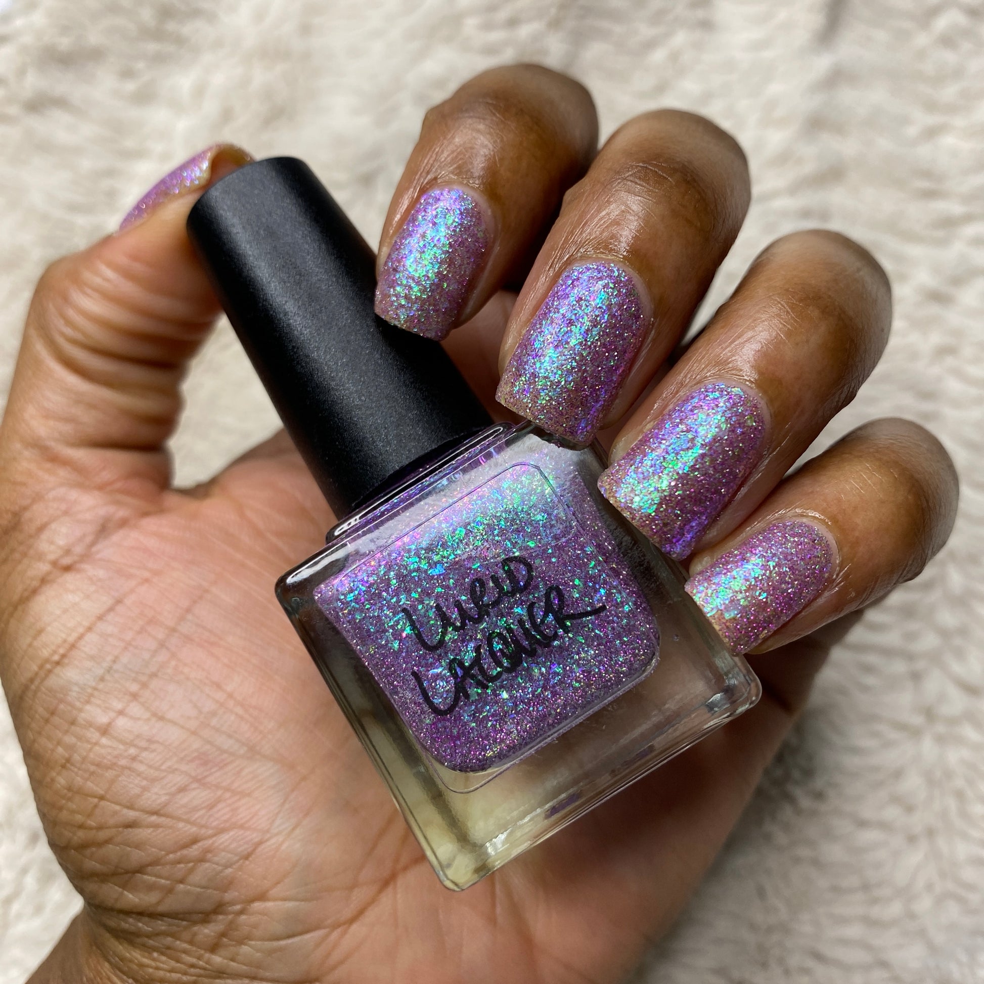 Our swatch photos are intended to give a general impression of the product. Lurid Lacquer polishes are semi-sheer and vary in appearance based on the skintone and undertone of the person wearing them. We do our best to provide swatches that are both accurate and represent a variety of skintones and undertones, but screens and monitors vary in how they display images. Our polishes are also handmade in small batches. There may be slight differences across batches. Due to differences in screens/monitors, skintone/undertone, and batches, the product you receive may not look on you exactly like it does in your favorite swatcher's picture on your screen.