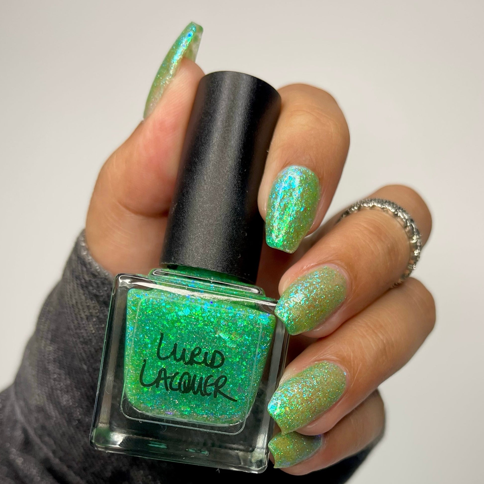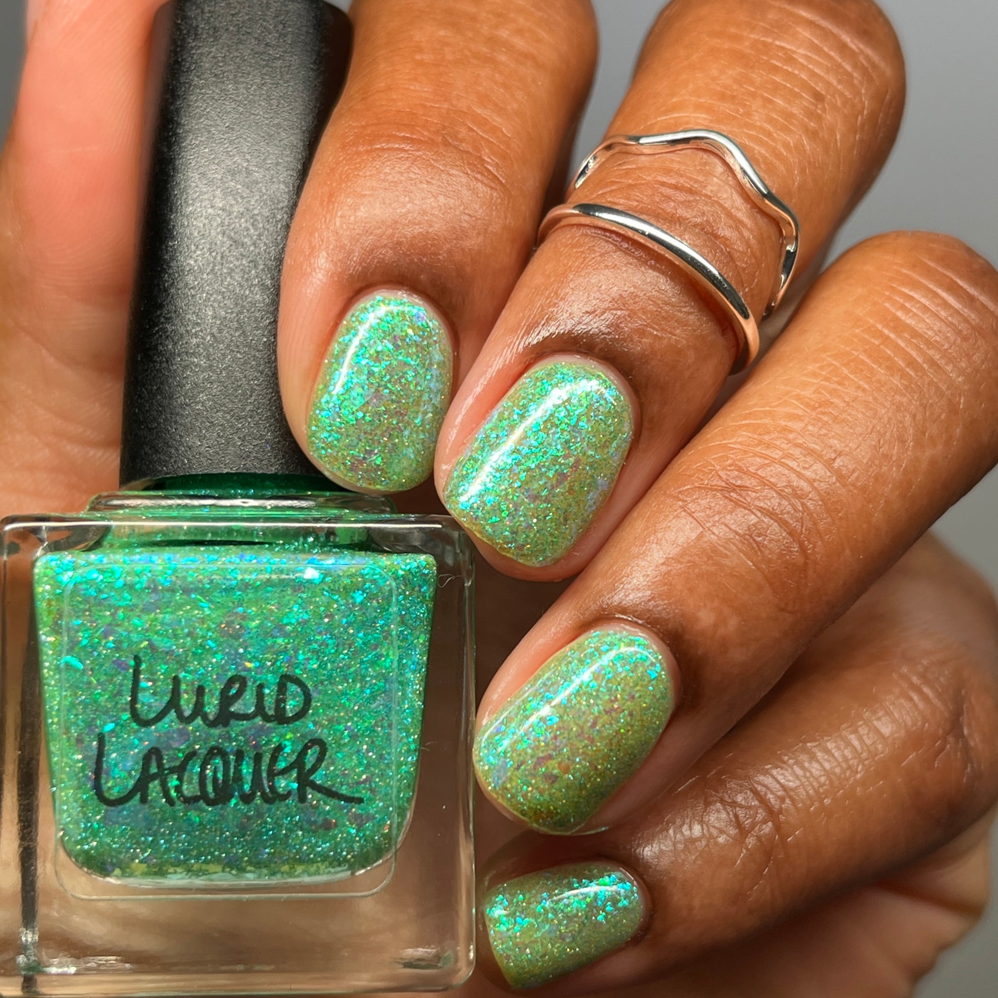 Our swatch photos are intended to give a general impression of the product. Lurid Lacquer polishes are semi-sheer and vary in appearance based on the skin tone and undertone of the person wearing them. We do our best to provide swatches that are both accurate and represent a variety of skin tones and undertones, but screens and monitors vary in how they display images. Our polishes are also handmade in small batches. There may be slight differences across batches. Due to differences in screens/monitors, skin tone/undertone, and batches, the product you receive may not look on you exactly like it does in your favorite swatcher's picture on your screen.