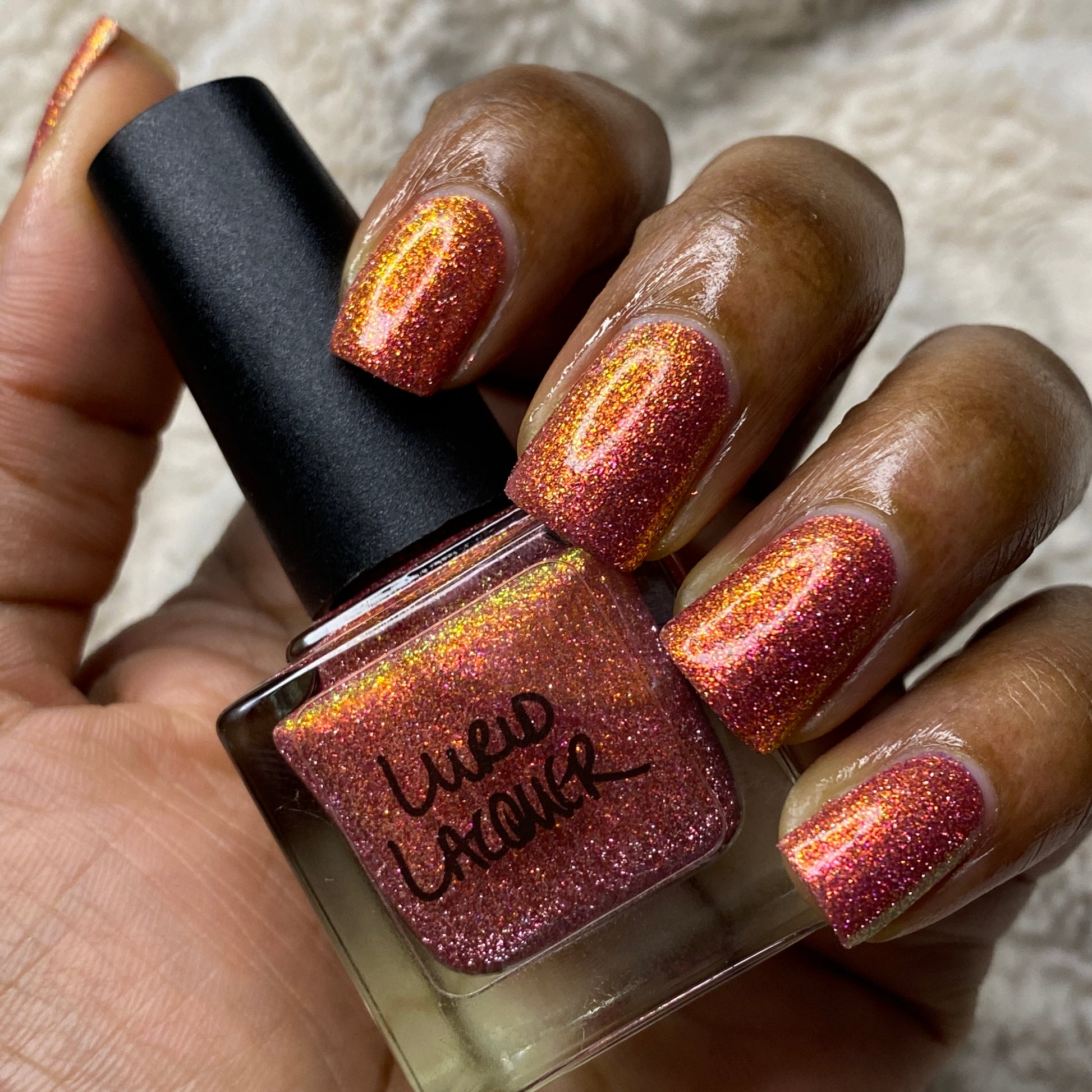 Our swatch photos are intended to give a general impression of the product. Lurid Lacquer polishes are semi-sheer and vary in appearance based on the skintone and undertone of the person wearing them. We do our best to provide swatches that are both accurate and represent a variety of skintones and undertones, but screens and monitors vary in how they display images. Our polishes are also handmade in small batches. There may be slight differences across batches. Due to differences in screens/monitors, skintone/undertone, and batches, the product you receive may not look on you exactly like it does in your favorite swatcher's picture on your screen.