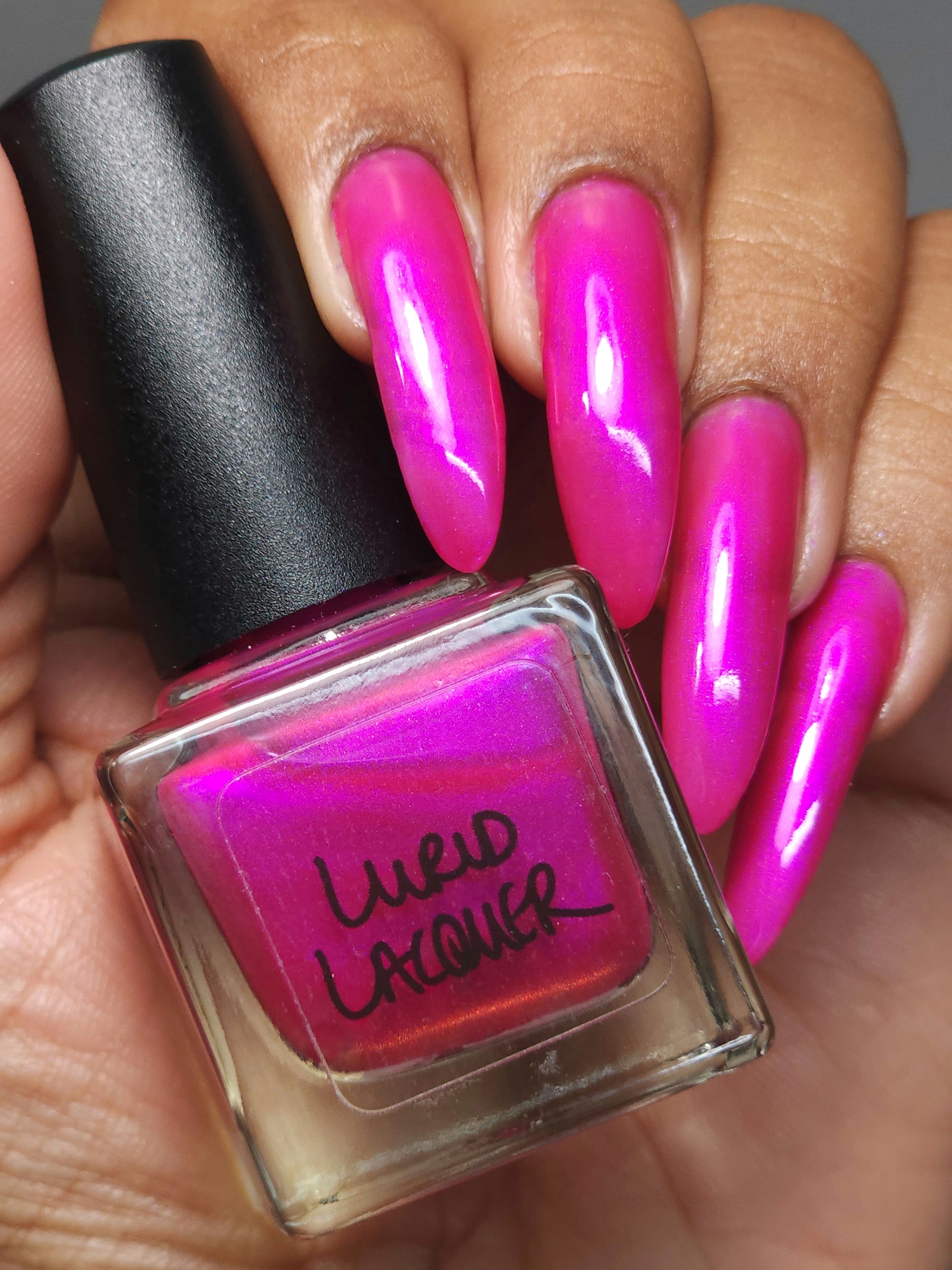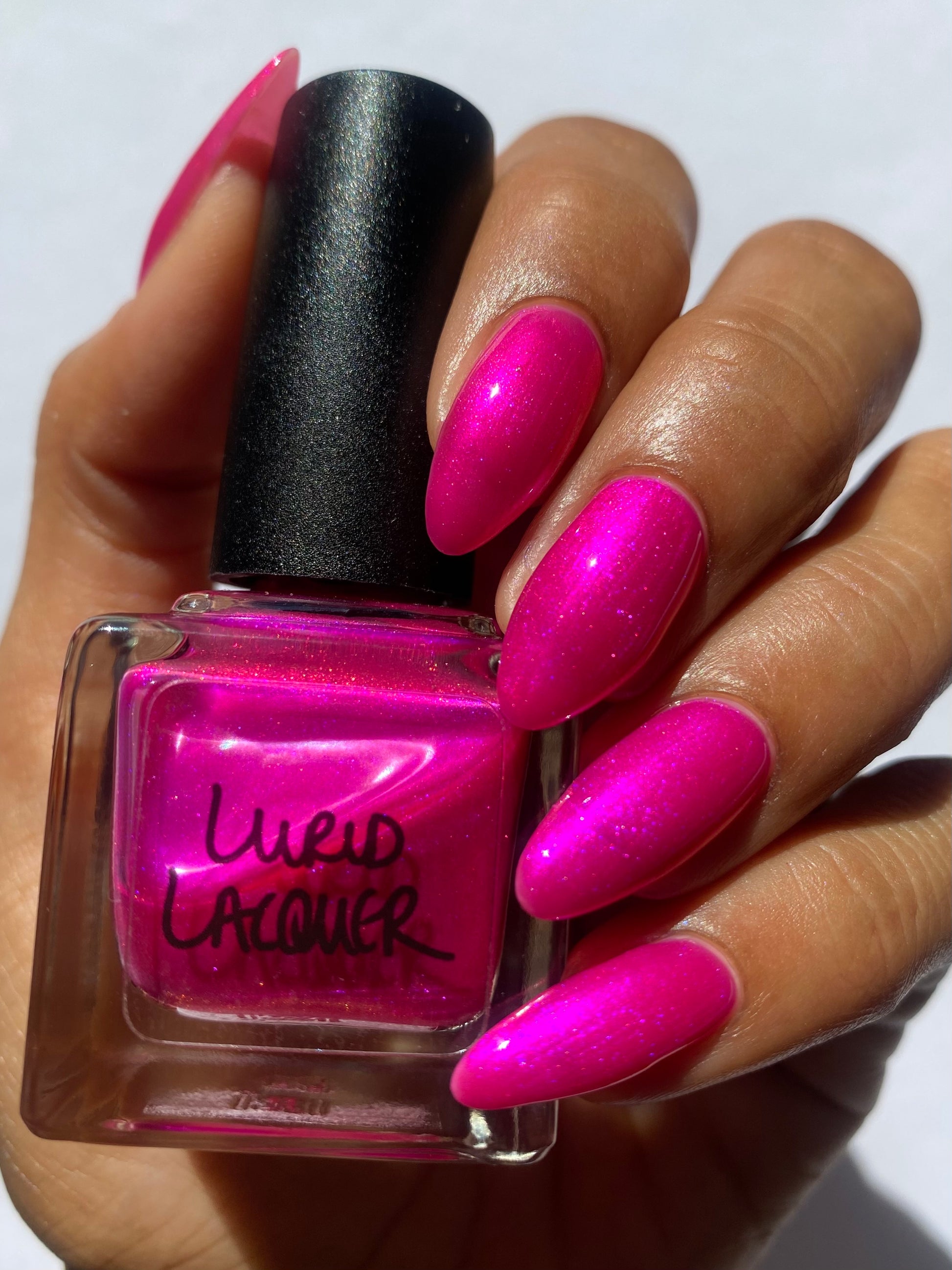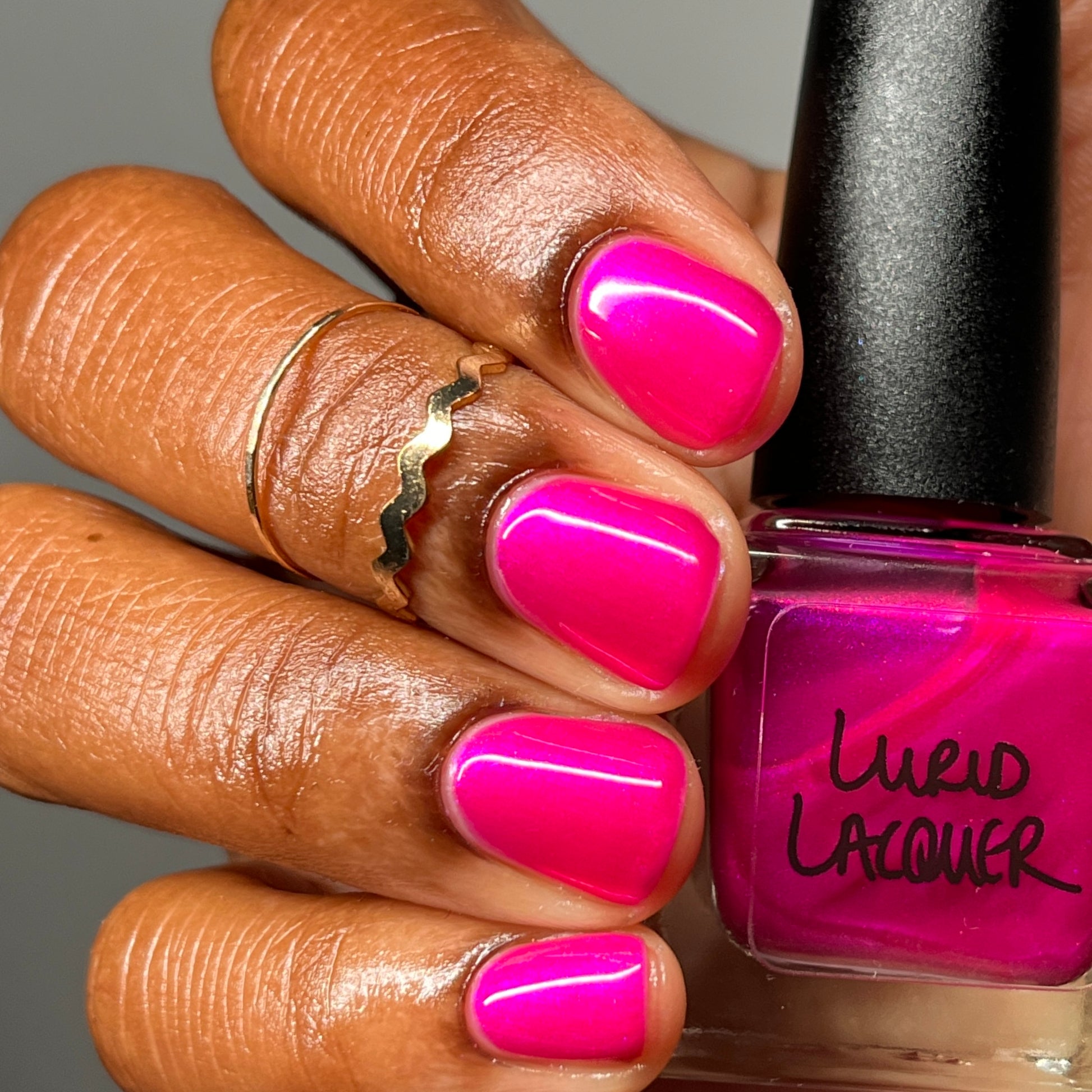 Our swatch photos are intended to give a general impression of the product. Lurid Lacquer polishes are semi-sheer and vary in appearance based on the skin tone and undertone of the person wearing them. We do our best to provide swatches that are both accurate and represent a variety of skin tones and undertones, but screens and monitors vary in how they display images. Our polishes are also handmade in small batches. There may be slight differences across batches. Due to differences in screens/monitors, skin tone/undertone, and batches, the product you receive may not look on you exactly like it does in your favorite swatcher's picture on your screen.