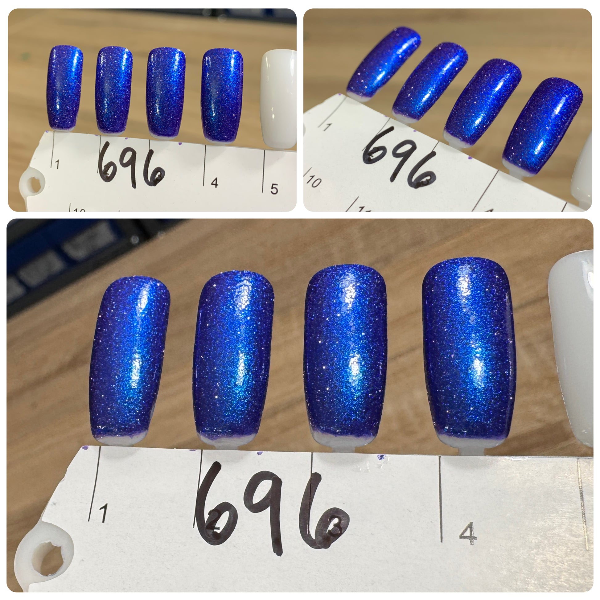 Each picture shows 3 coats with a glossy top coat. The swatch wheel pictures are intended to give a general impression of the polish. Screens and monitors vary.
