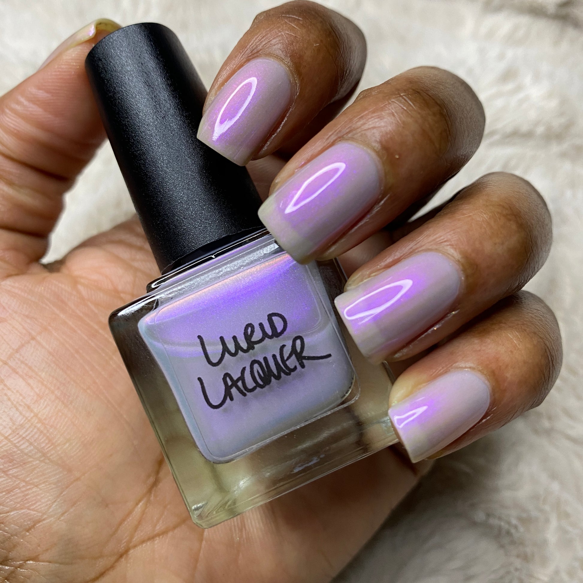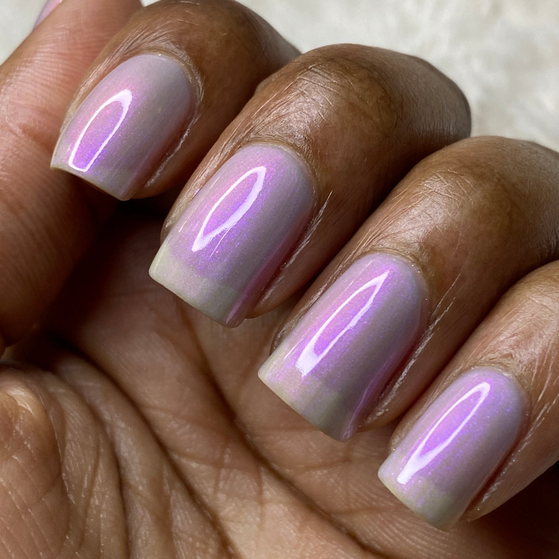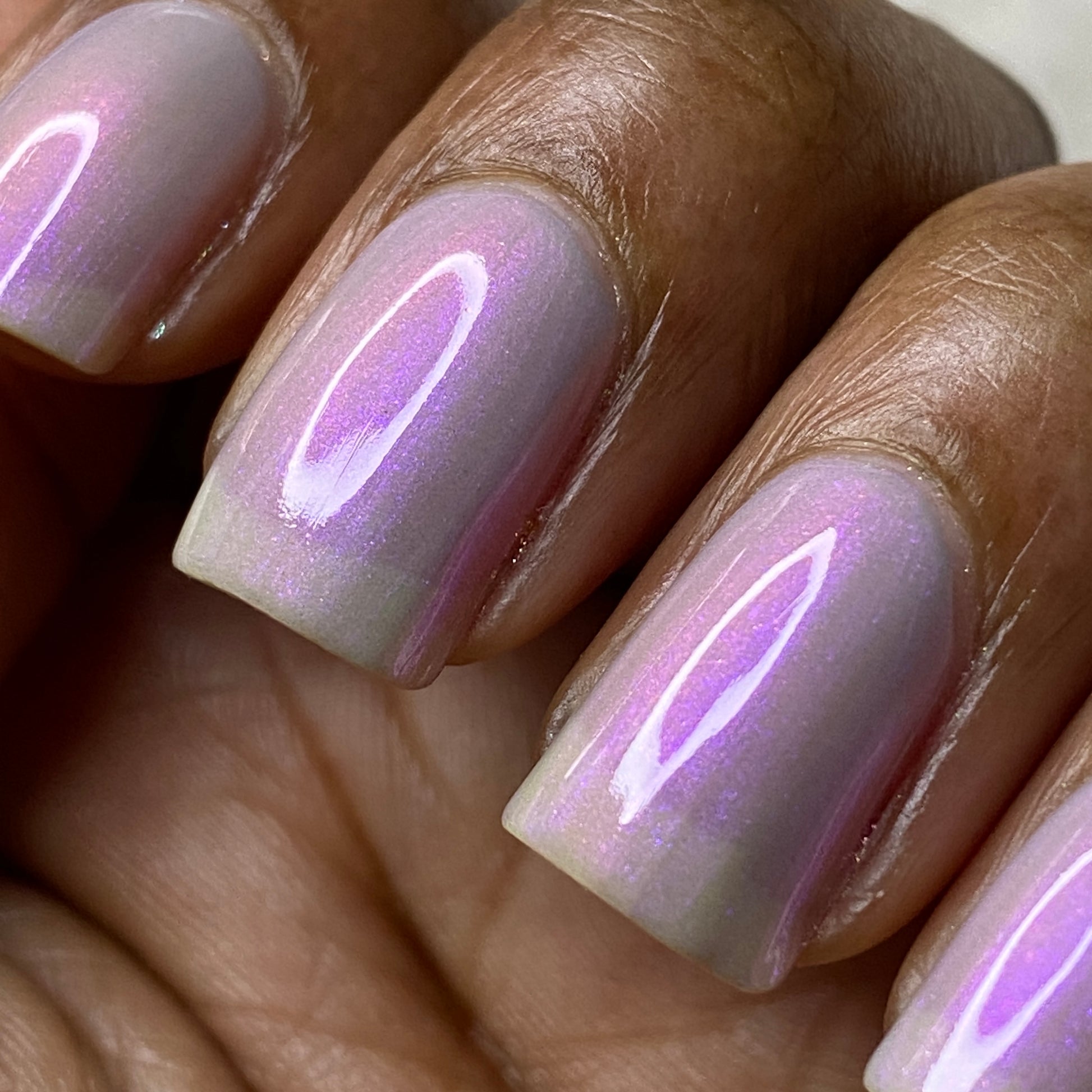 Our swatch photos are intended to give a general impression of the product. Lurid Lacquer polishes are semi-sheer and vary in appearance based on the skintone and undertone of the person wearing them. We do our best to provide swatches that are both accurate and represent a variety of skintones and undertones, but screens and monitors vary in how they display images. Our polishes are also handmade in small batches. There may be slight differences across batches. Due to differences in screens/monitors, skintone/undertone, and batches, the product you receive may not look on you exactly like it does in your favorite swatcher's picture on your screen.
