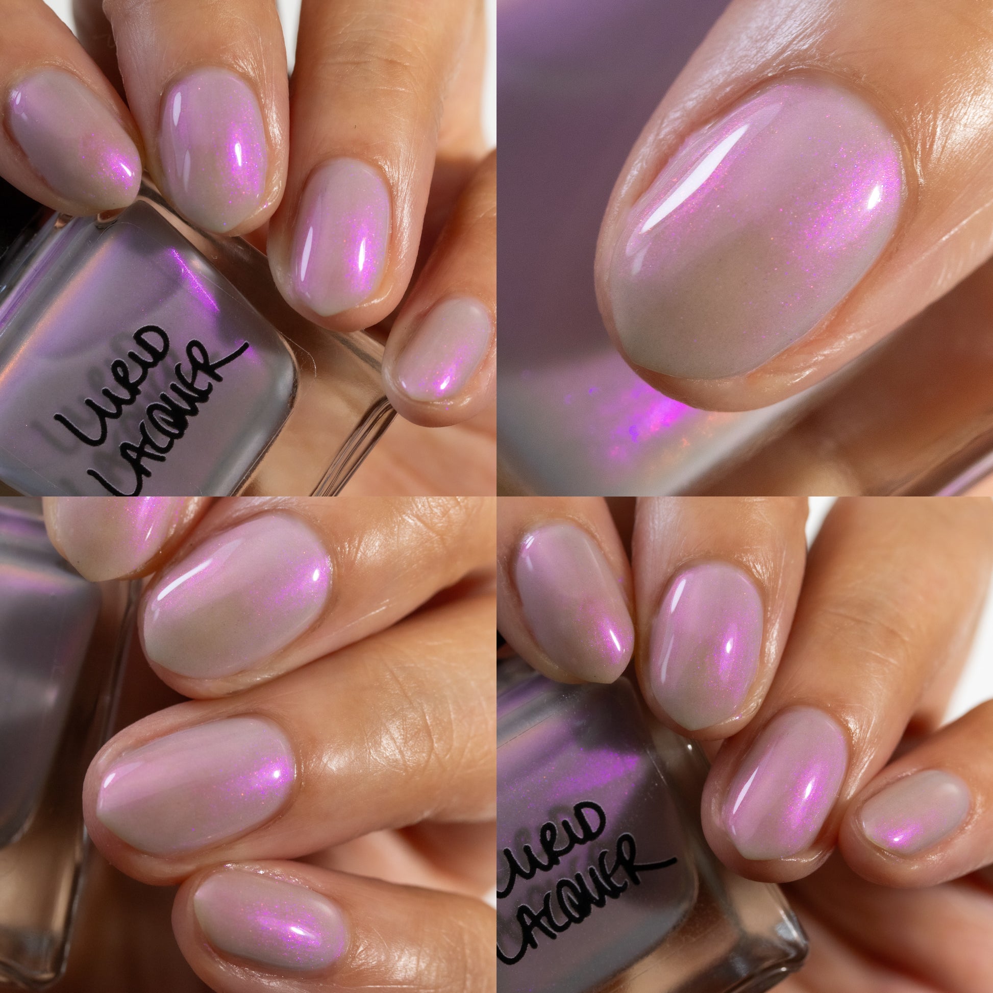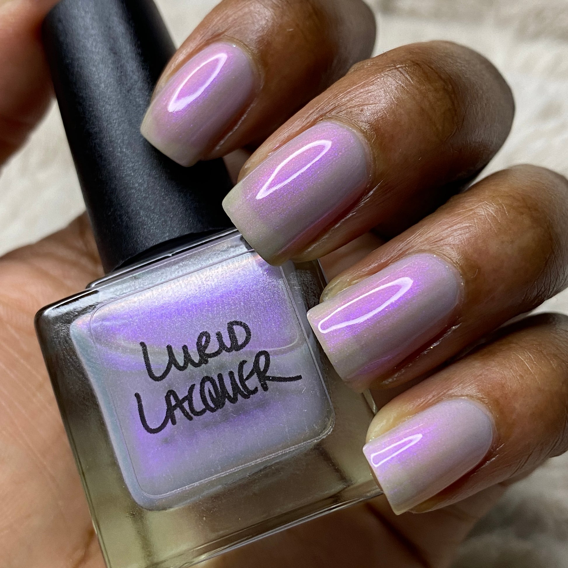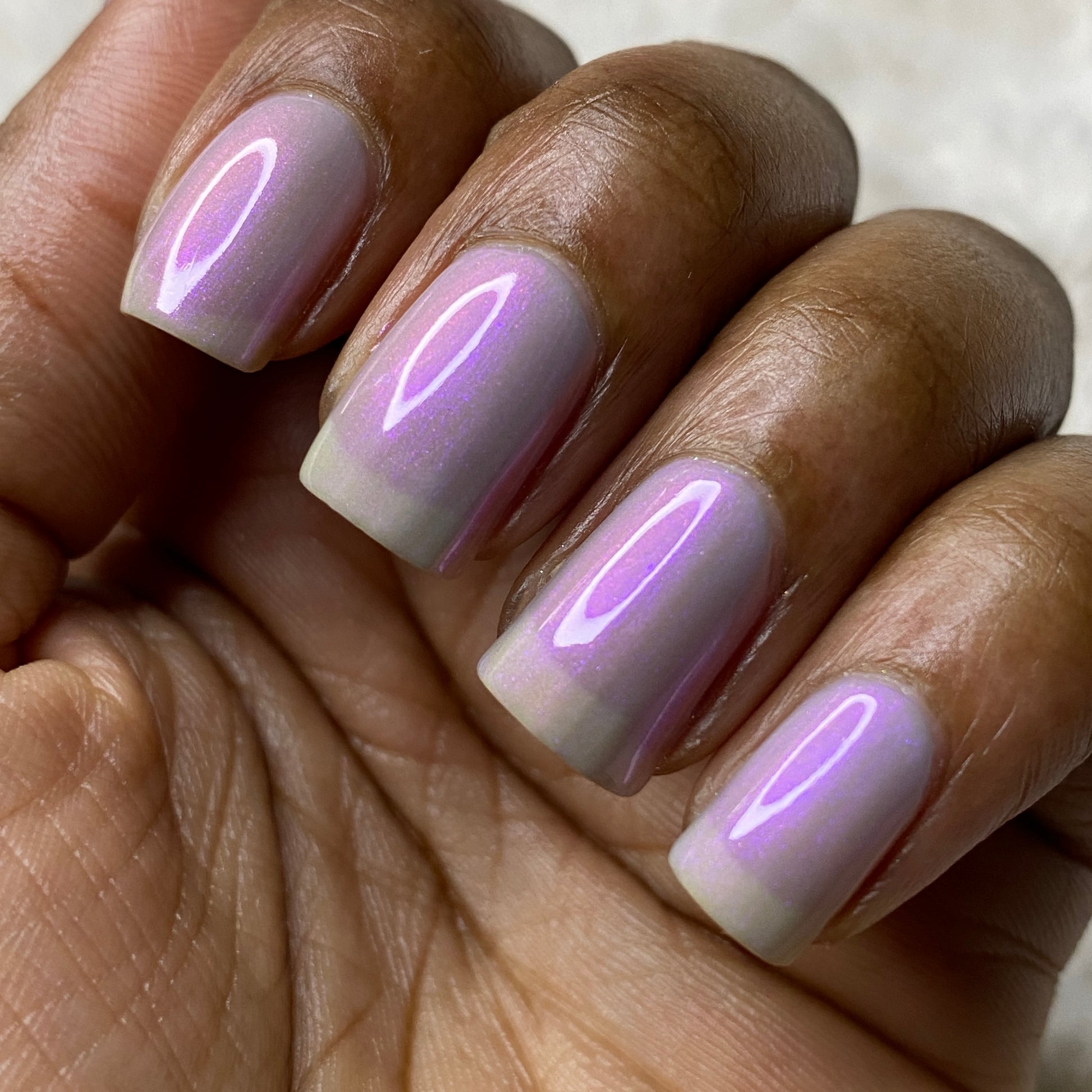 Our swatch photos are intended to give a general impression of the product. Lurid Lacquer polishes are semi-sheer and vary in appearance based on the skintone and undertone of the person wearing them. We do our best to provide swatches that are both accurate and represent a variety of skintones and undertones, but screens and monitors vary in how they display images. Our polishes are also handmade in small batches. There may be slight differences across batches. Due to differences in screens/monitors, skintone/undertone, and batches, the product you receive may not look on you exactly like it does in your favorite swatcher's picture on your screen.