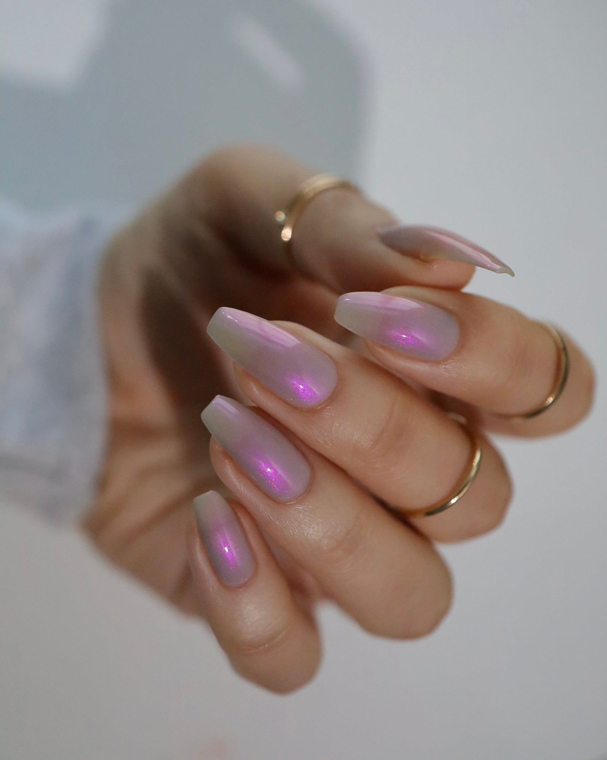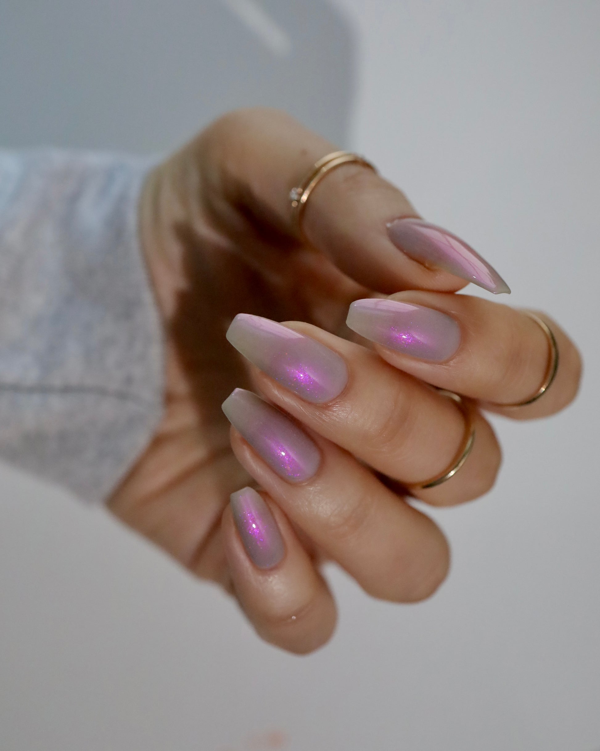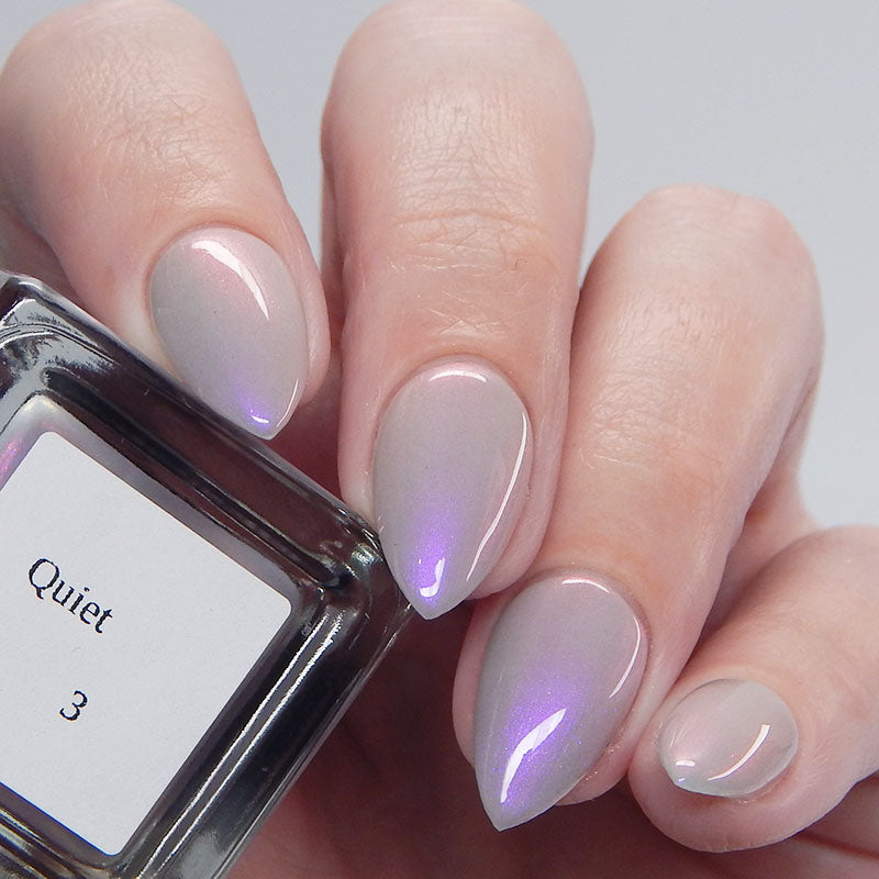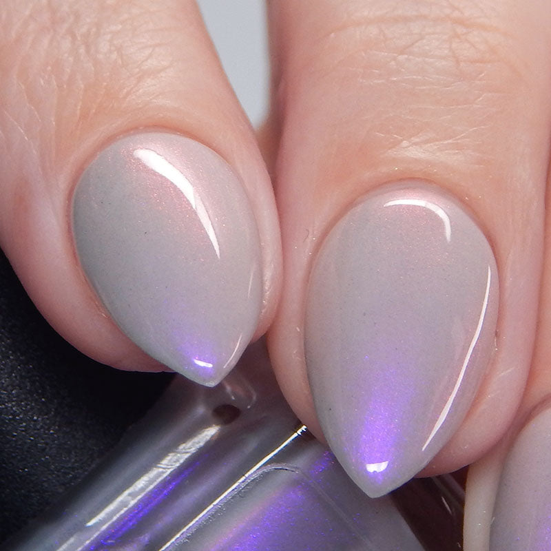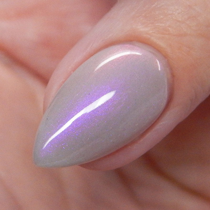 A soft gray base with purple to pink to red shimmer