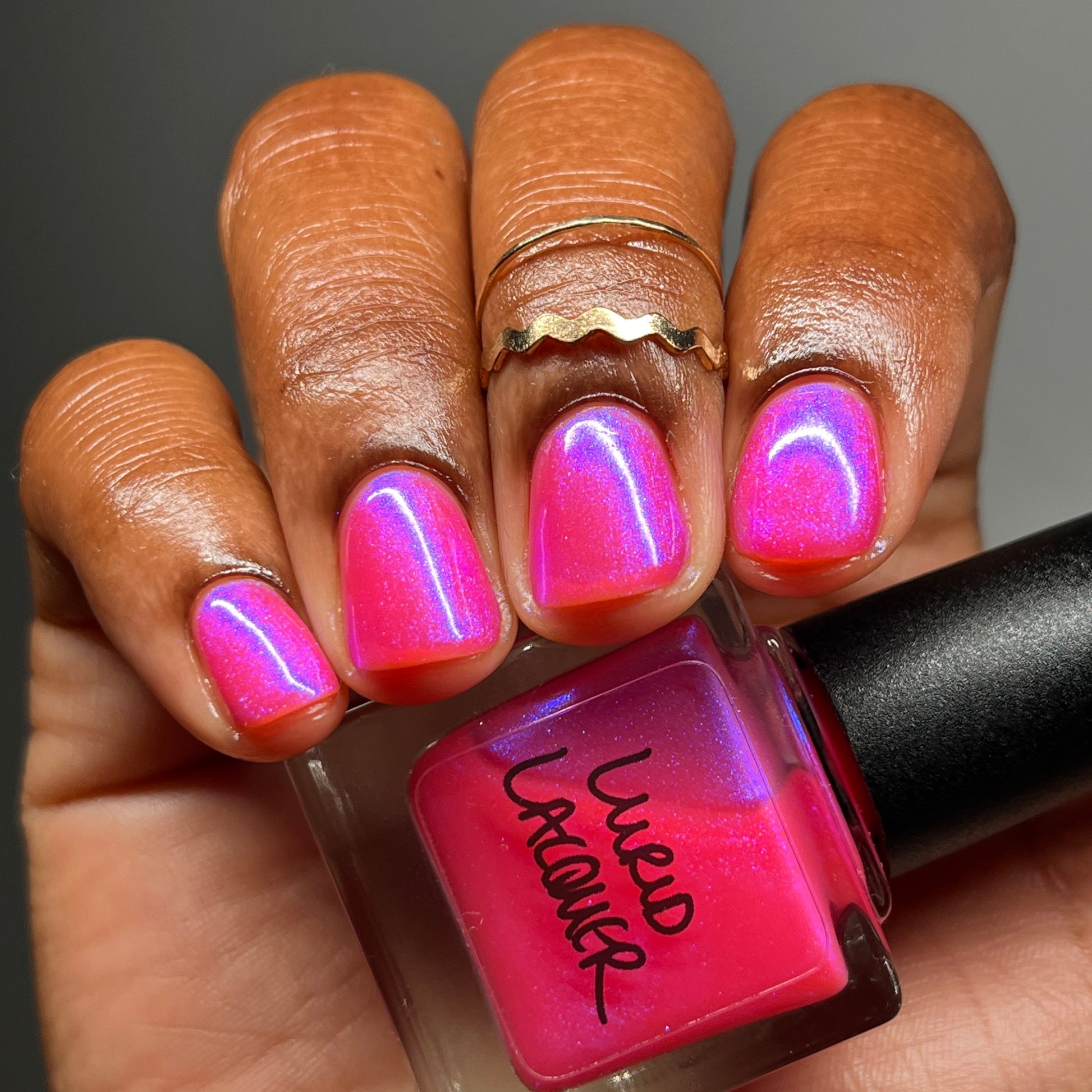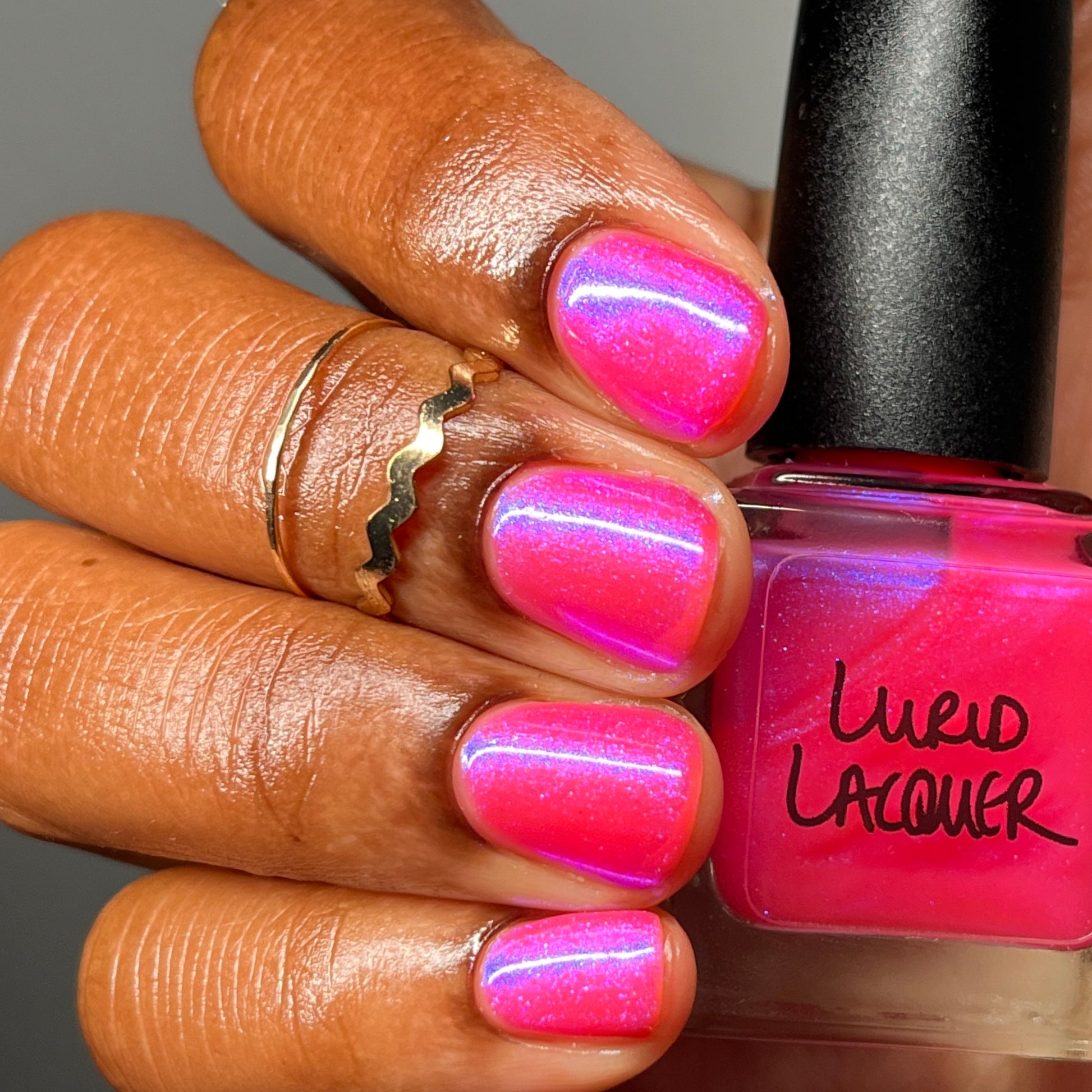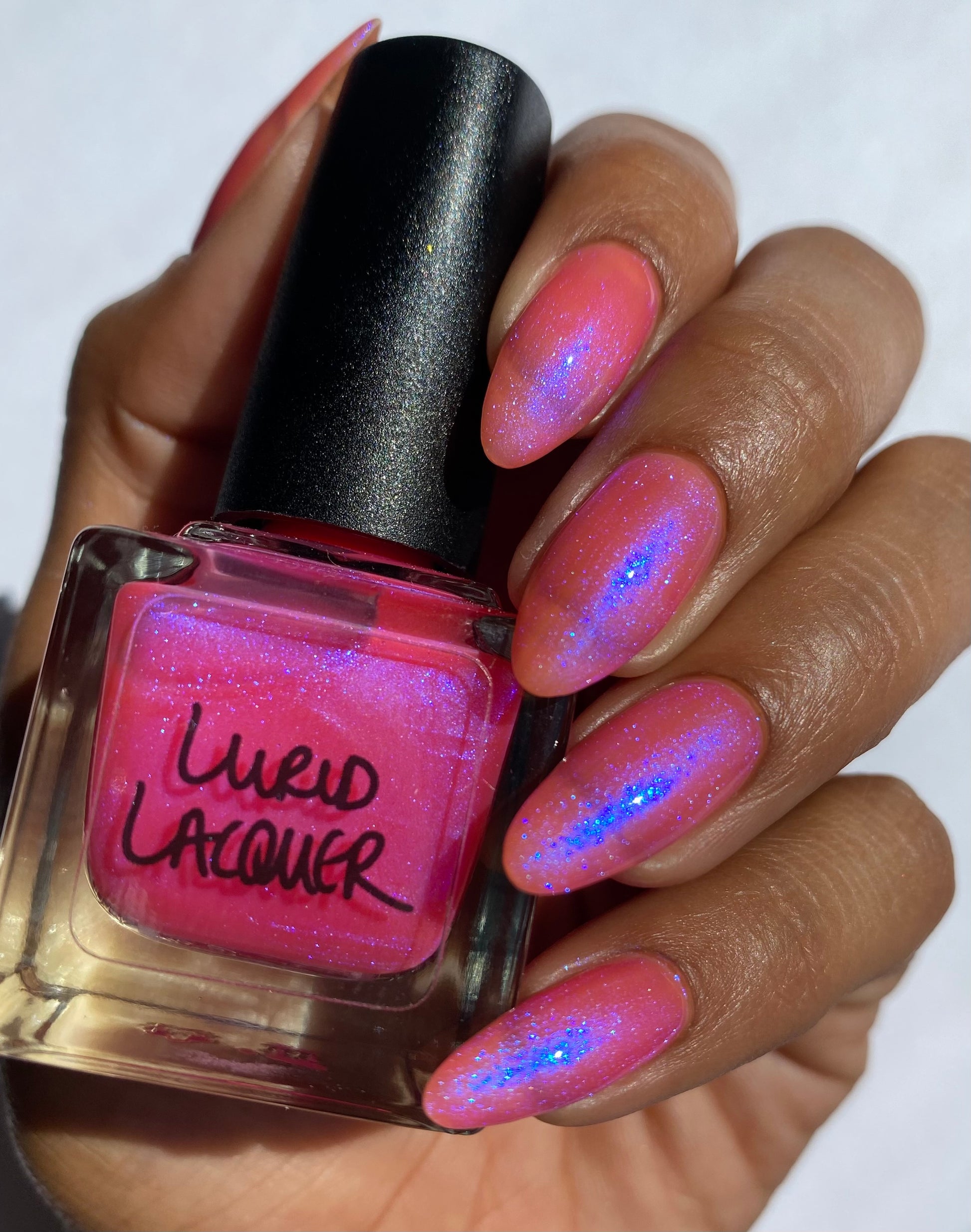 Our swatch photos are intended to give a general impression of the product. Lurid Lacquer polishes are semi-sheer and vary in appearance based on the skin tone and undertone of the person wearing them. We do our best to provide swatches that are both accurate and represent a variety of skin tones and undertones, but screens and monitors vary in how they display images. Our polishes are also handmade in small batches. There may be slight differences across batches. Due to differences in screens/monitors, skin tone/undertone, and batches, the product you receive may not look on you exactly like it does in your favorite swatcher's picture on your screen.