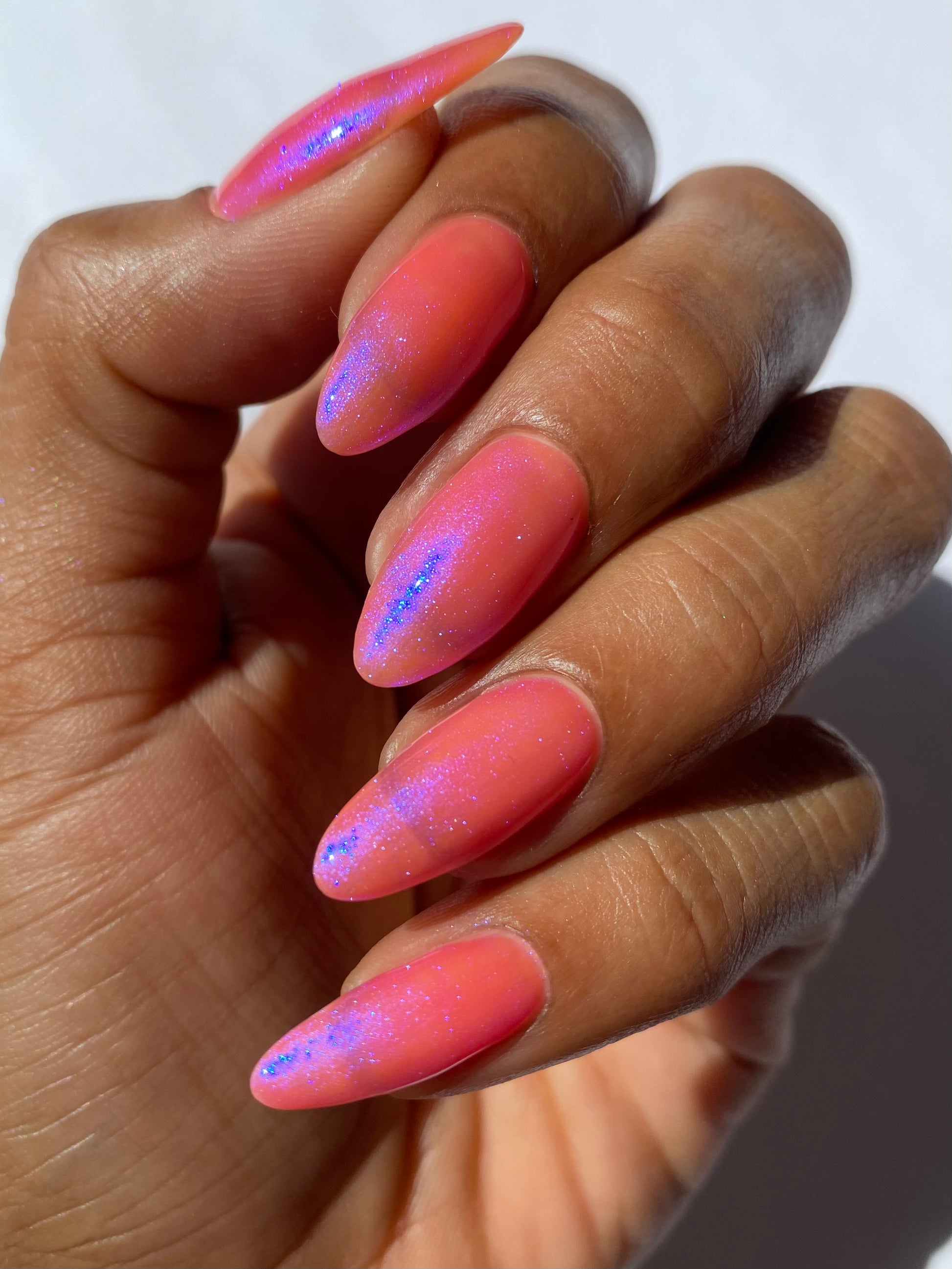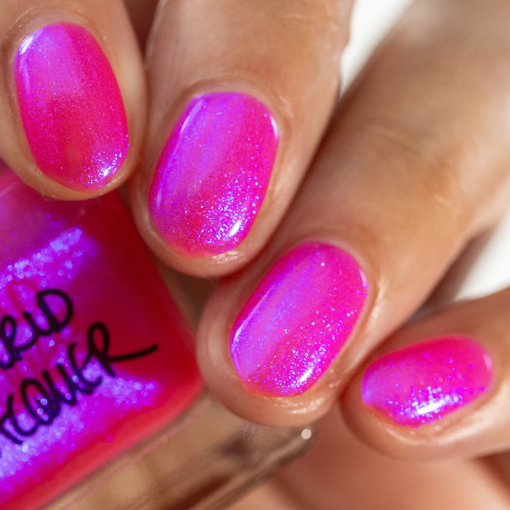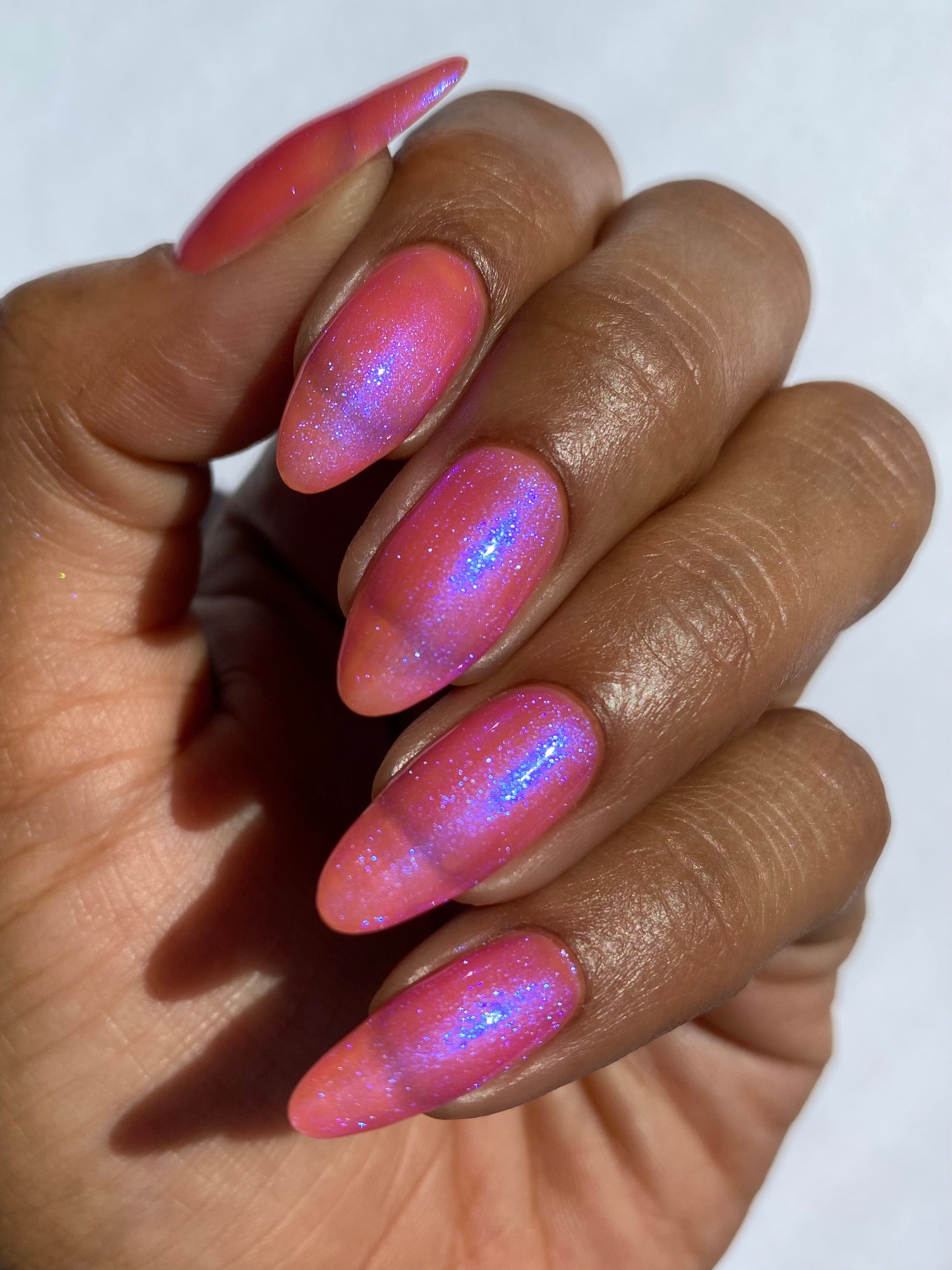 Our swatch photos are intended to give a general impression of the product. Lurid Lacquer polishes are semi-sheer and vary in appearance based on the skin tone and undertone of the person wearing them. We do our best to provide swatches that are both accurate and represent a variety of skin tones and undertones, but screens and monitors vary in how they display images. Our polishes are also handmade in small batches. There may be slight differences across batches. Due to differences in screens/monitors, skin tone/undertone, and batches, the product you receive may not look on you exactly like it does in your favorite swatcher's picture on your screen.