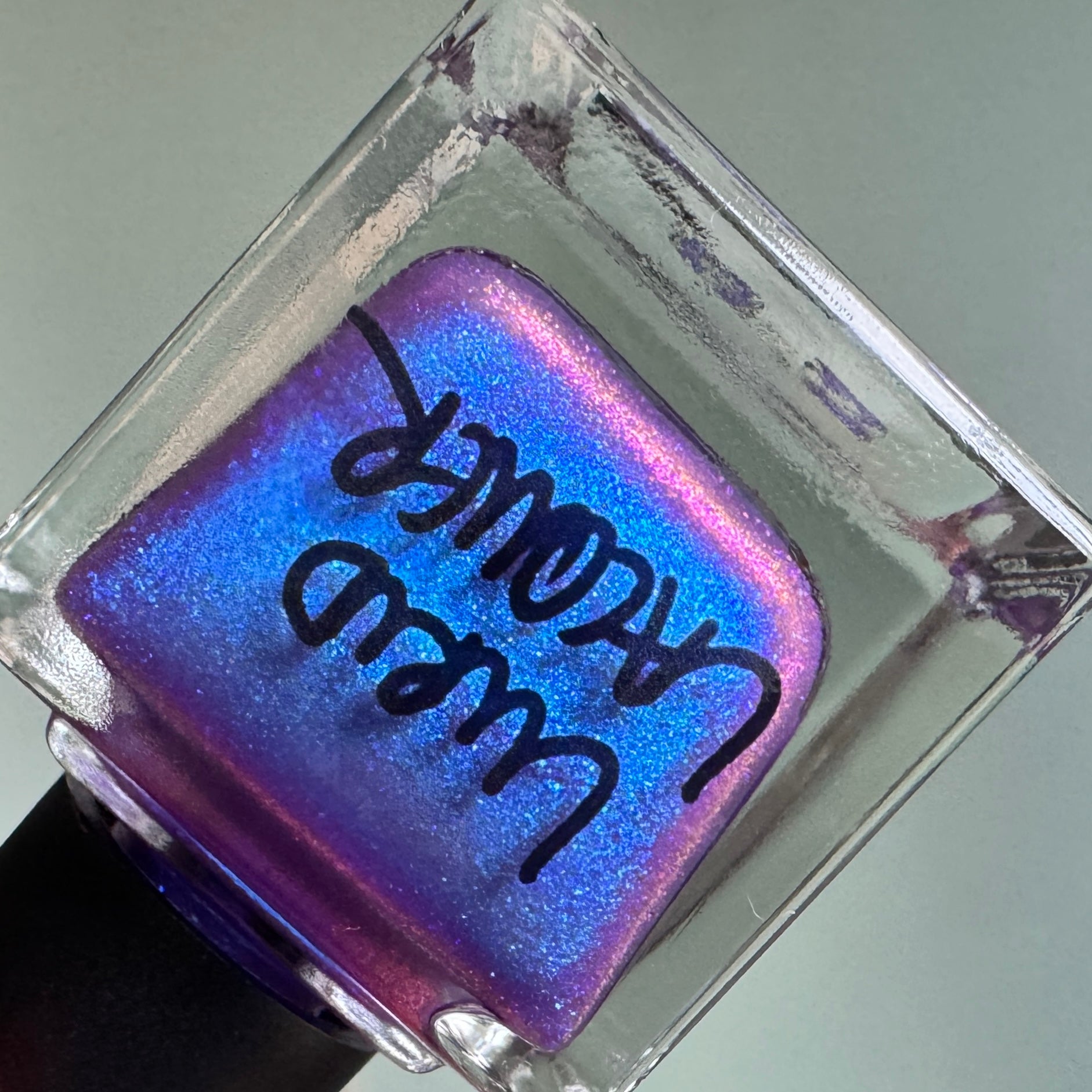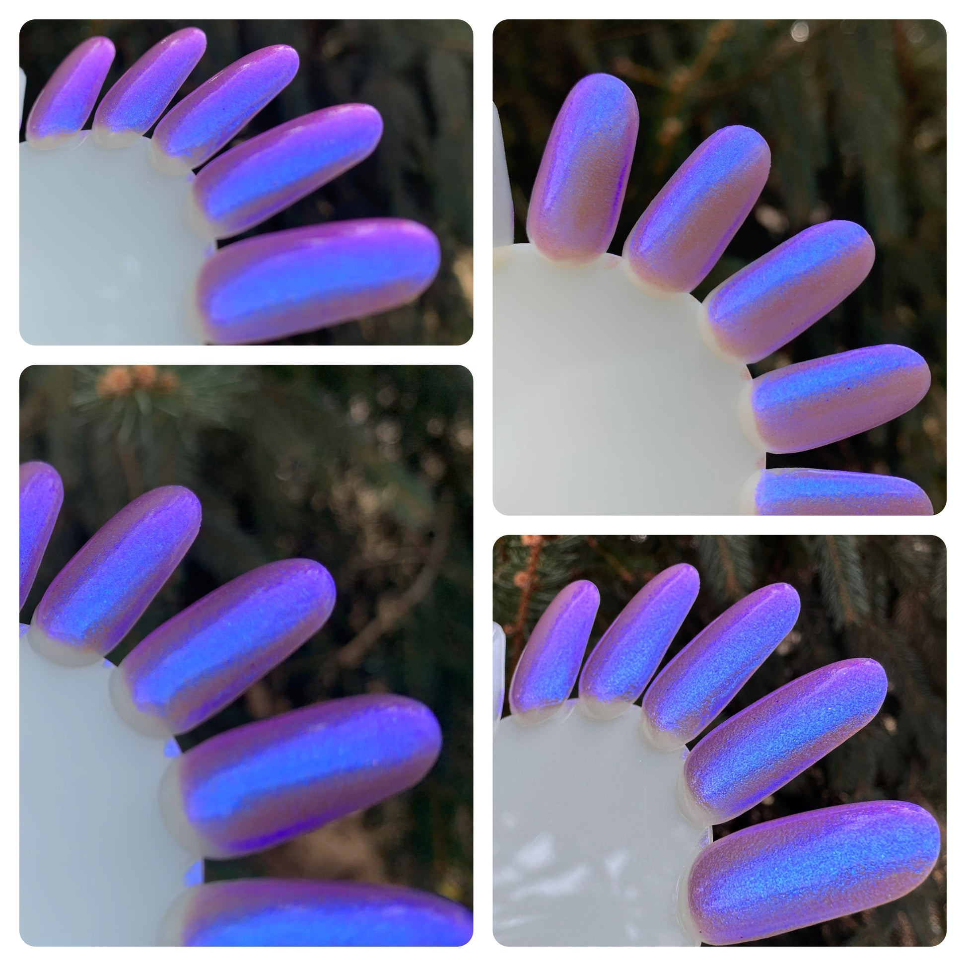 The Brutal Beauty of Deep Winter features a sheer purple base with glowy aurora pigment that shifts from blue to purple (and to pink at extremes).