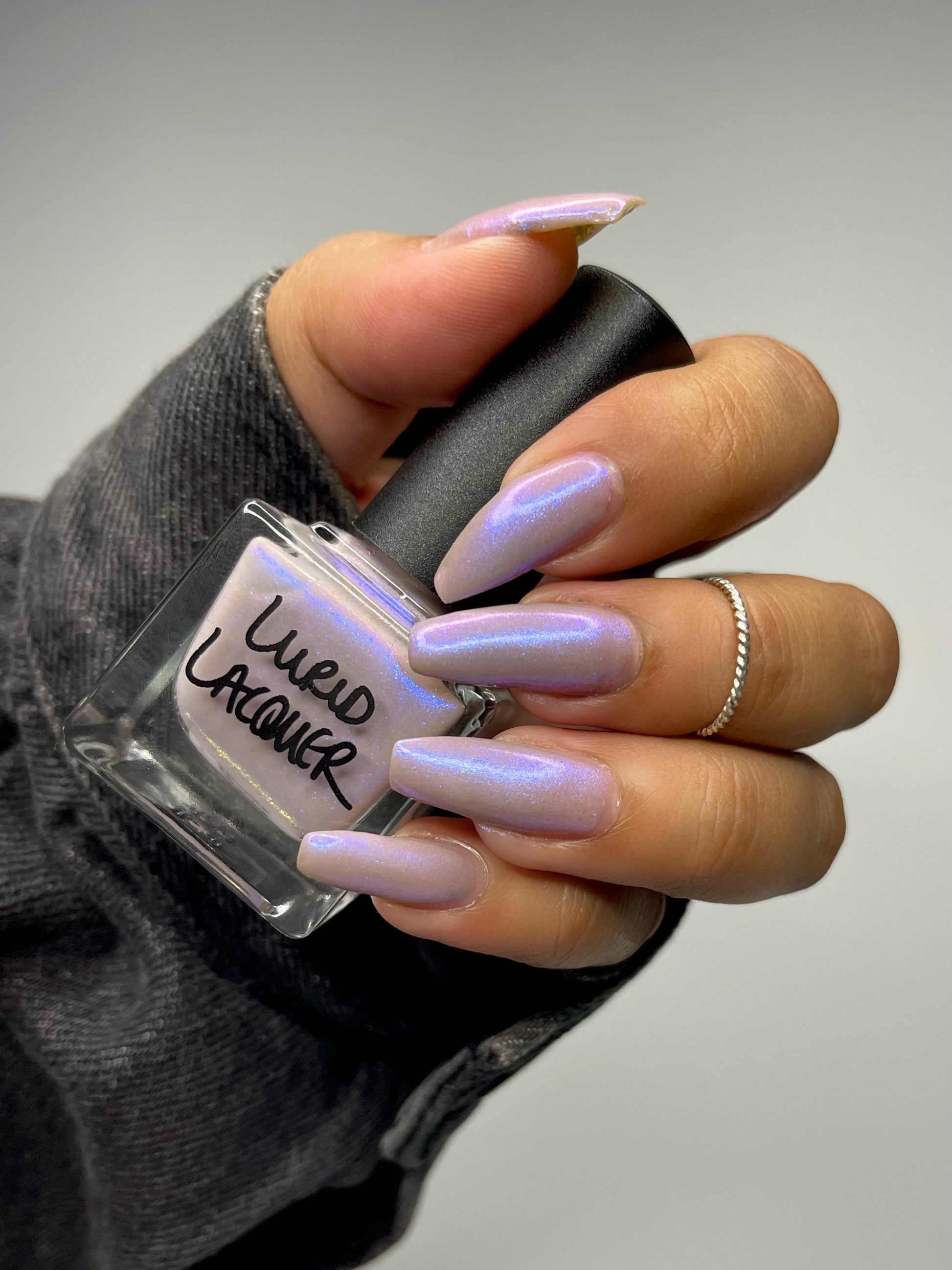 Our swatch photos are intended to give a general impression of the product. Lurid Lacquer polishes are semi-sheer and vary in appearance based on the skin tone and undertone of the person wearing them. We do our best to provide swatches that are both accurate and represent a variety of skin tones and undertones, but screens and monitors vary in how they display images. Our polishes are also handmade in small batches. There may be slight differences across batches. Due to differences in screens/monitors, skin tone/undertone, and batches, the product you receive may not look on you exactly like it does in your favorite swatcher's picture on your screen.