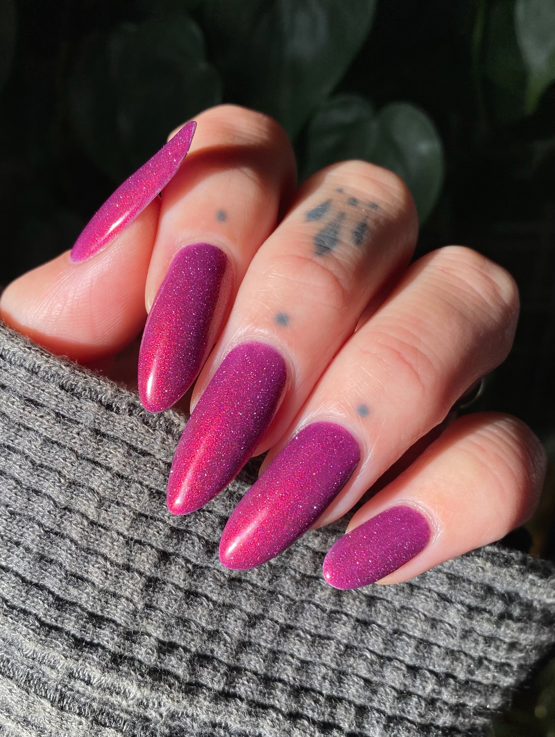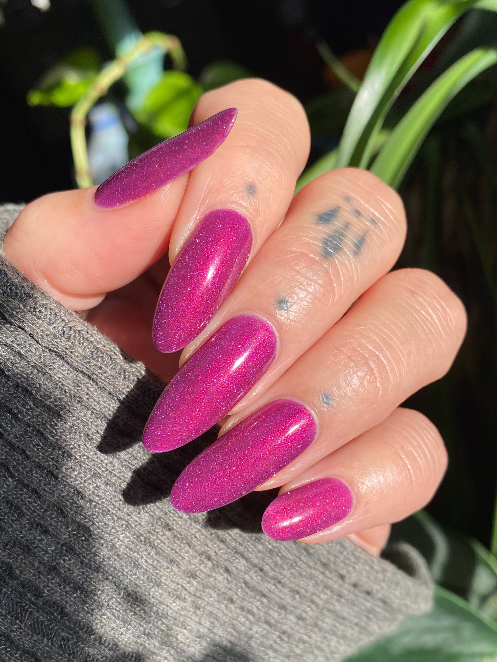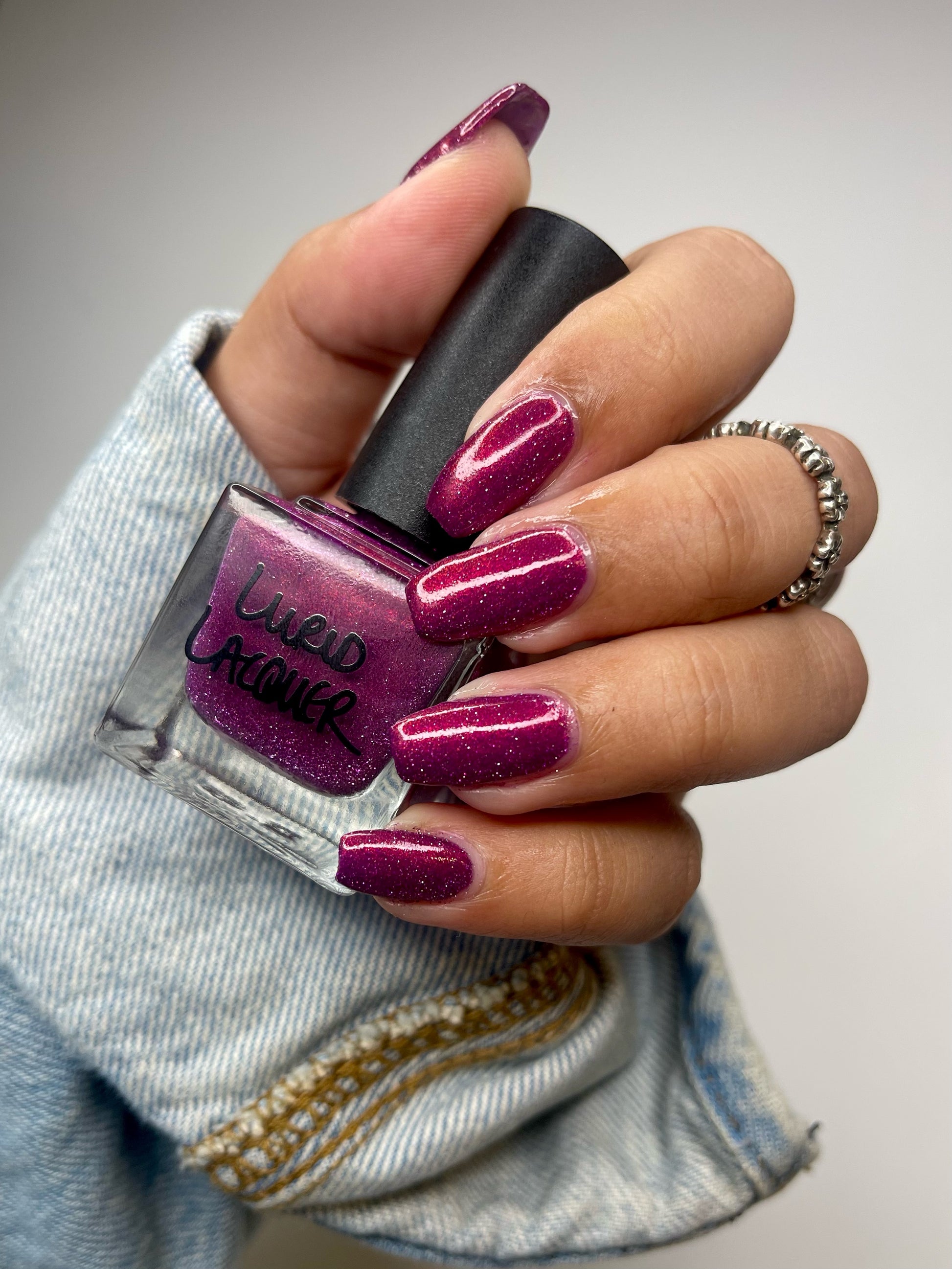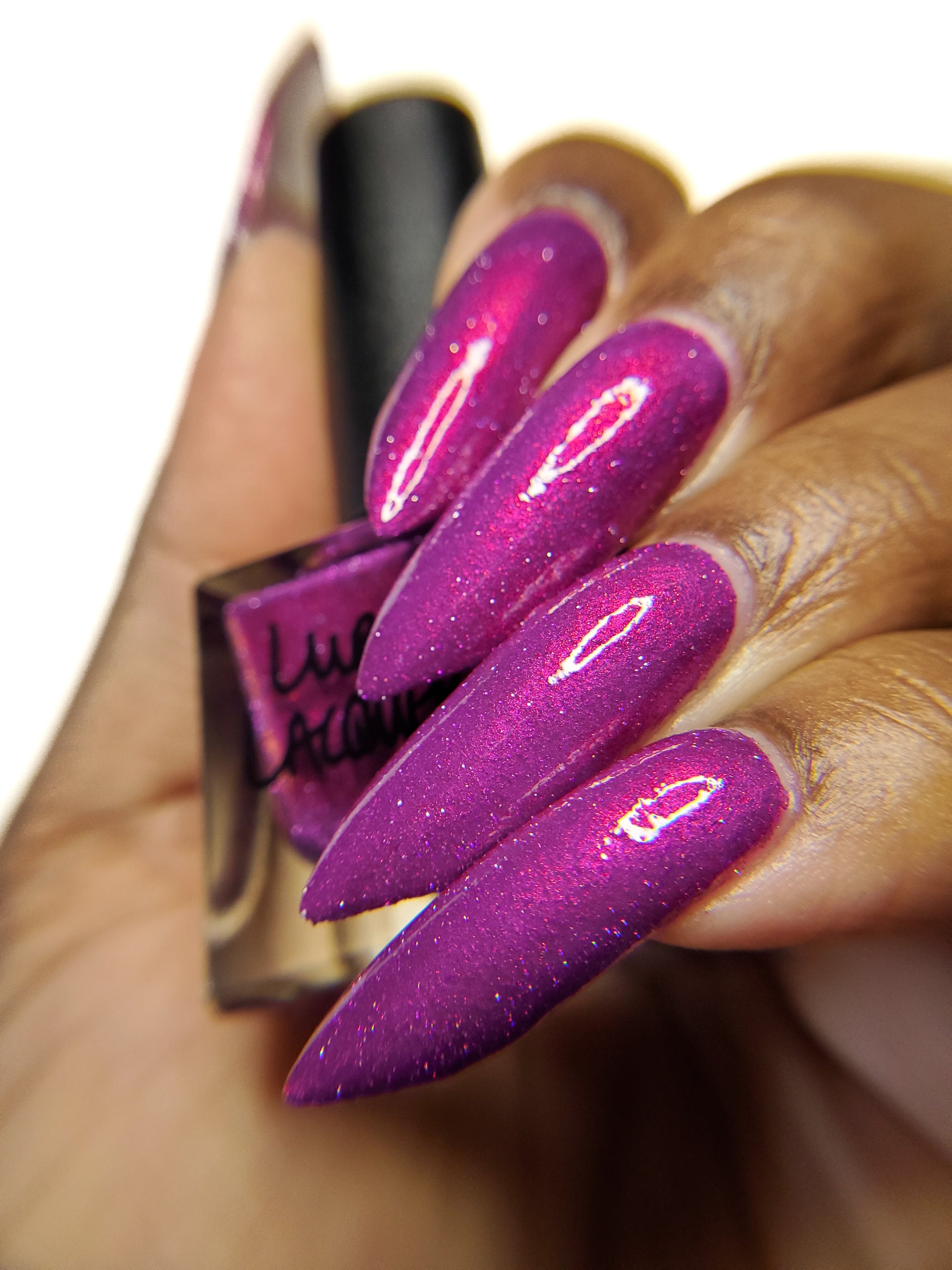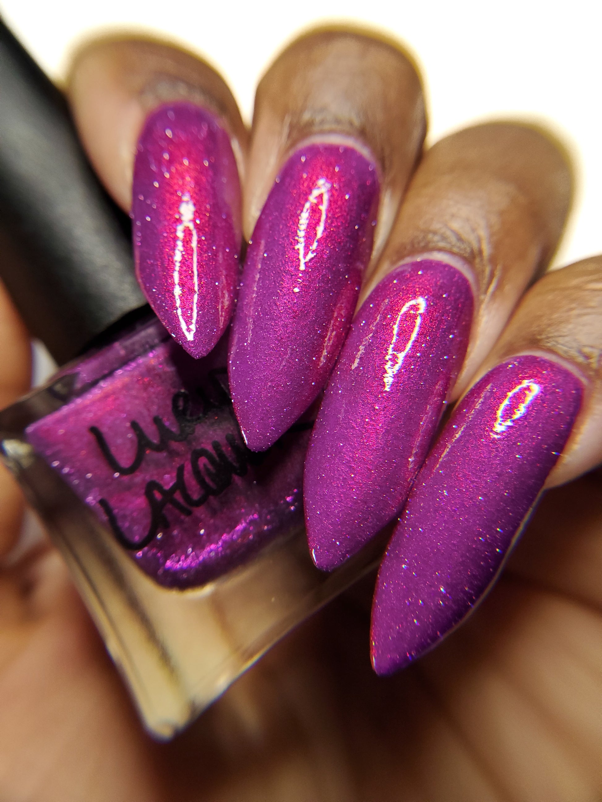 Our swatch photos are intended to give a general impression of the product. Lurid Lacquer polishes are semi-sheer and vary in appearance based on the skin tone and undertone of the person wearing them. We do our best to provide swatches that are both accurate and represent a variety of skin tones and undertones, but screens and monitors vary in how they display images. Our polishes are also handmade in small batches. There may be slight differences across batches. Due to differences in screens/monitors, skin tone/undertone, and batches, the product you receive may not look on you exactly like it does in your favorite swatcher's picture on your screen.
