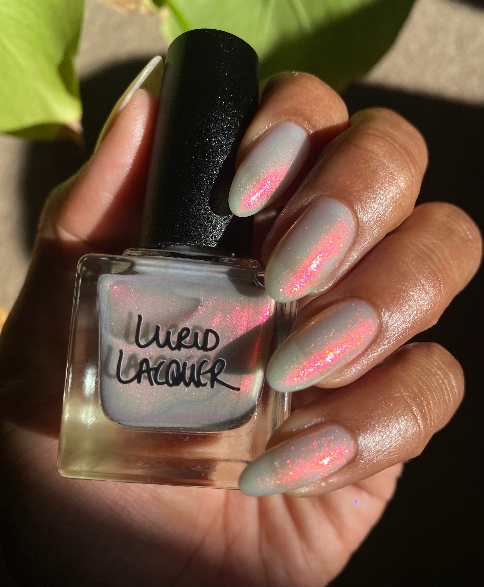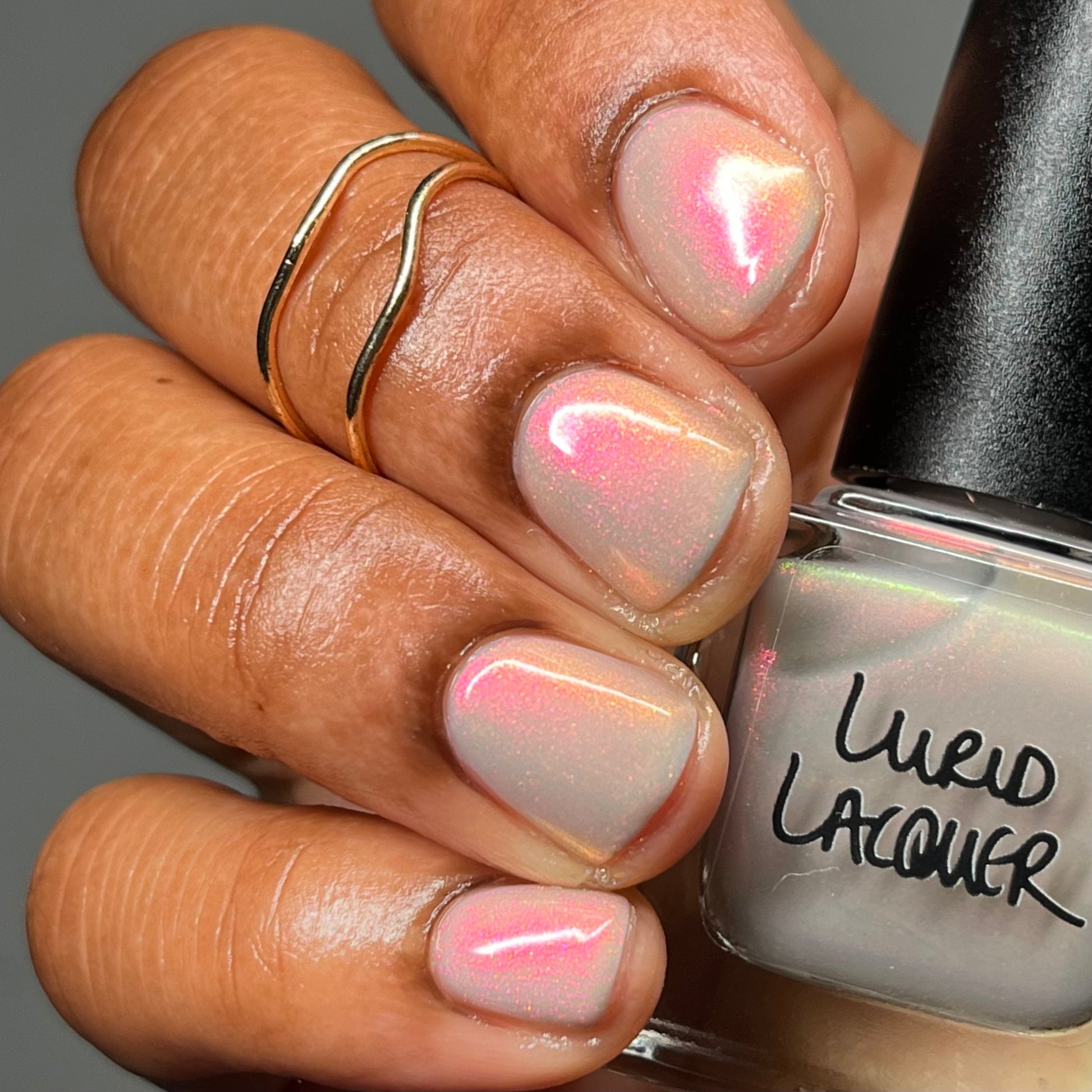 Our swatch photos are intended to give a general impression of the product. Lurid Lacquer polishes are semi-sheer and vary in appearance based on the skintone and undertone of the person wearing them. We do our best to provide swatches that are both accurate and represent a variety of skintones and undertones, but screens and monitors vary in how they display images. Our polishes are also handmade in small batches. There may be slight differences across batches. Due to differences in screens/monitors, skintone/undertone, and batches, the product you receive may not look on you exactly like it does in your favorite swatcher's picture on your screen.