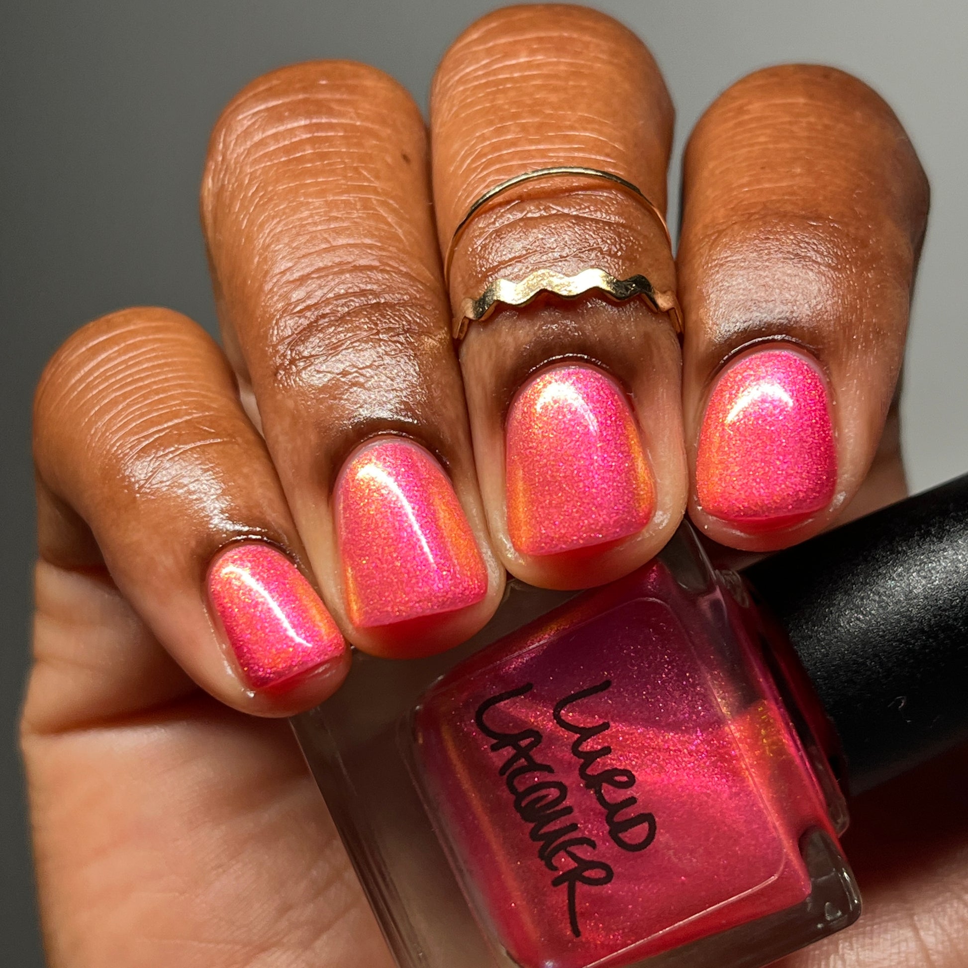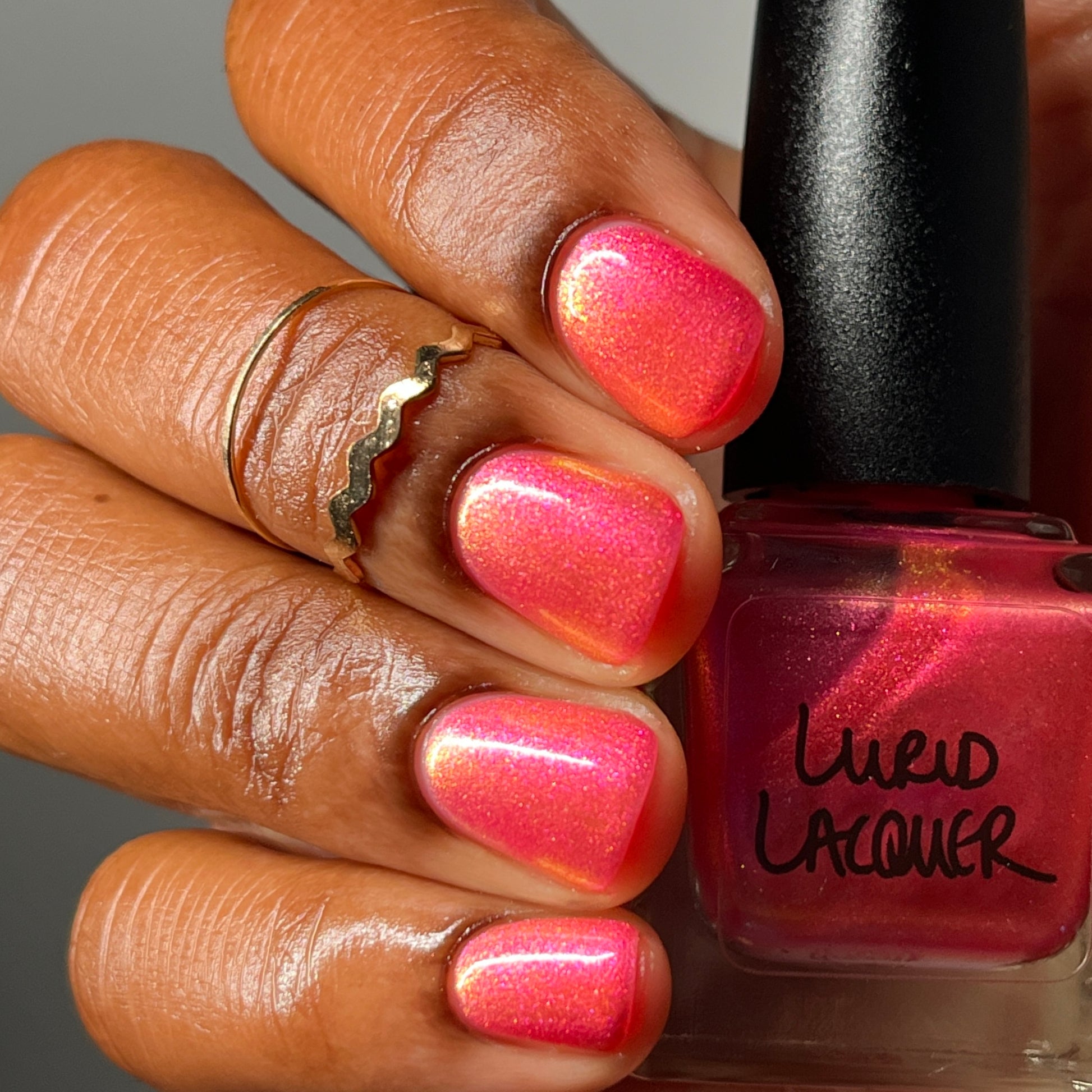 Our swatch photos are intended to give a general impression of the product. Lurid Lacquer polishes are semi-sheer and vary in appearance based on the skin tone and undertone of the person wearing them. We do our best to provide swatches that are both accurate and represent a variety of skin tones and undertones, but screens and monitors vary in how they display images. Our polishes are also handmade in small batches. There may be slight differences across batches. Due to differences in screens/monitors, skin tone/undertone, and batches, the product you receive may not look on you exactly like it does in your favorite swatcher's picture on your screen.