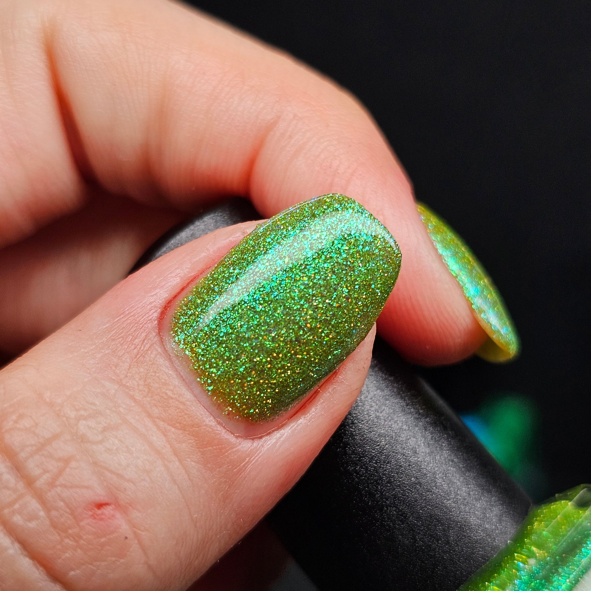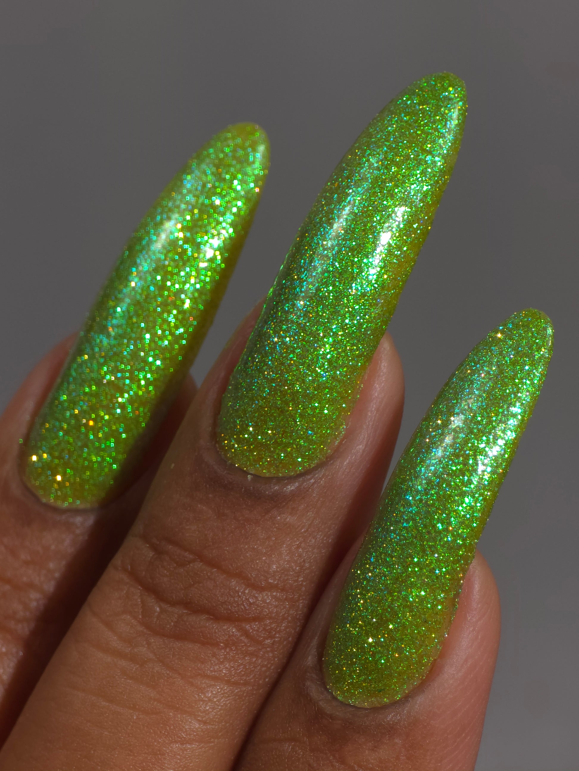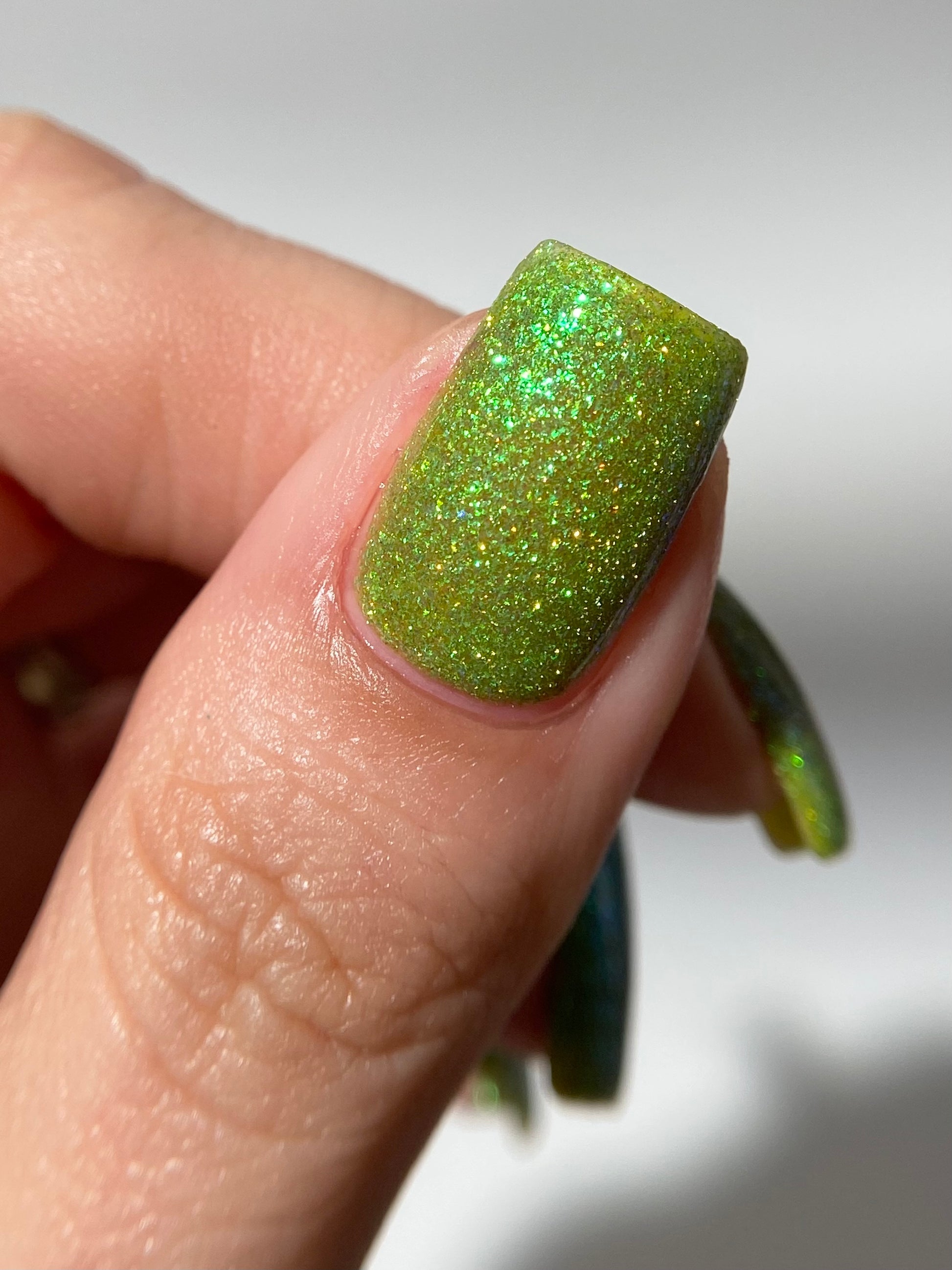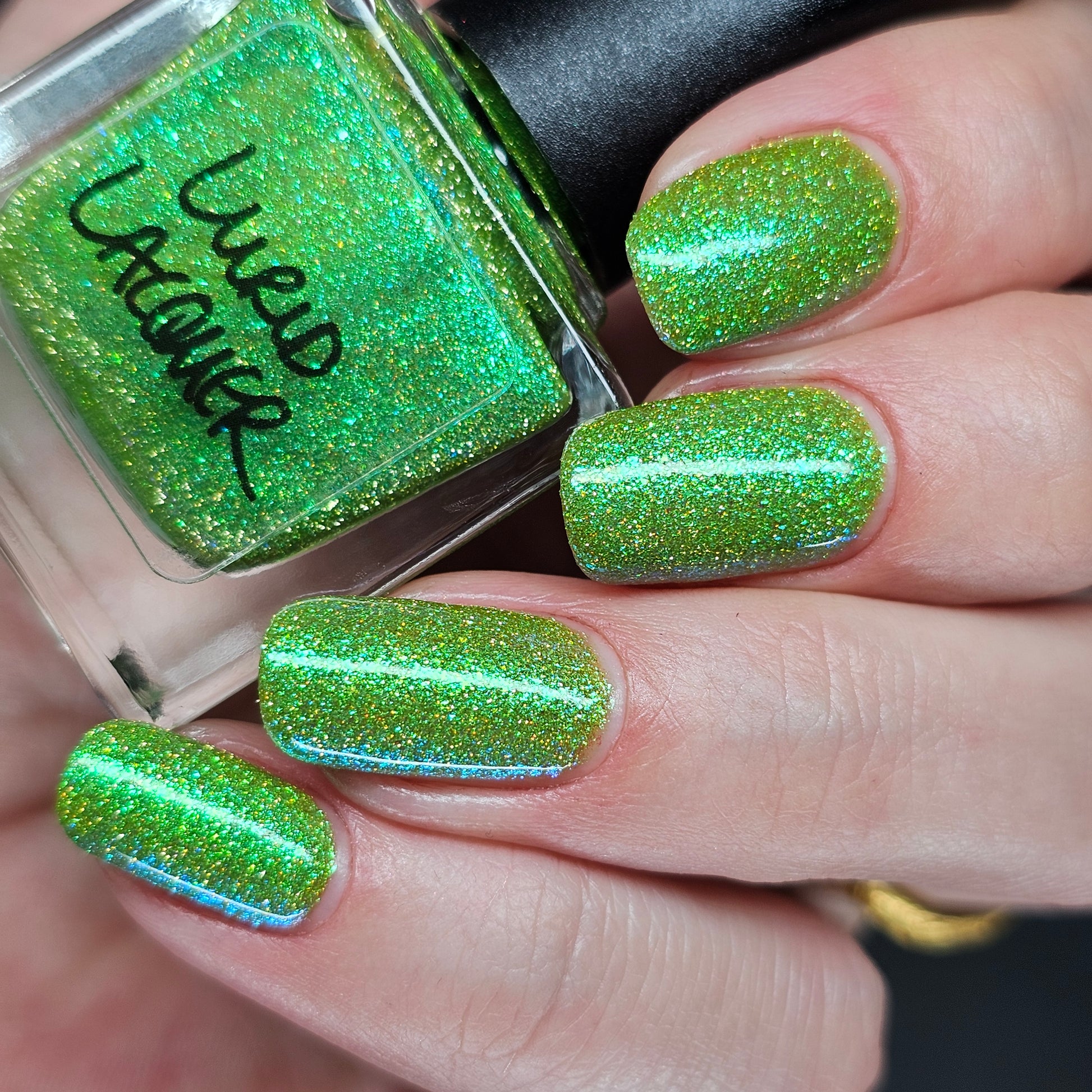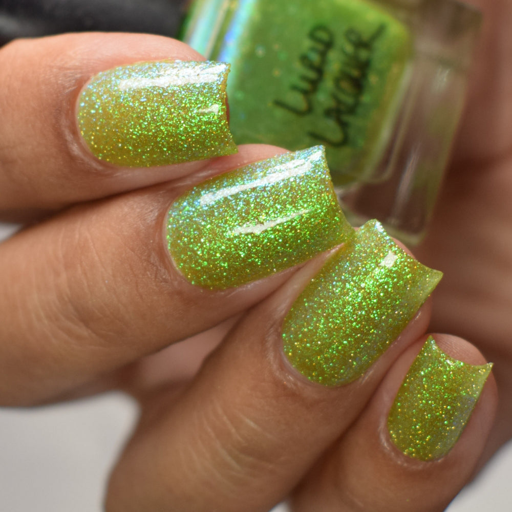 Our swatch photos are intended to give a general impression of the product. Lurid Lacquer polishes are semi-sheer and vary in appearance based on the skin tone and undertone of the person wearing them. We do our best to provide swatches that are both accurate and represent a variety of skin tones and undertones, but screens and monitors vary in how they display images. Our polishes are also handmade in small batches. There may be slight differences across batches. Due to differences in screens/monitors, skin tone/undertone, and batches, the product you receive may not look on you exactly like it does in your favorite swatcher's picture on your screen.