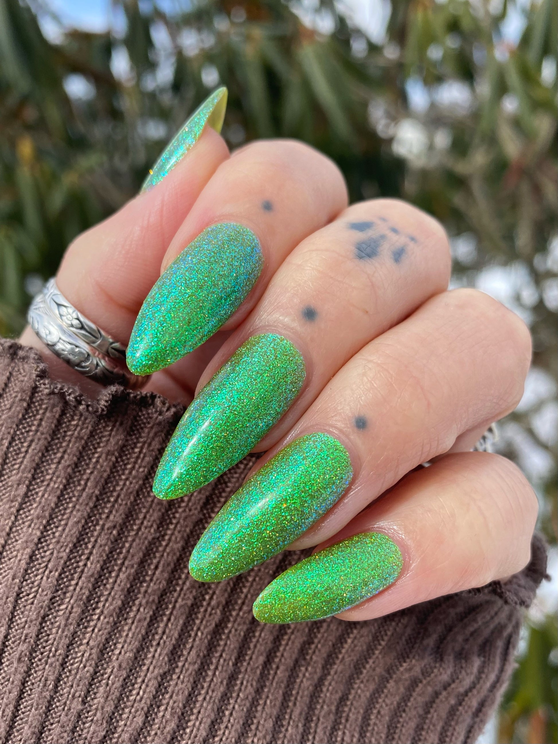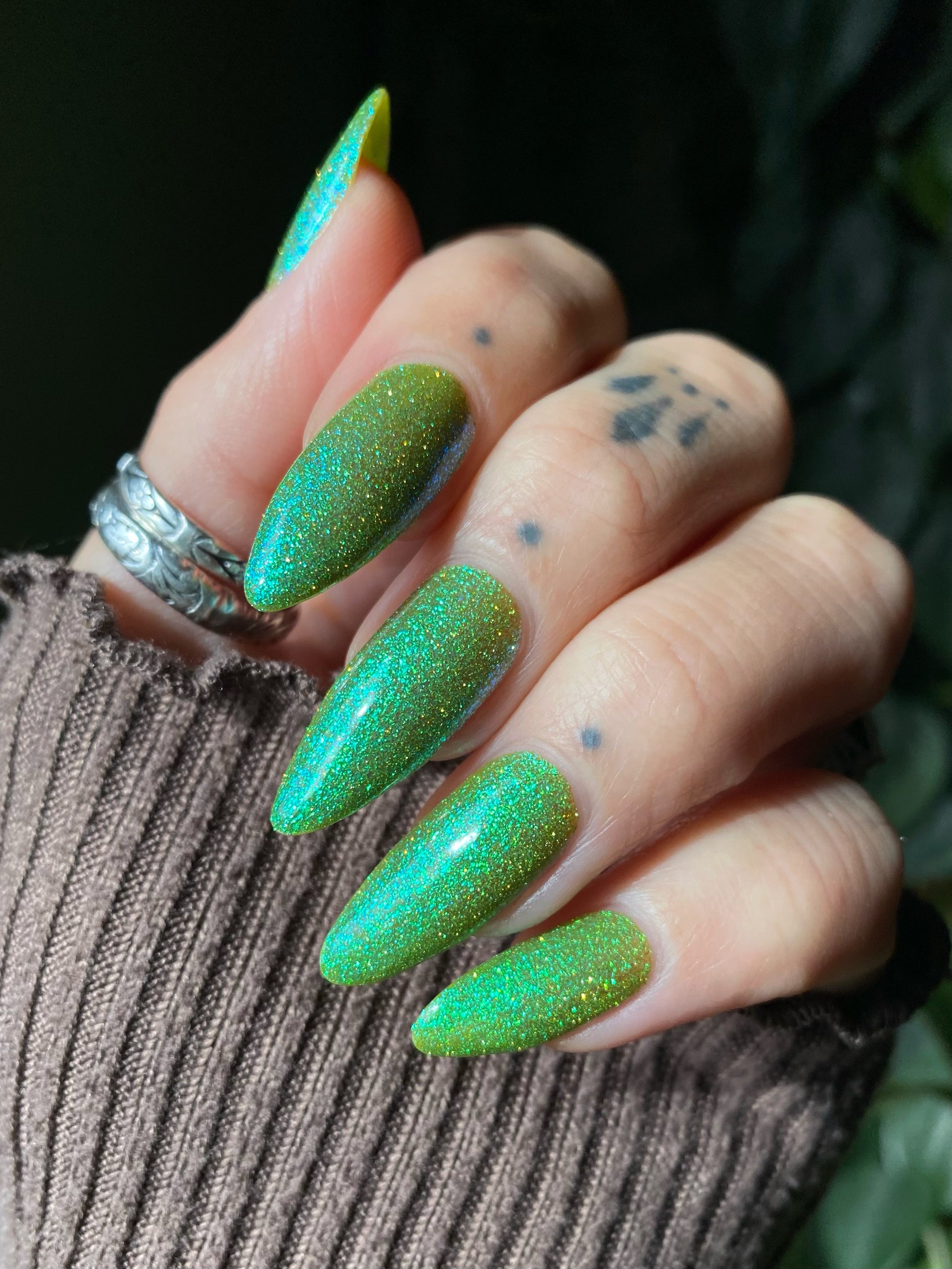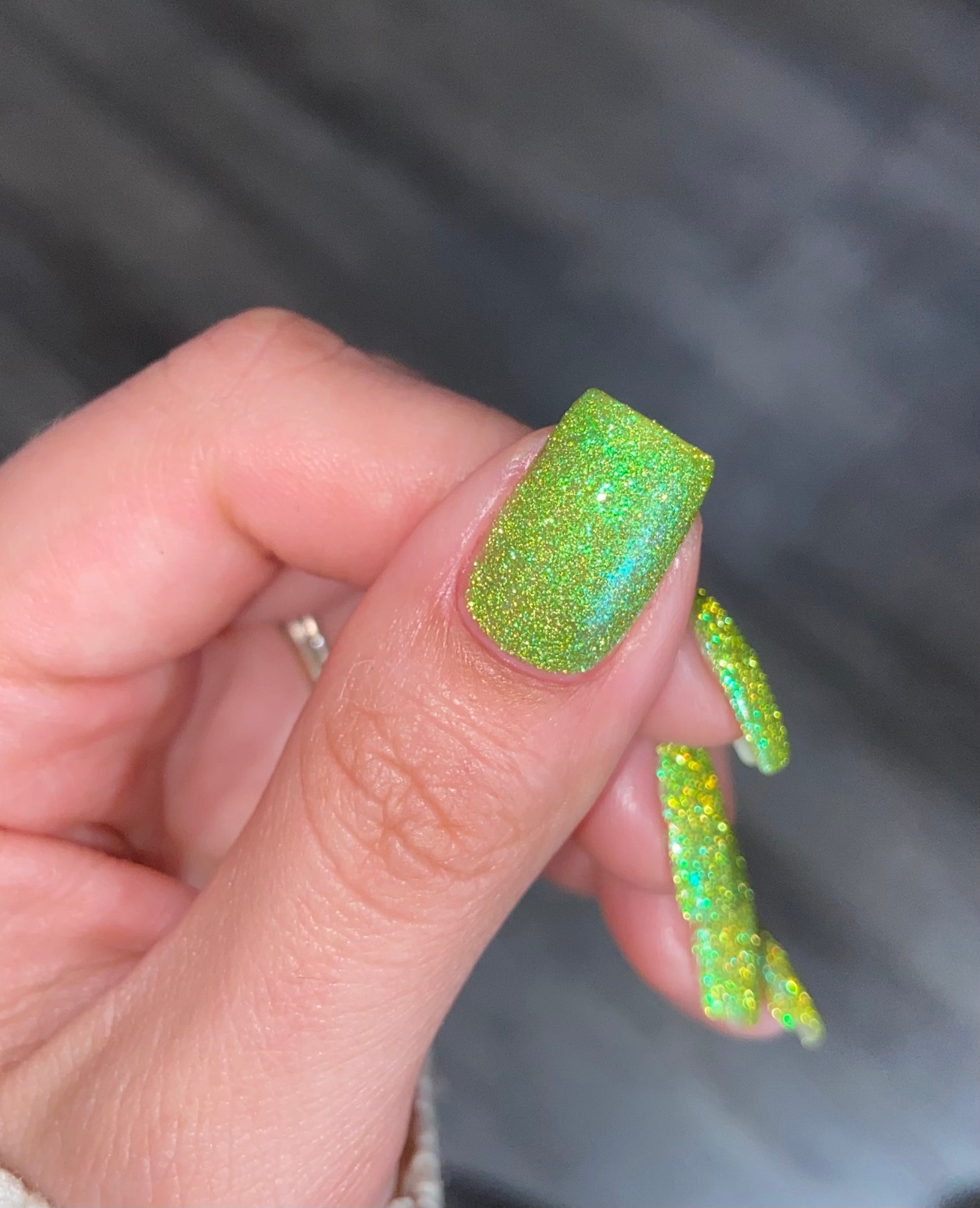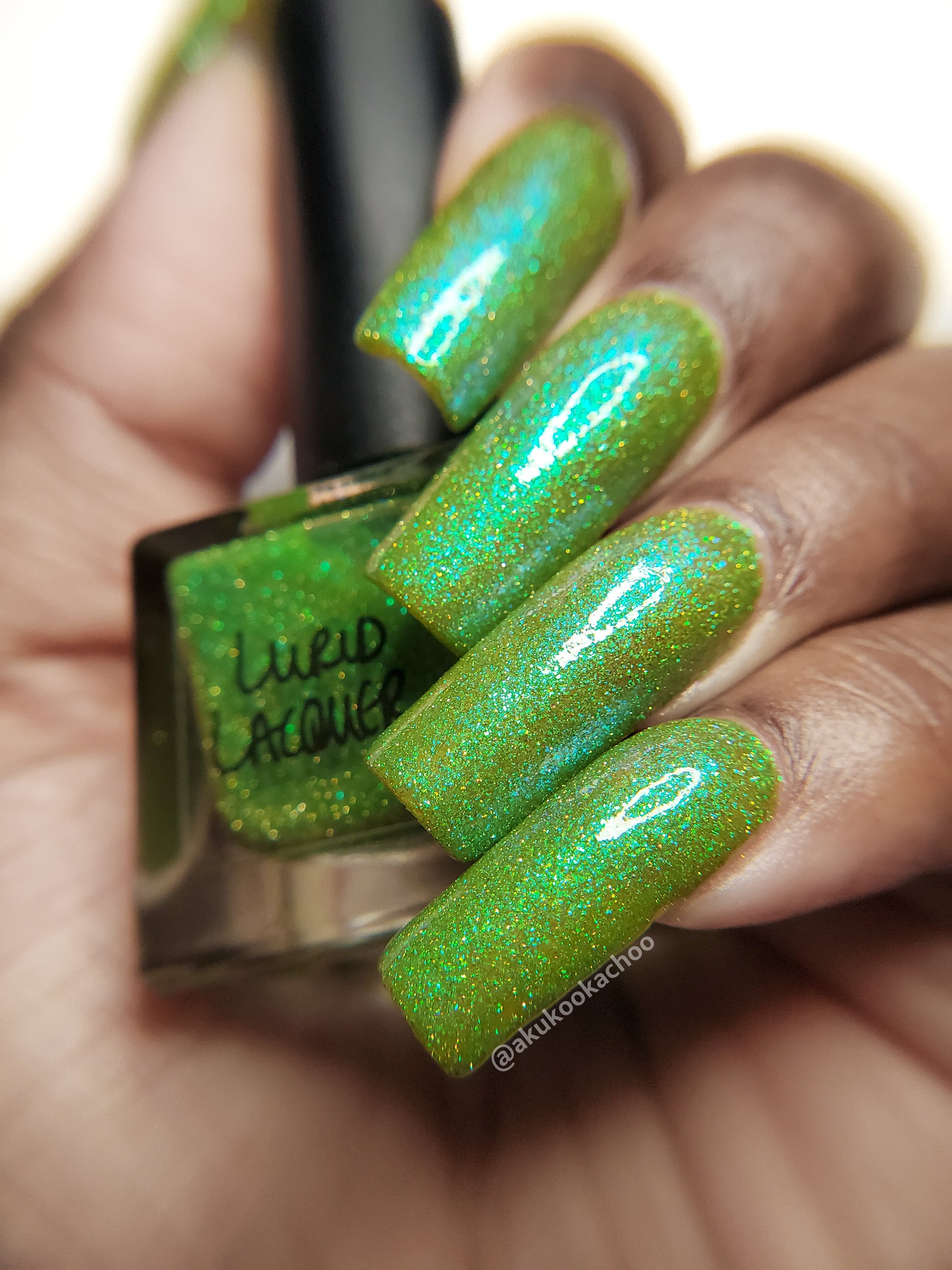 Our swatch photos are intended to give a general impression of the product. Lurid Lacquer polishes are semi-sheer and vary in appearance based on the skin tone and undertone of the person wearing them. We do our best to provide swatches that are both accurate and represent a variety of skin tones and undertones, but screens and monitors vary in how they display images. Our polishes are also handmade in small batches. There may be slight differences across batches. Due to differences in screens/monitors, skin tone/undertone, and batches, the product you receive may not look on you exactly like it does in your favorite swatcher's picture on your screen.