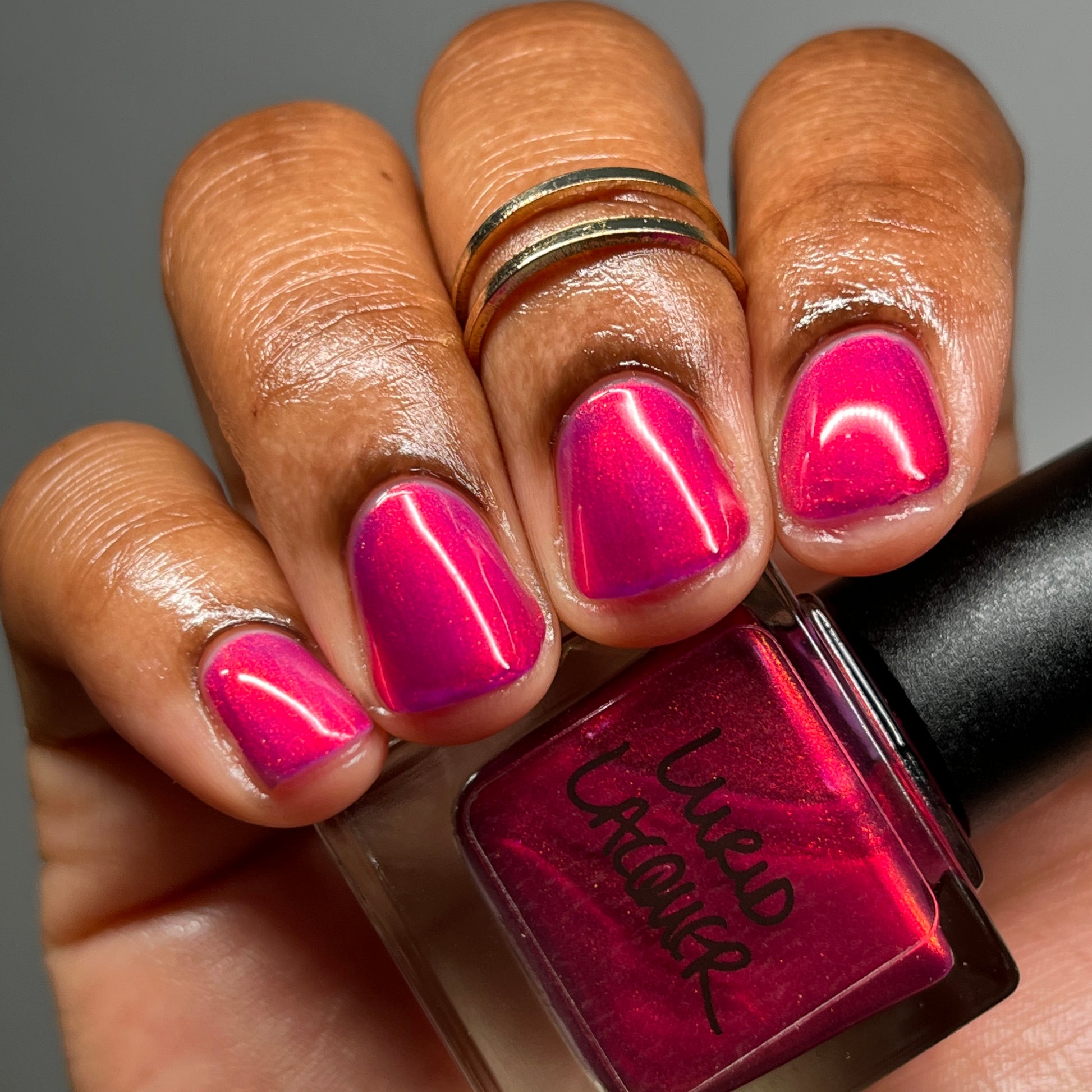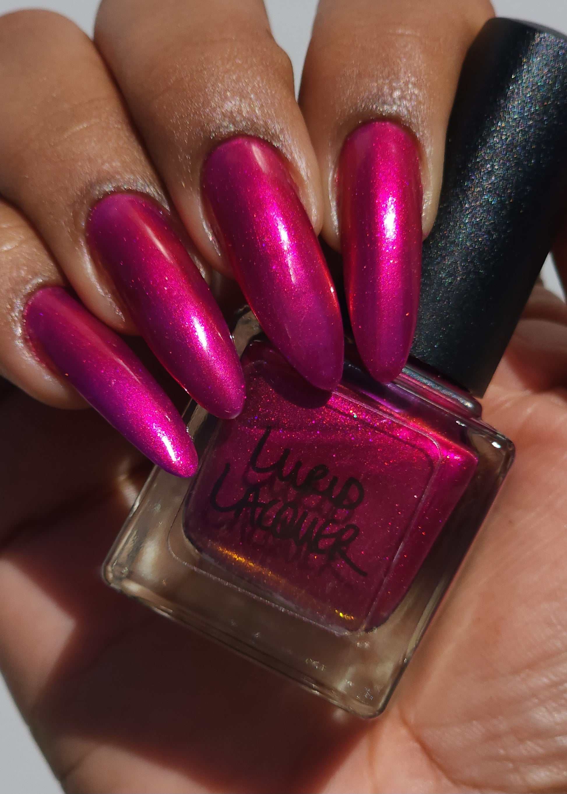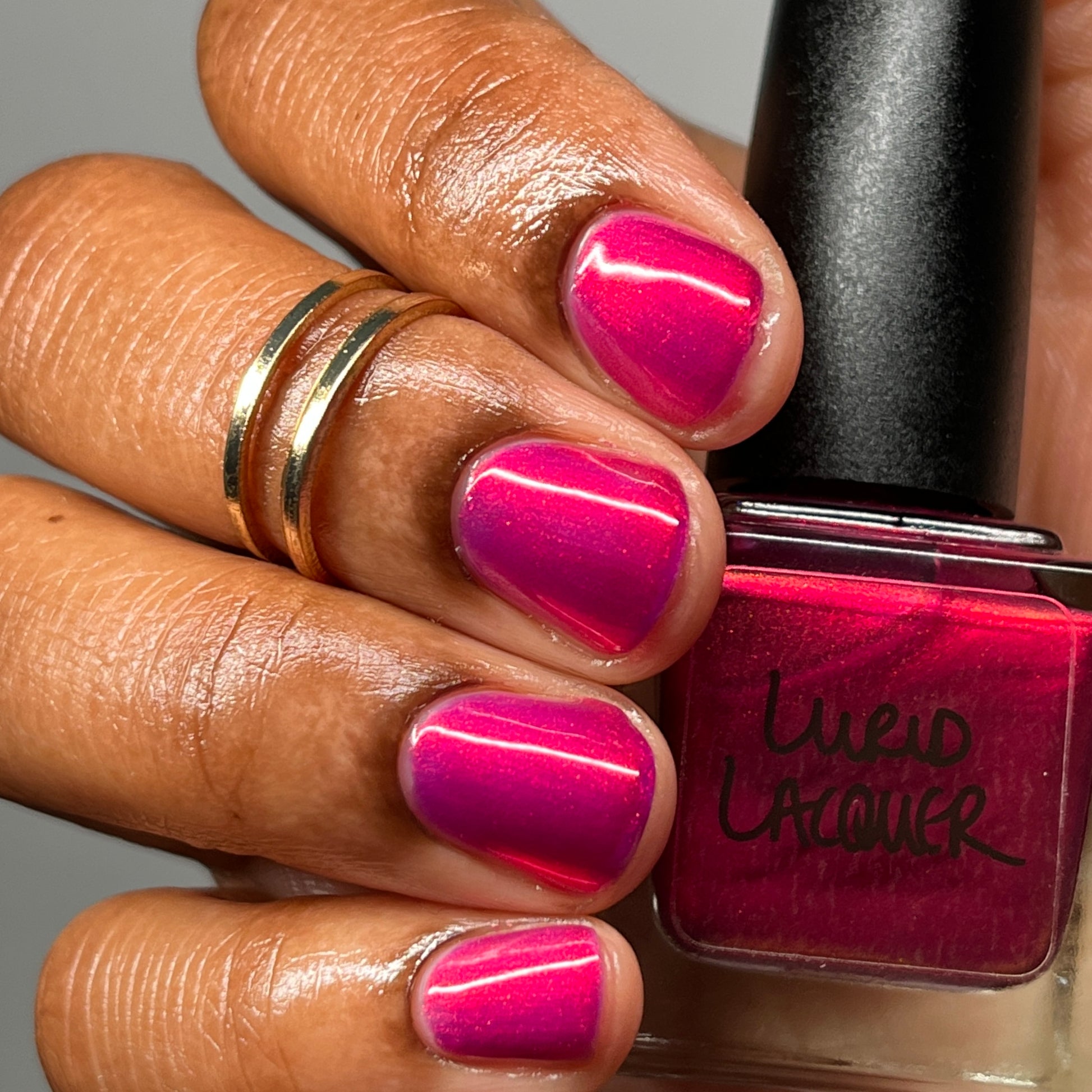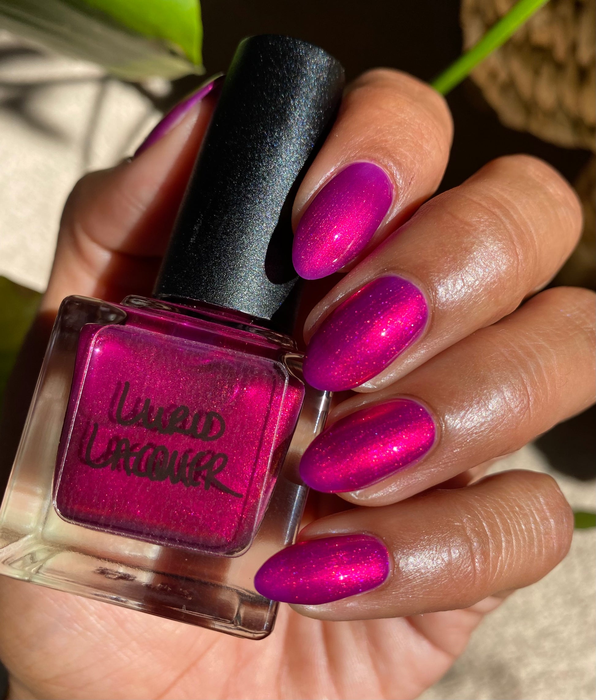 Our swatch photos are intended to give a general impression of the product. Lurid Lacquer polishes are semi-sheer and vary in appearance based on the skin tone and undertone of the person wearing them. We do our best to provide swatches that are both accurate and represent a variety of skin tones and undertones, but screens and monitors vary in how they display images. Our polishes are also handmade in small batches. There may be slight differences across batches. Due to differences in screens/monitors, skin tone/undertone, and batches, the product you receive may not look on you exactly like it does in your favorite swatcher's picture on your screen.