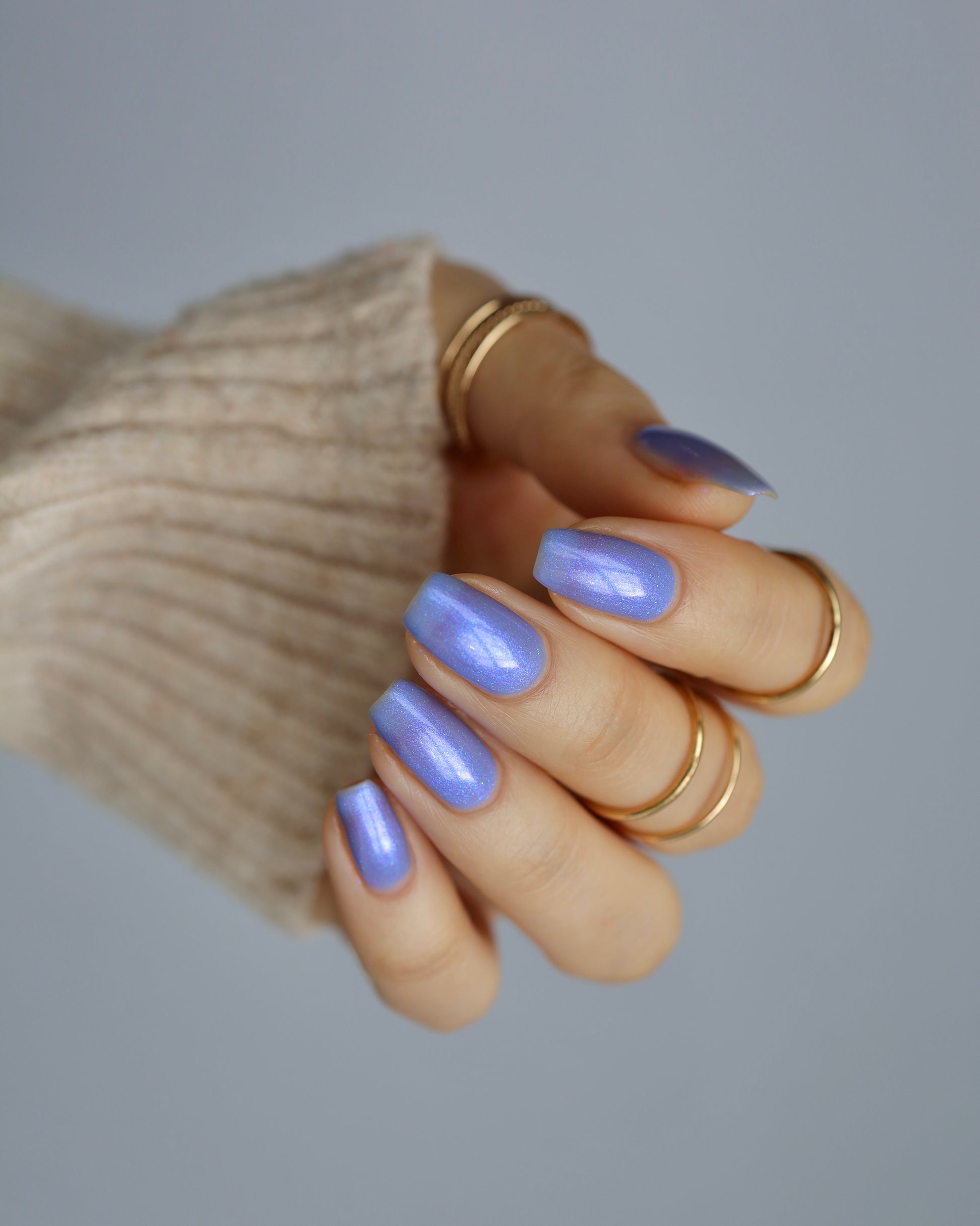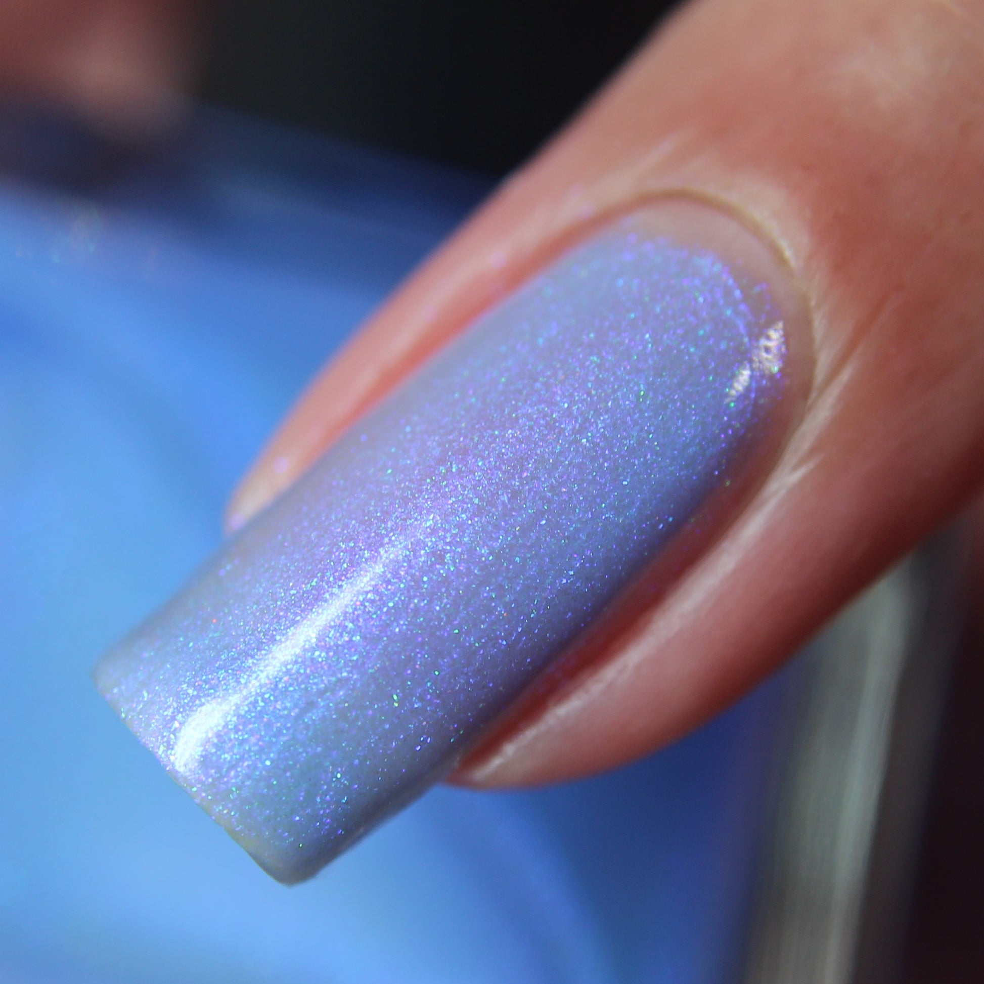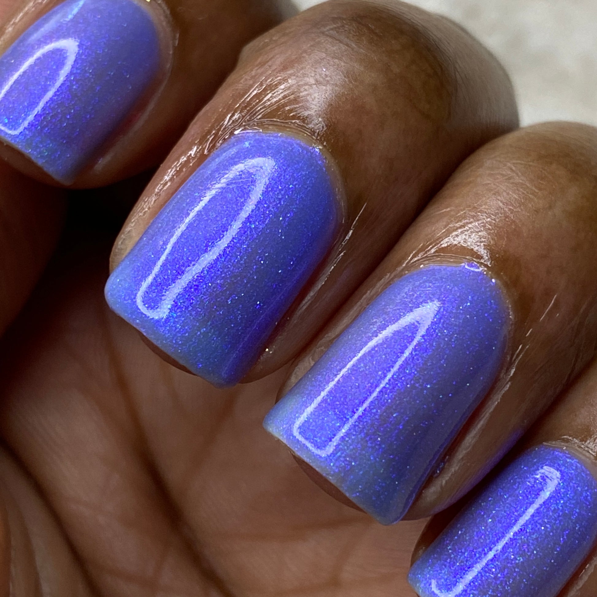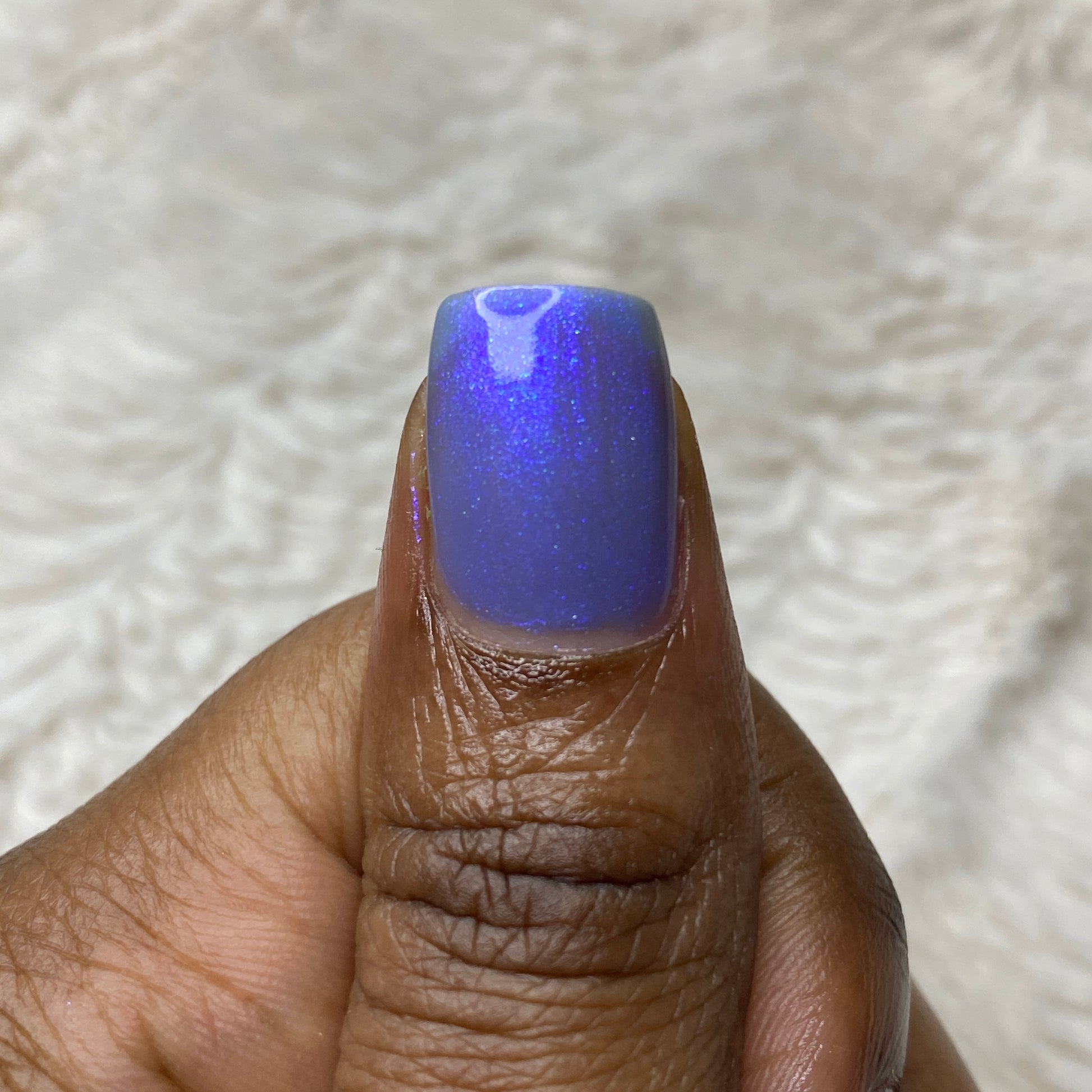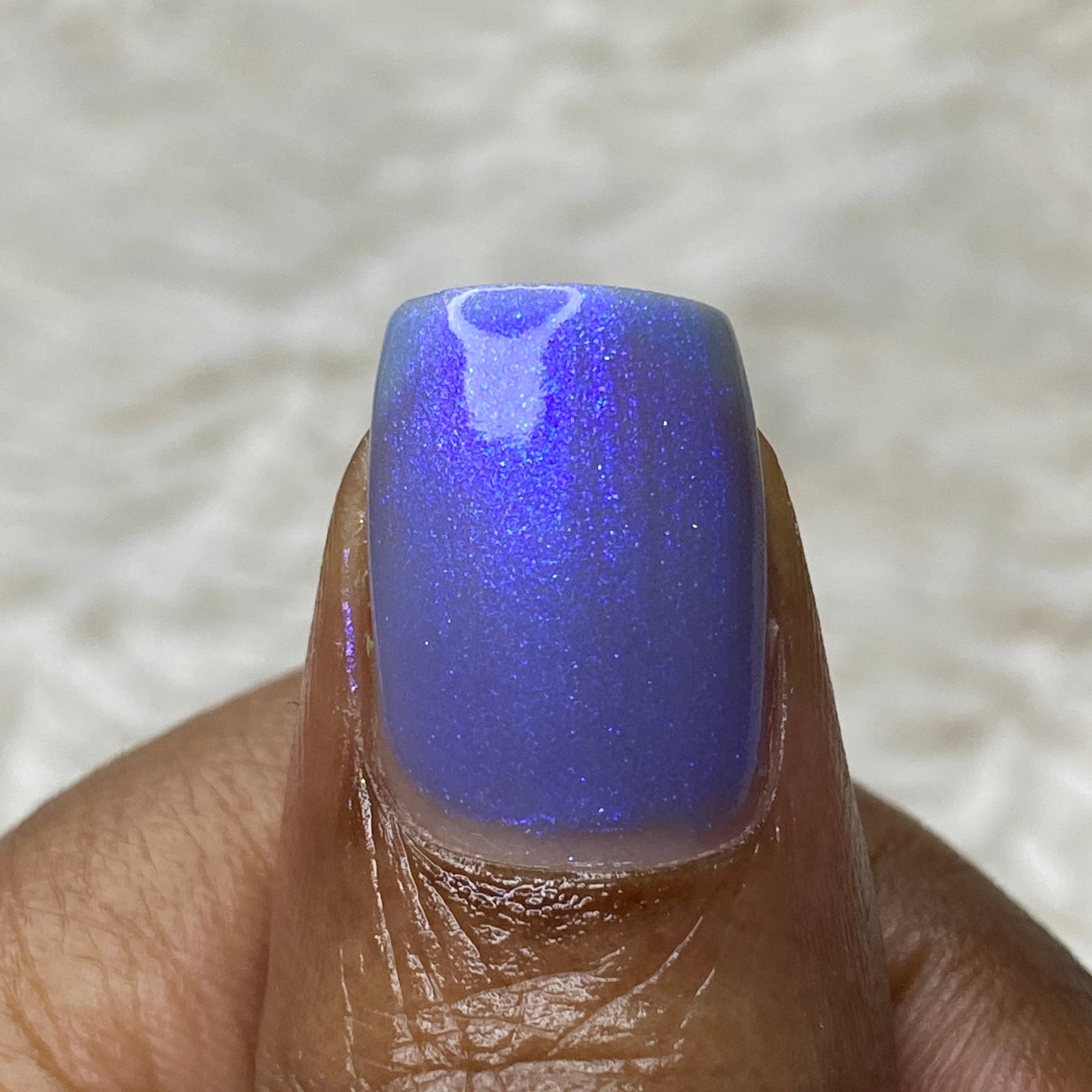 A periwinkle base with indigo shimmer that shifts to red at extremes