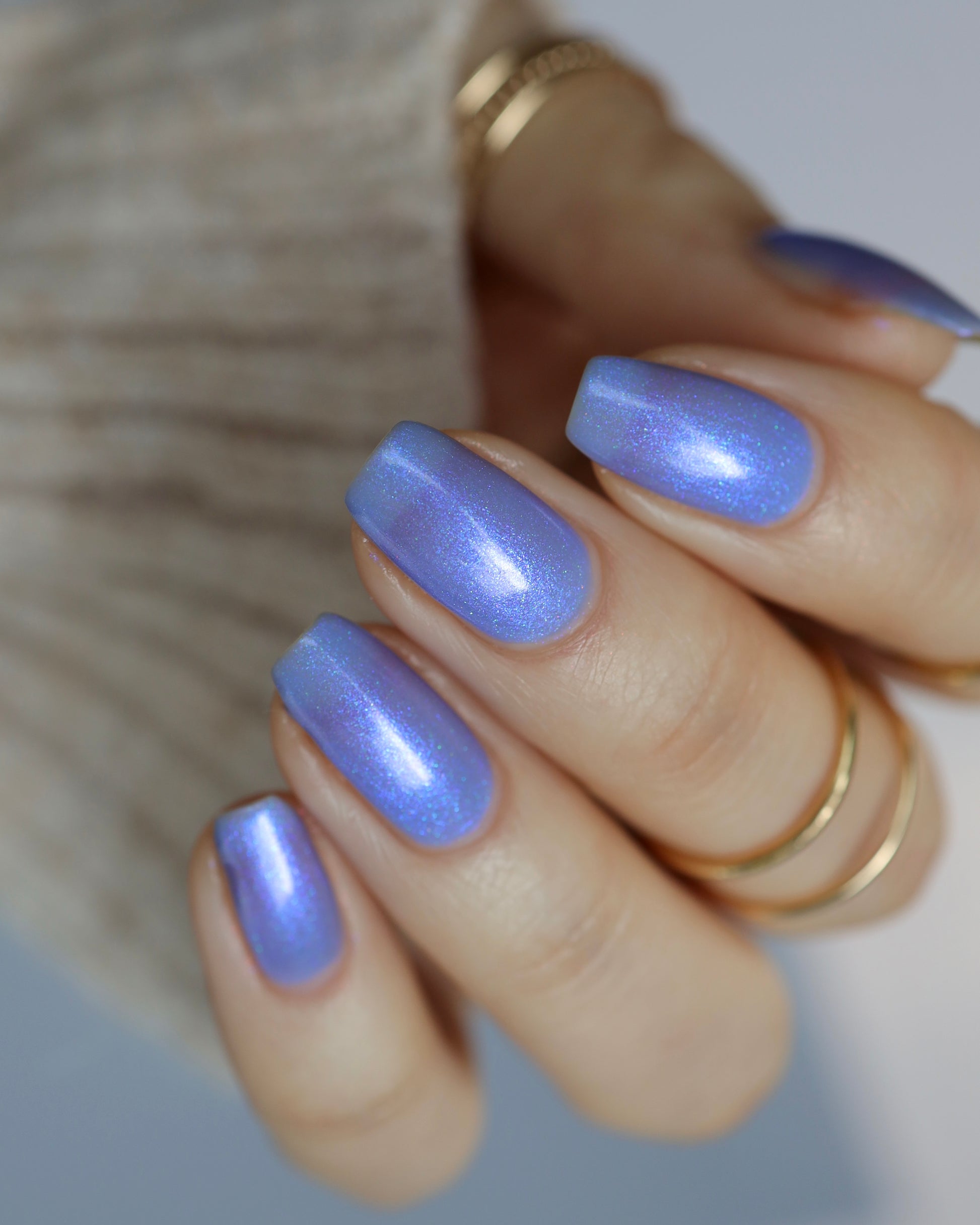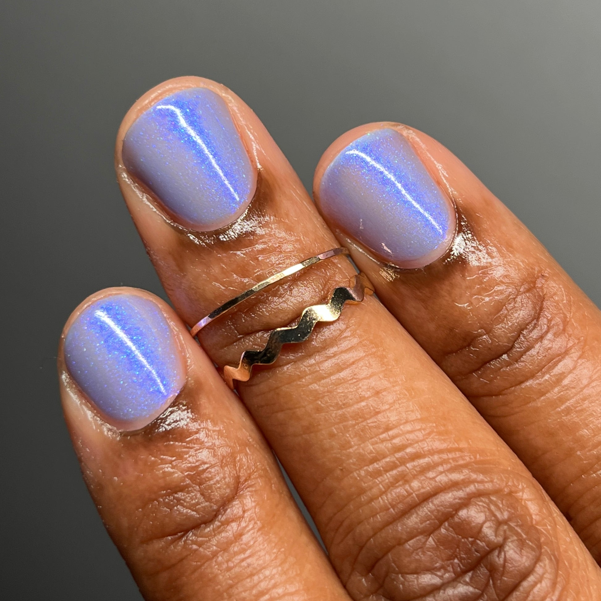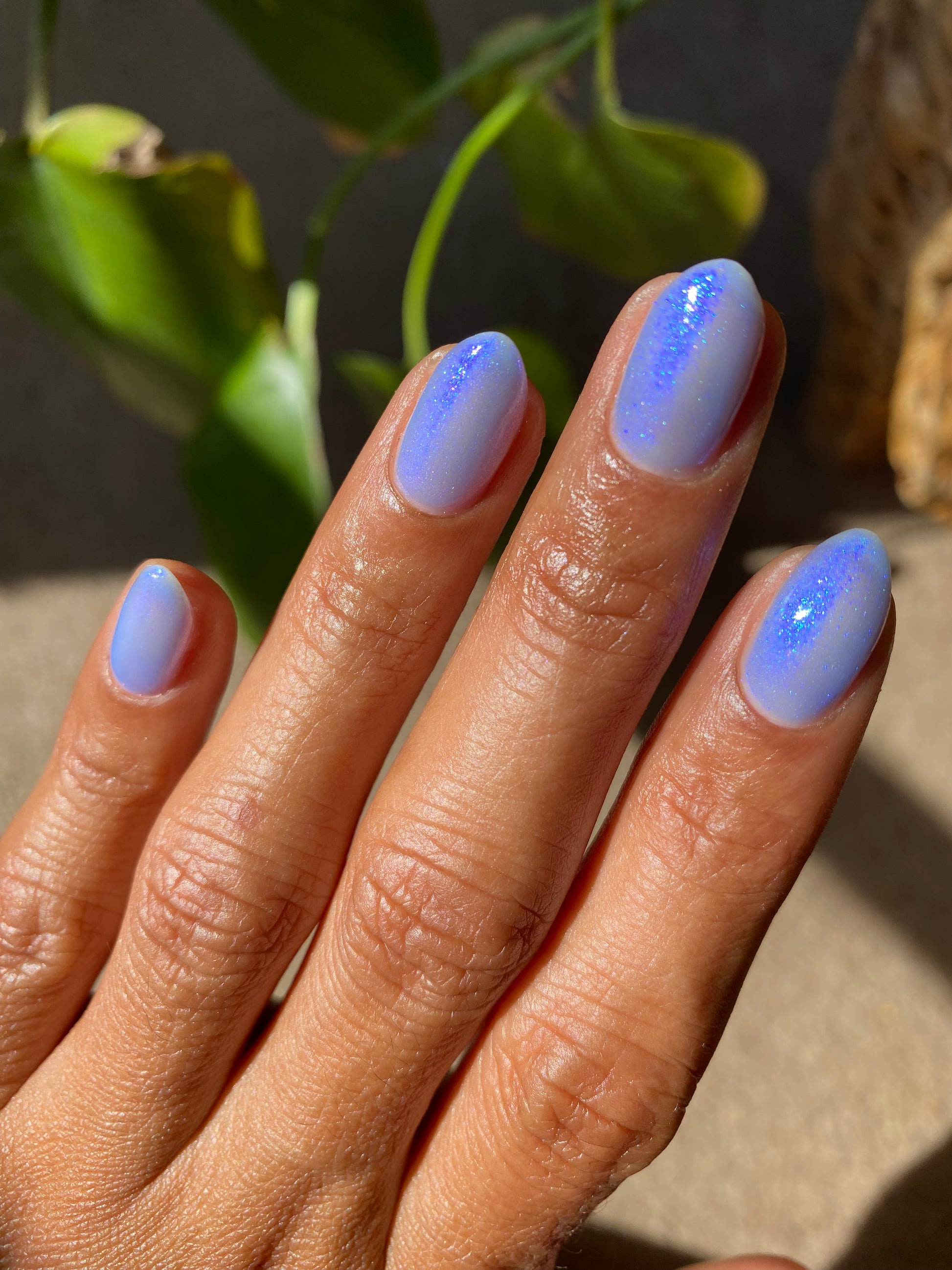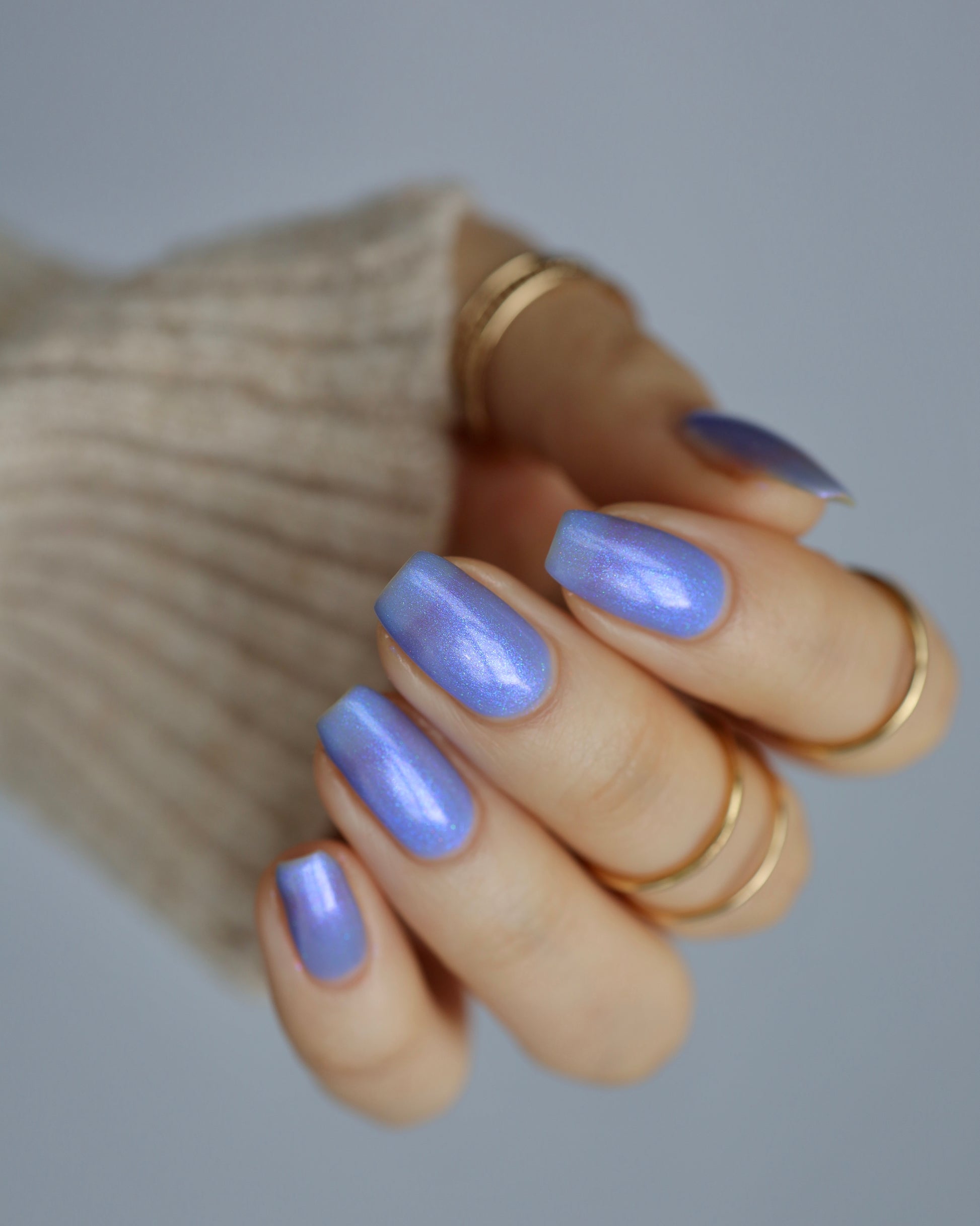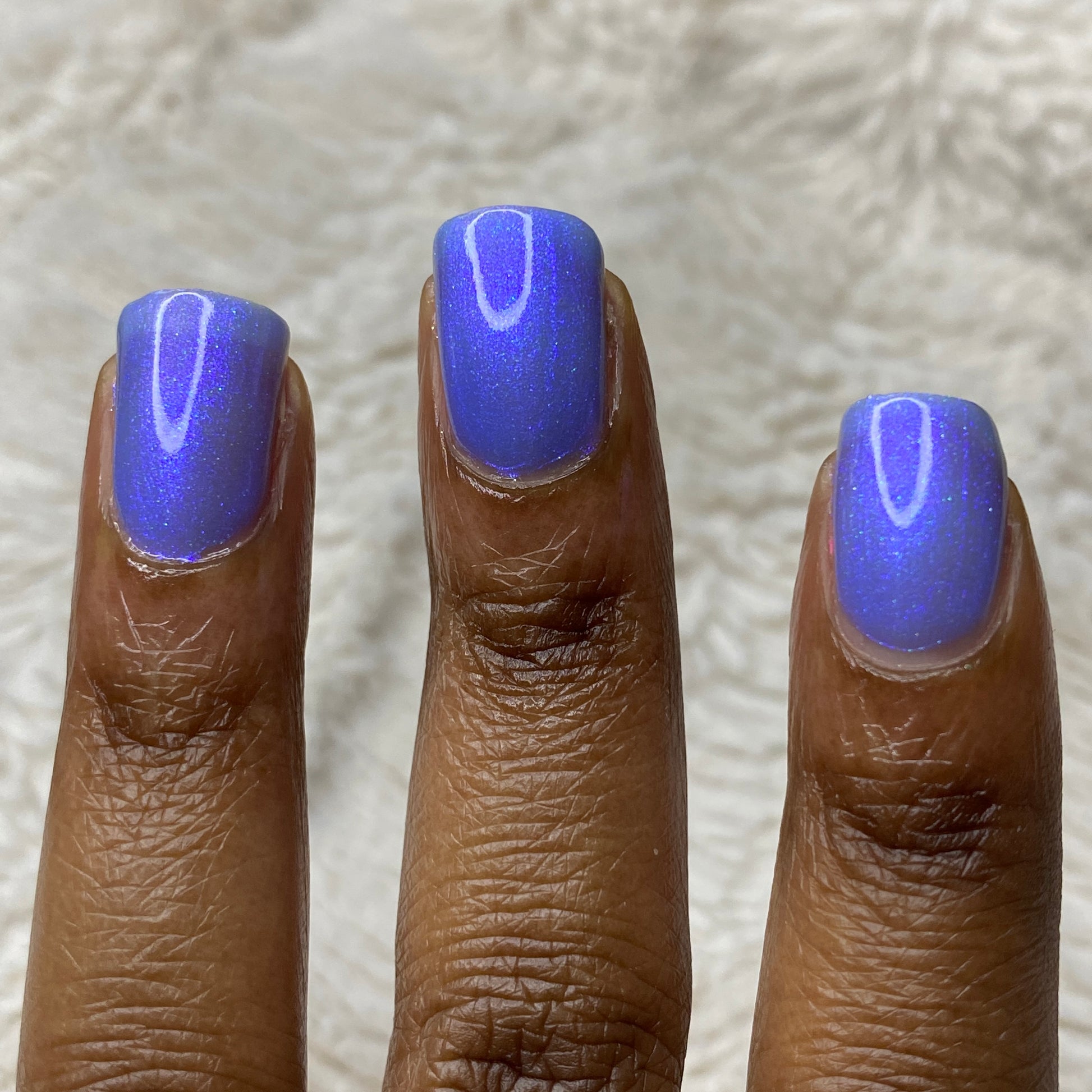 A periwinkle base with indigo shimmer that shifts to red at extremes